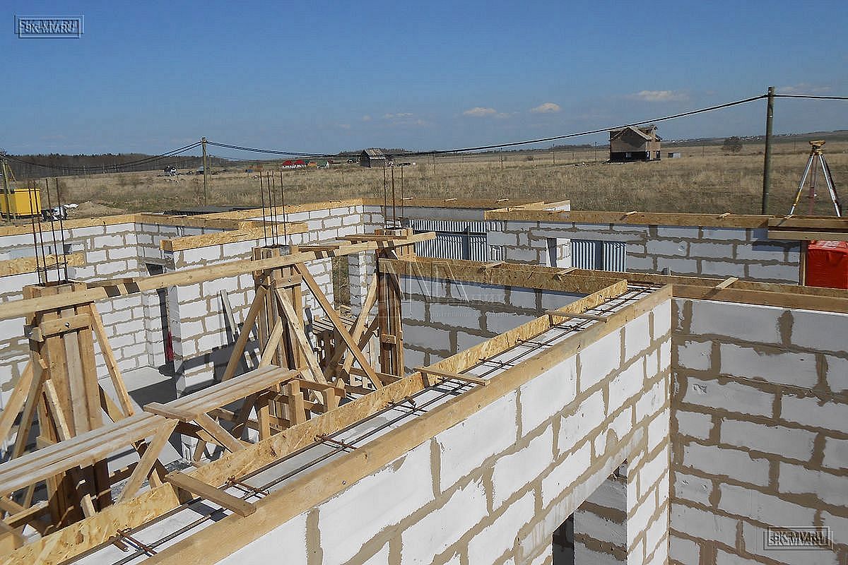 Помимо армирования в газобетонной кладке потребуется устраивать армопояса — железобетонные кольцевые монолитные контуры, которые располагаются по периметру здания. Армопояс производится из не прерывающегося арматурного каркаса и бетона, что способствует равномерному распределению нагрузок и повышает общую прочность конструкции.