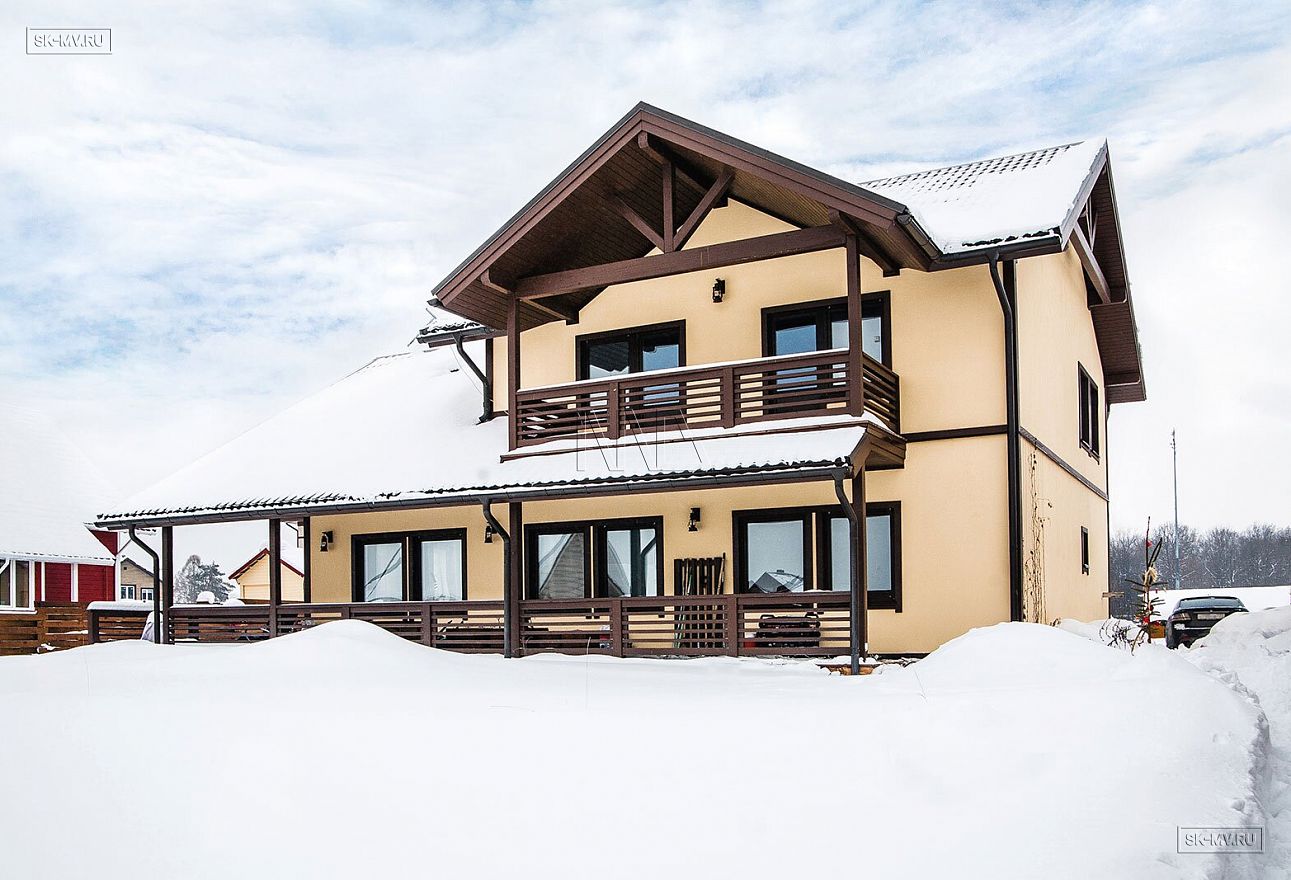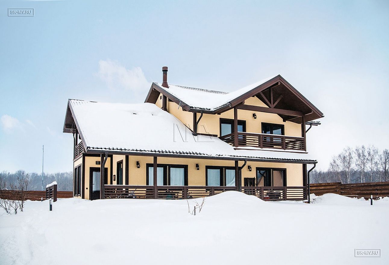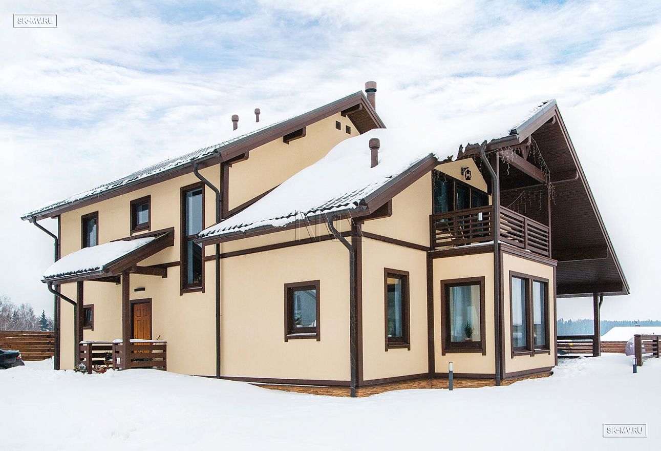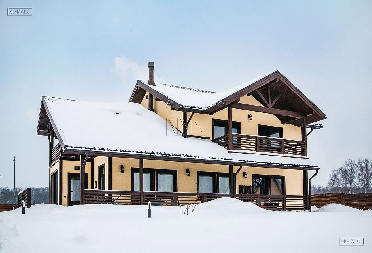На фотографиях представлен дом площадью 228,49 кв.м, построенный в в чистом и живописном районе Подмосковья — в коттеджном поселке «Дмитровка» Дмитровского района Московской области. Для строительства дома рассматривался проект «МВ 12», который был существенно изменен, уменьшена площадь с 313 кв.м до 228 кв.м, изменено назначение и площадь помещений. После плотной работы с нашим архитектором, площадь этого дома по мнению его владельцев стала идеальной.