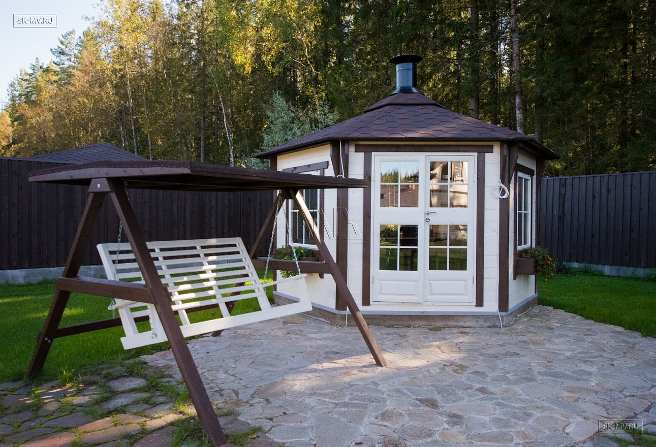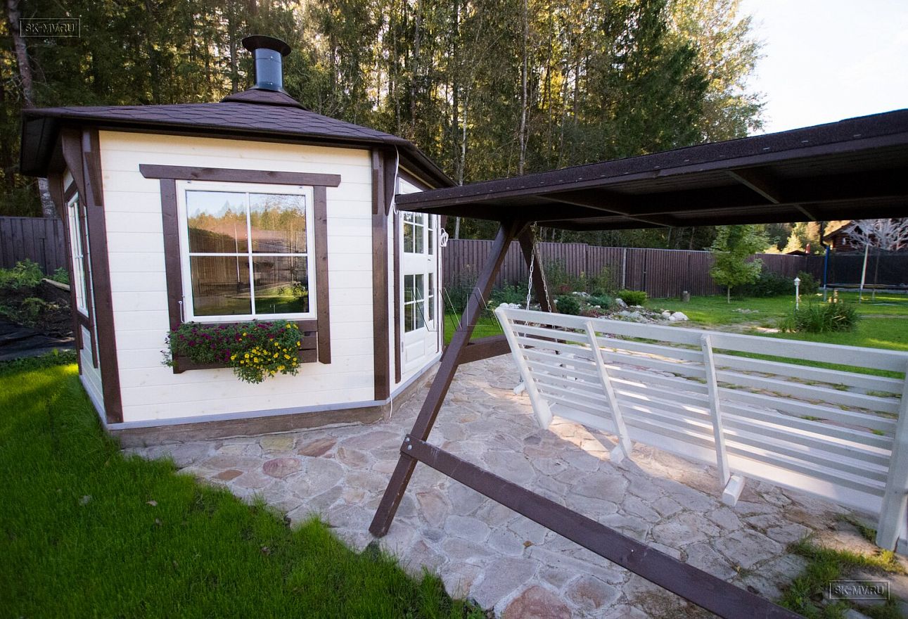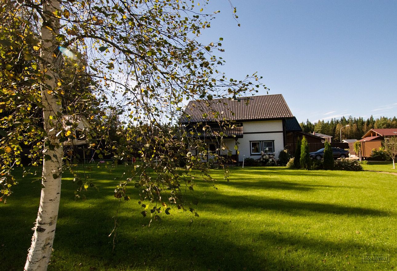 Если посмотреть на фотографии этого домовладения в поселке Галактика Ленинградской области, то в первую очередь глаз радуют две вещи — завершенность образа участка и гармония в пропорциях габаритов дома к габаритам участка. Нет ощущения скованности и недостатка пространства, как это обычно бывает когда люди стремятся возвести дом большой площади на маленьком участке. В Галактике 9 очень уютно — небольшая территория окружена деревянным забором с откатными воротами, правильно размещен дом в самой высокой точке, главным фасадом на юг, терраса обращена на участок, а крыльцо встречает хозяев при въезде, грамотно выполнено зонирование участка.