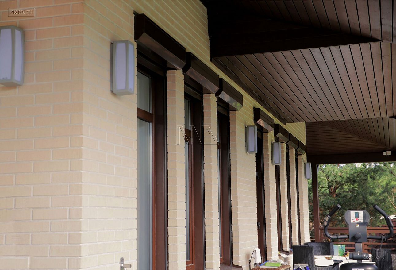 Стоимость строительства этого каркасного дома с баней внутри и большой террасой можно посмотреть в таблице с ценами непосредственно на странице проекта «Низино». Цена на дом зависит от материала наружной отделки. В данном случае заказчик отверг использование для отделки дома штукатурки и дерева, и отдал предпочтение более дорогому лицевому кирпичу. Детальную смету на строительство этого каркасного дома с учетом особенностей вашего земельного участка можно получить в нашем отделе продаж.