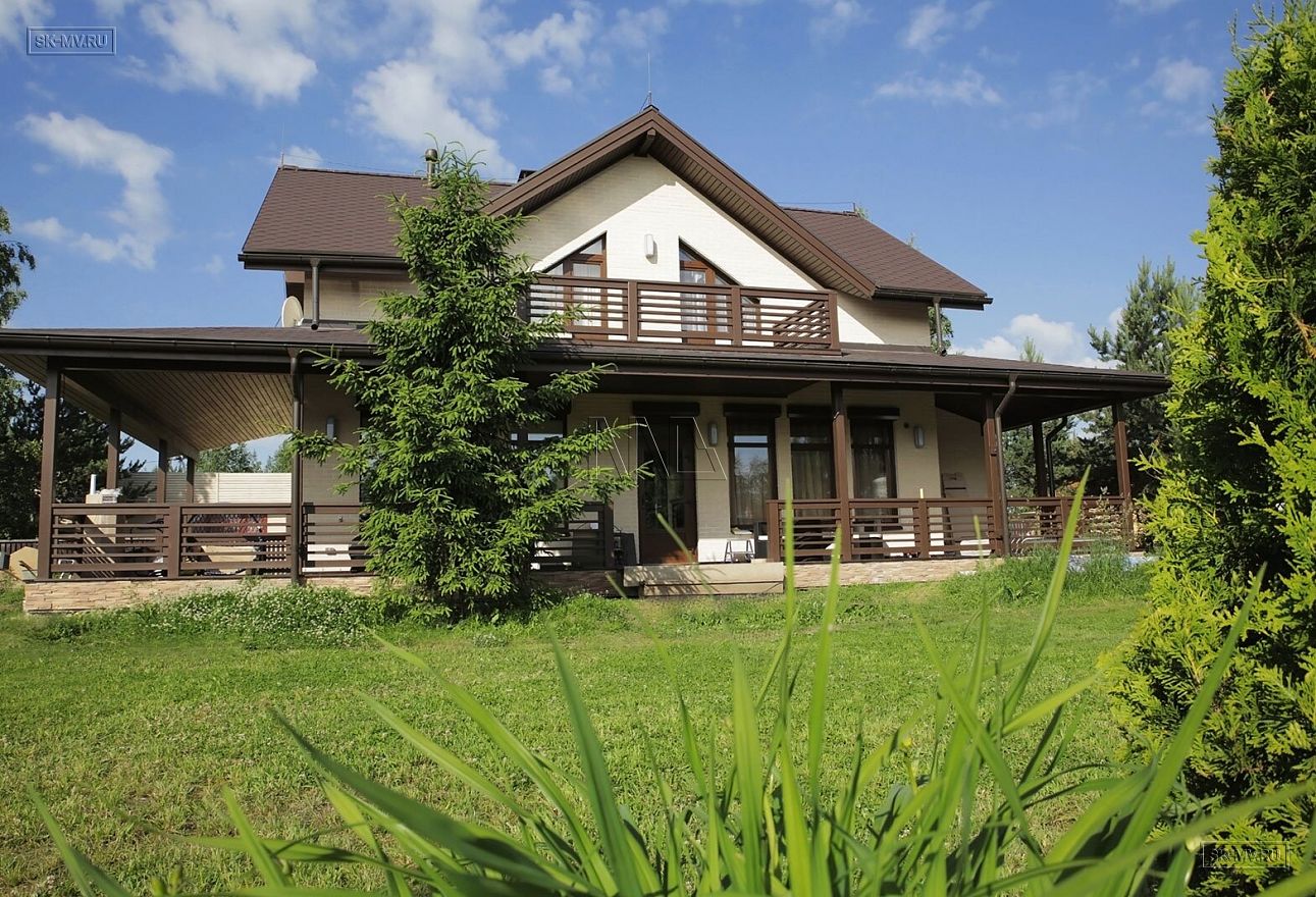 Каркасный дом с большой террасой на фото построен в деревне Низино Ленинградской области по индивидуальному проекту, созданному с учетом представлений и пожеланий заказчика, который обратился к нашим специалистам по рекомендации.