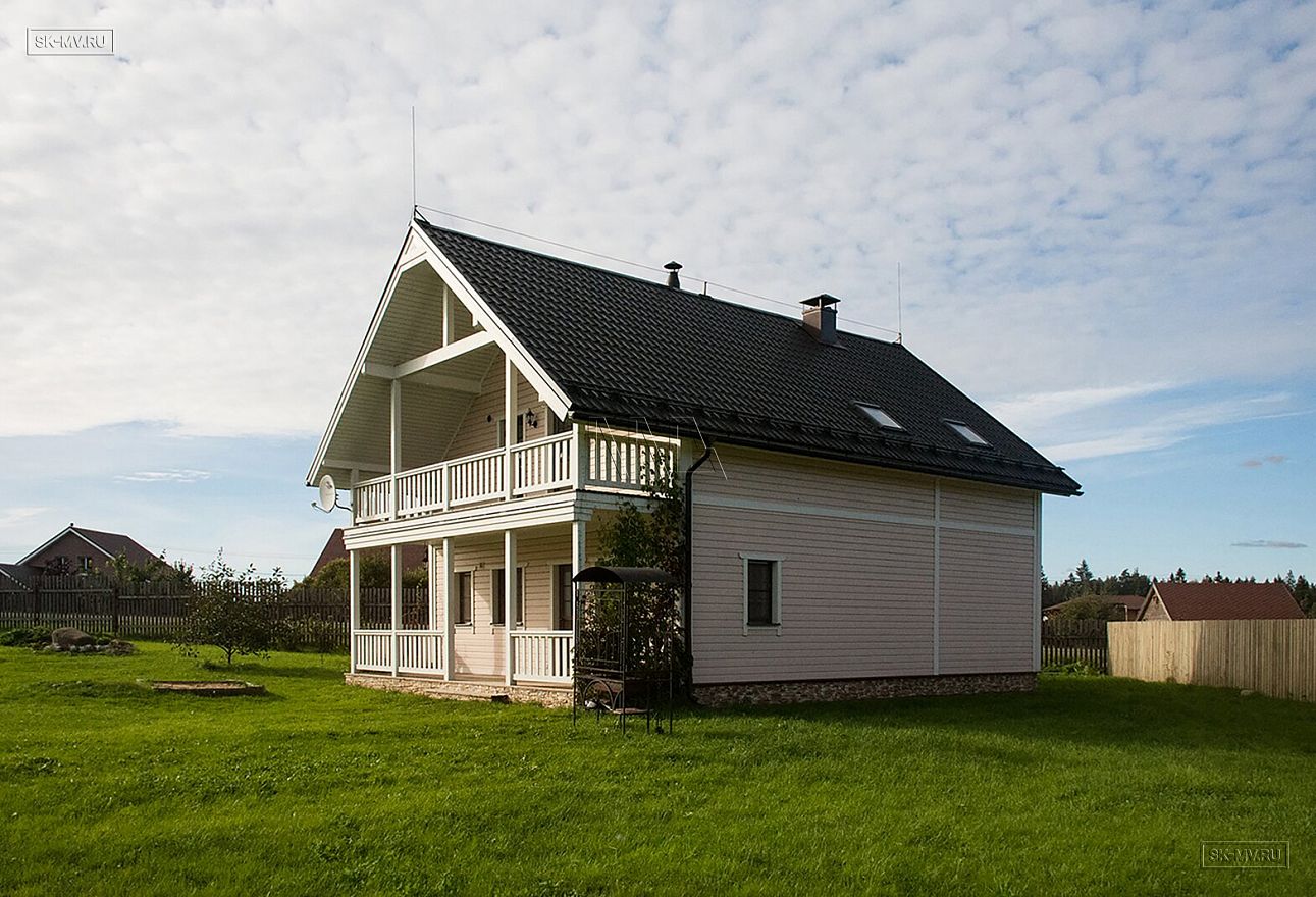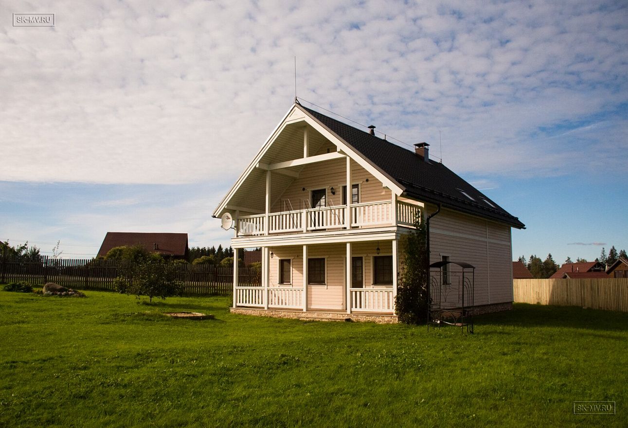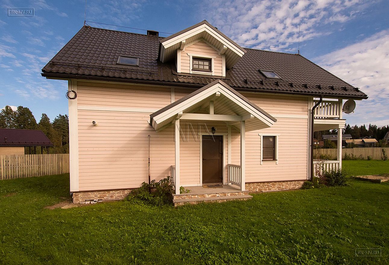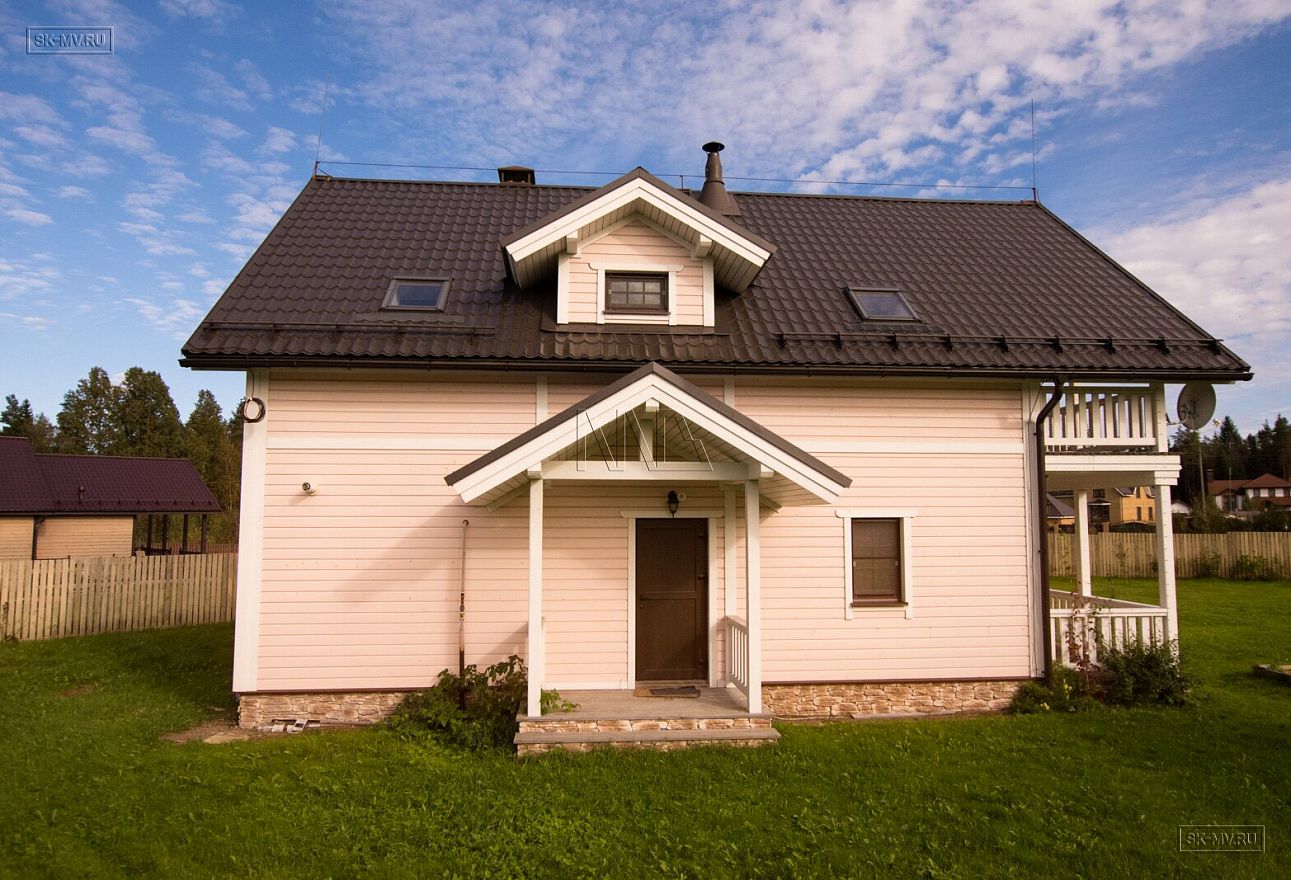 Небольшой каркасный дом площадью 160 кв.м построен в поселке Ольшаники Ленинградской области в стиле типичной архитектуры севера Финляндии. Заказчик обратился за услугами по проектированию и строительству дома, имея на руках картинку фасада и двух планировок, на основе которых архитектором был разработан индивидуальный проект с адаптацией фасада и компановки помещений под каркасную технологию.
