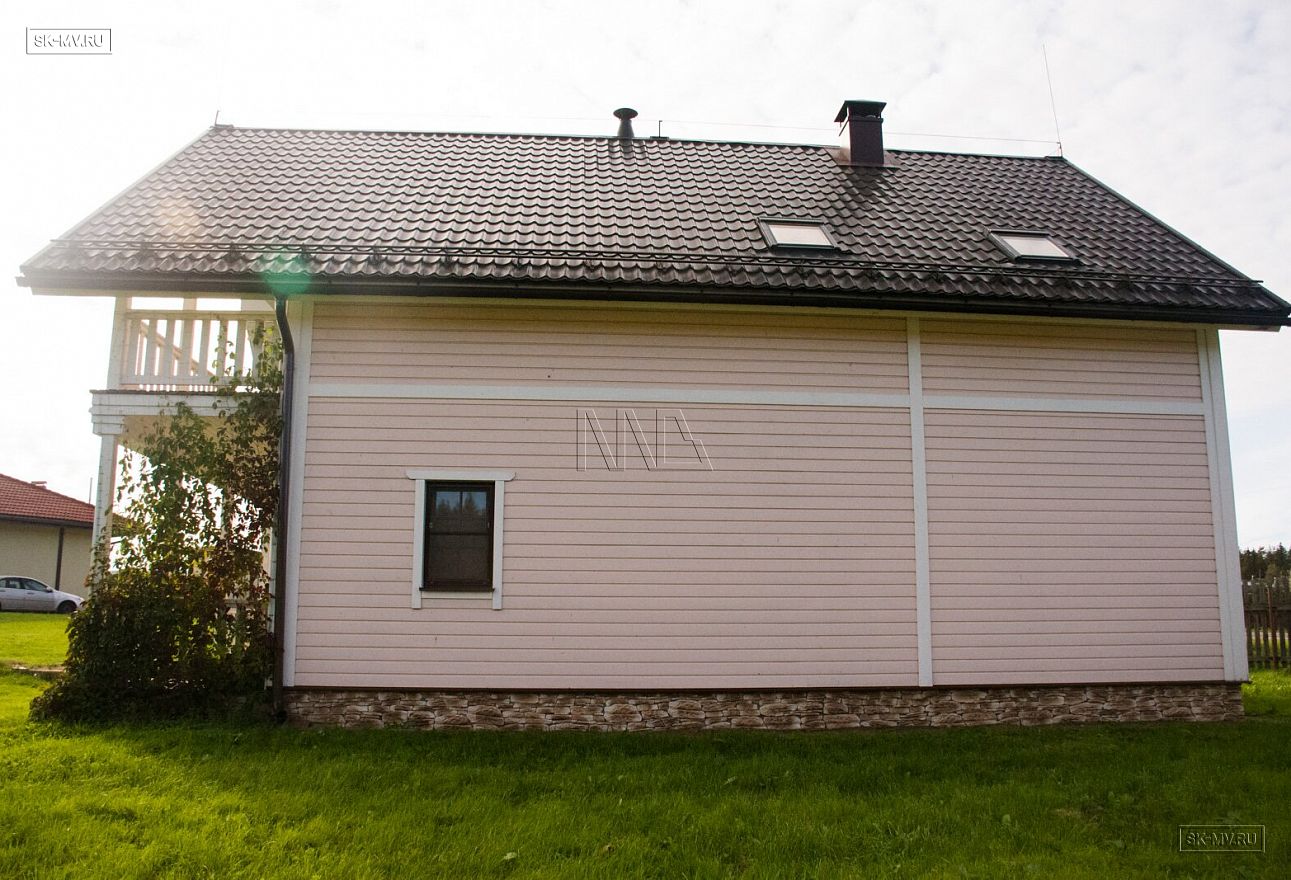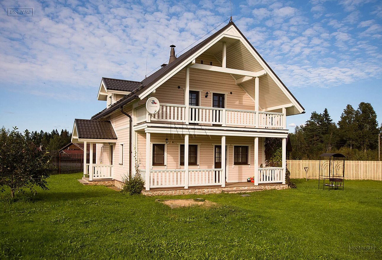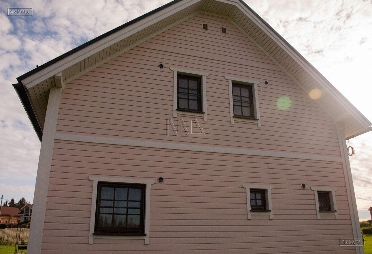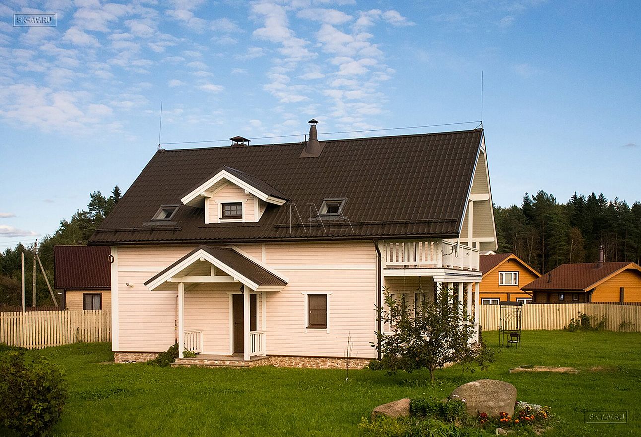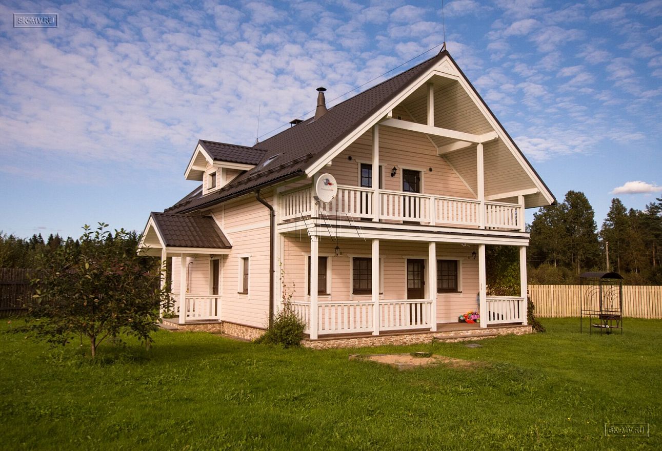 Небольшой каркасный дом площадью 160 кв.м построен в поселке Ольшаники Ленинградской области в стиле типичной архитектуры севера Финляндии. Заказчик обратился за услугами по проектированию и строительству дома, имея на руках картинку фасада и двух планировок, на основе которых архитектором был разработан индивидуальный проект с адаптацией фасада и компановки помещений под каркасную технологию.