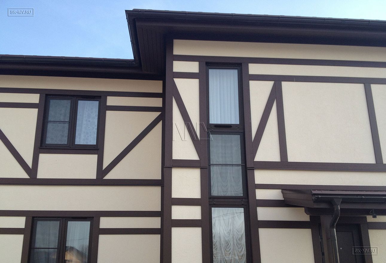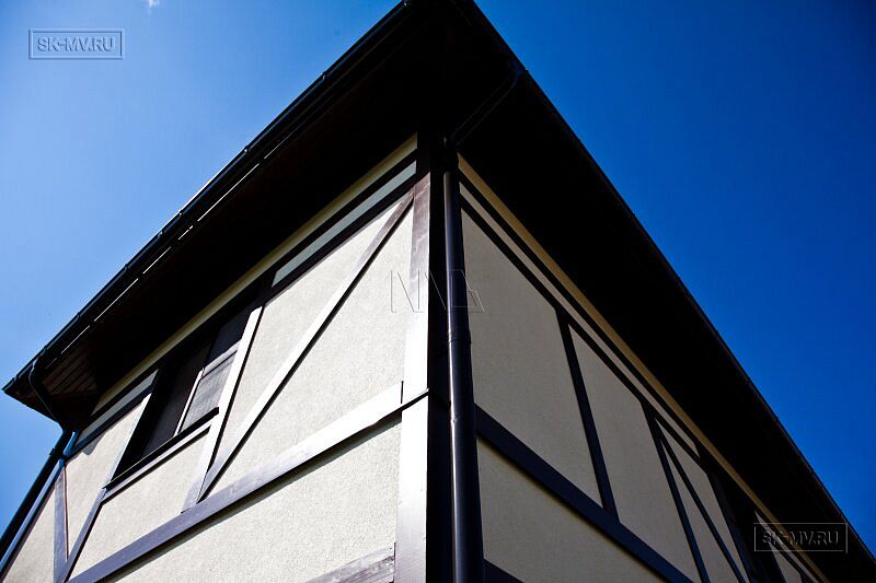 Стоит отметить, что нами построены были два одинаковых дома в стиле фахверк на соседних участках. Дома различаются исключительно ориентацией по сторонам света, которая задана особенностями каждого участка.