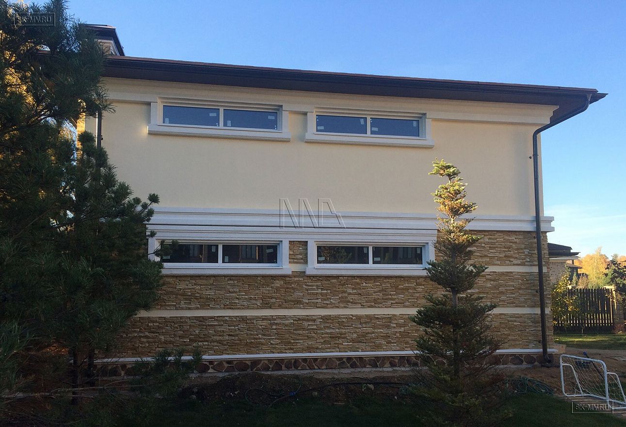 Так же в архитектурном стиле строения можно выделить наличие декоративных элементов фасадной отделки здания, которые помимо декоративной функции несут функцию дополнительного утепления несущих и ограждающих конструкций.