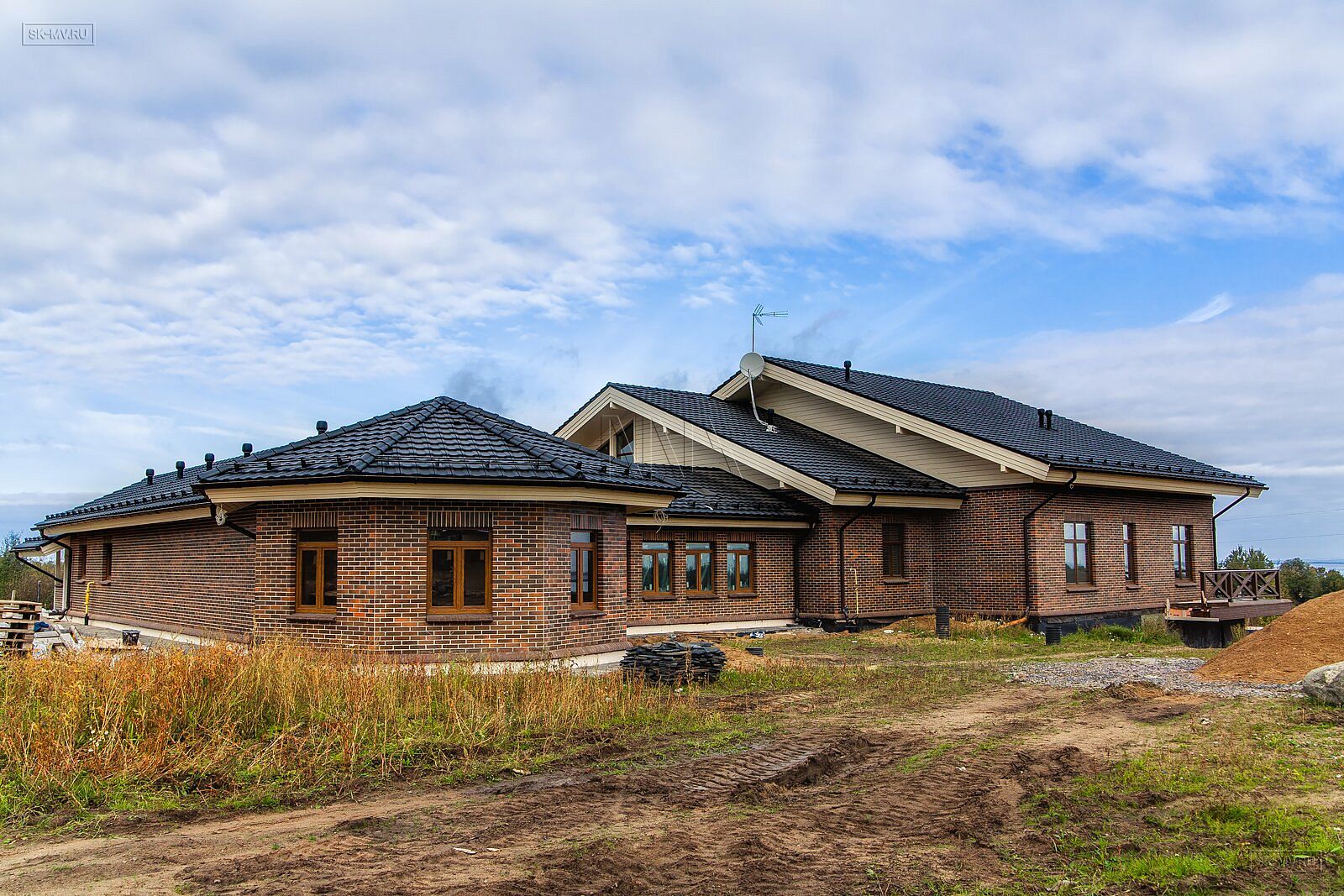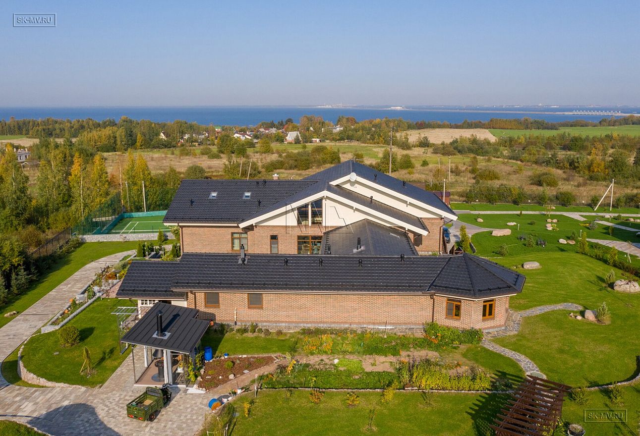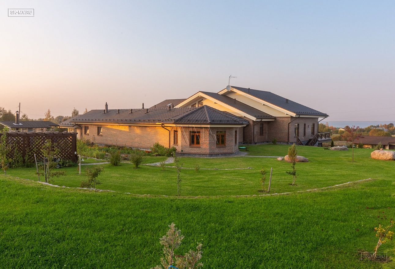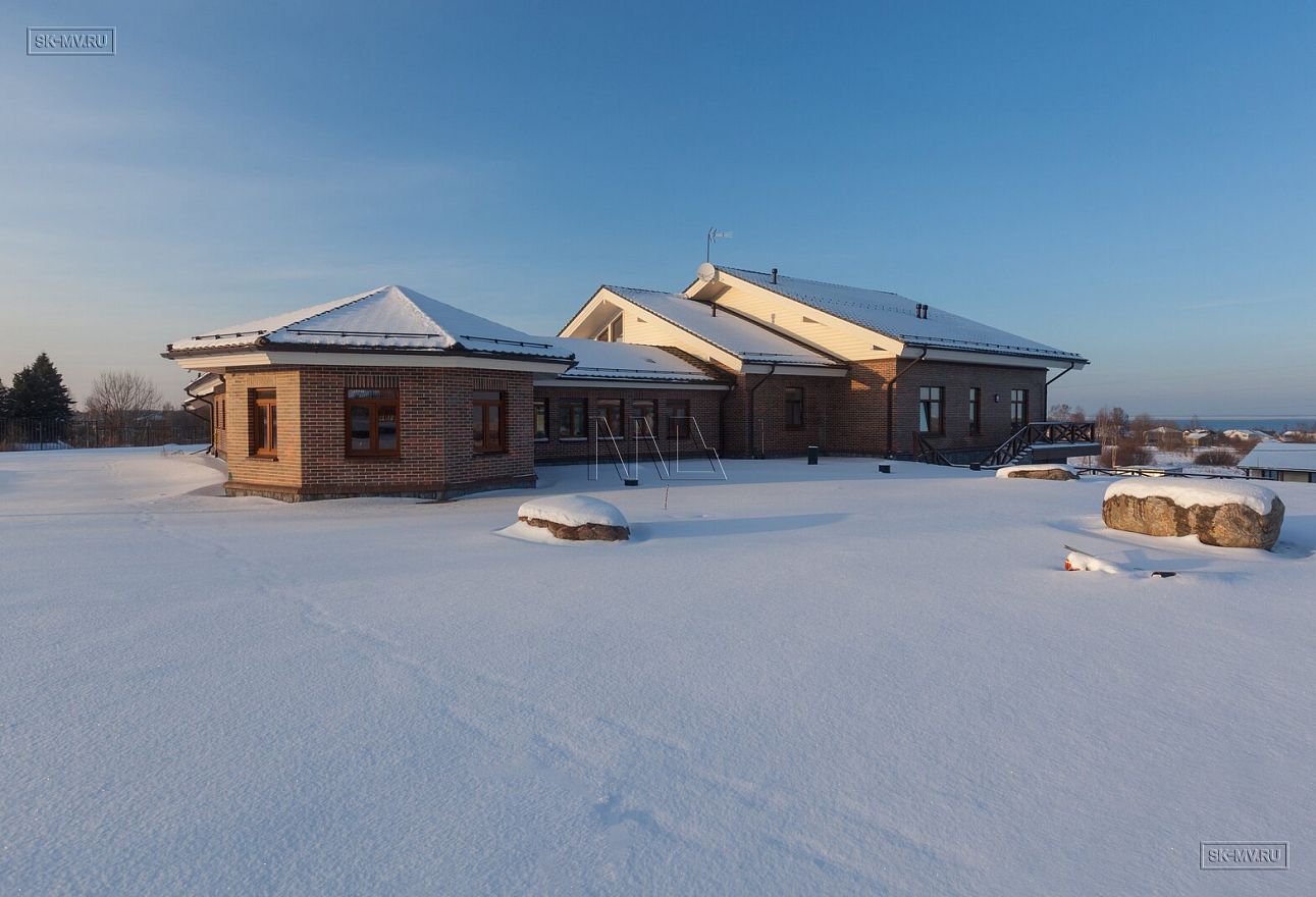 На фотографиях комбинированный дом общей площадью 1400 кв.м, строительство которого велось в деревне Пеники, Ломоносовский район, Ленинградская область.