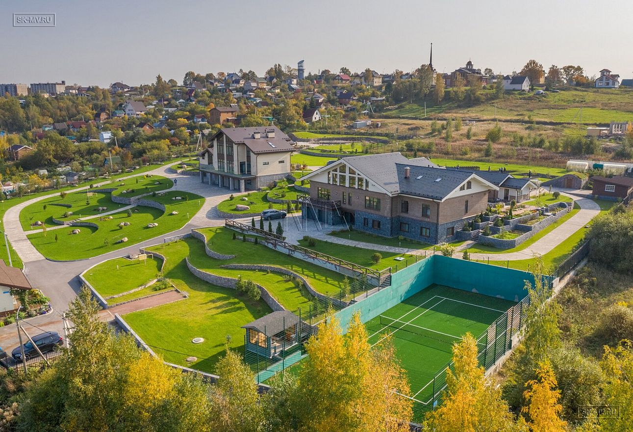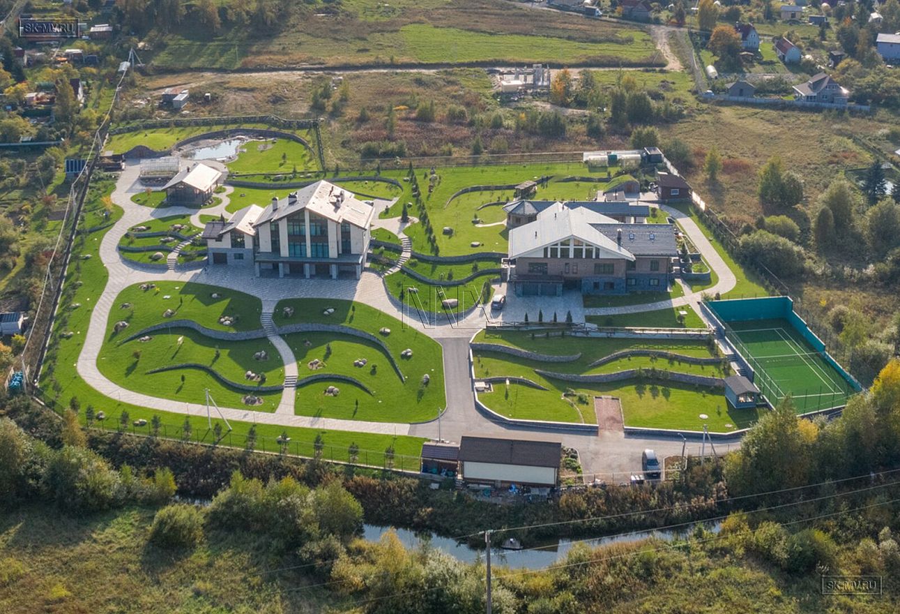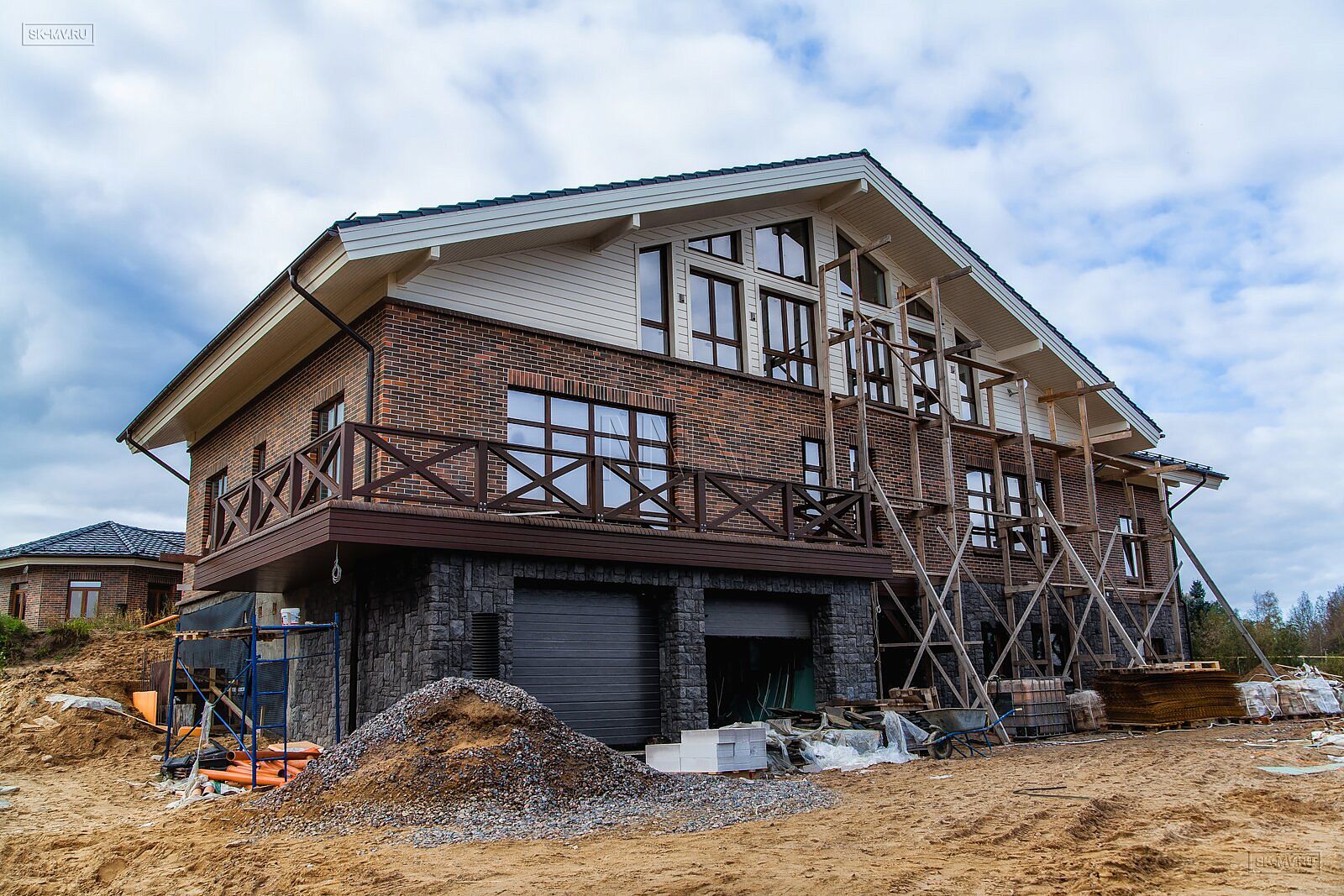На фотографиях комбинированный дом общей площадью 1400 кв.м, строительство которого велось в деревне Пеники, Ломоносовский район, Ленинградская область.