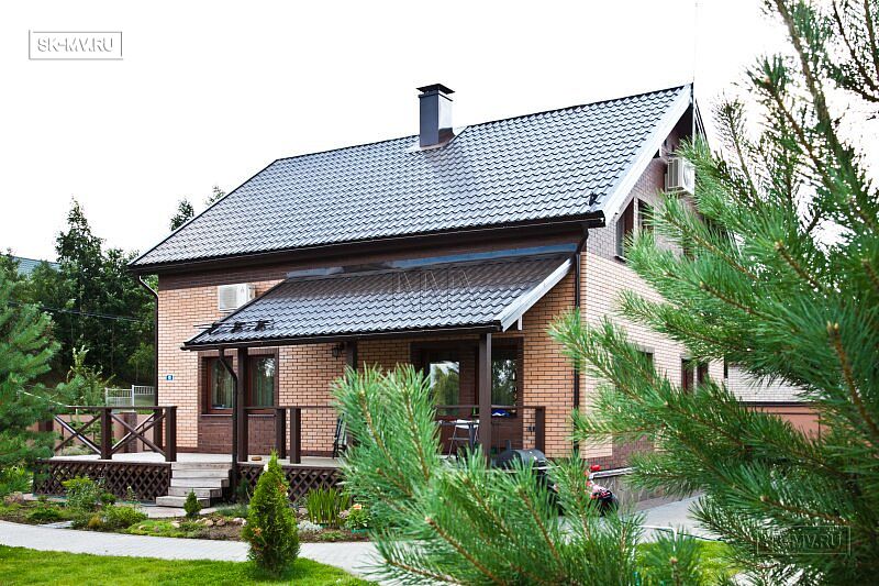 Каркасный дом с террасой построен по проекту МВ1 — самому младшему в линейке, его площадь 147 кв.м. Это один из самых популярных проектов, коттеджи по которому мы строили ни один десяток раз. Некоторые из этих домов вы можете посмотреть на вкладке «Построенные дома» в карточке проекта МВ 1. Любовь наших заказчиков этот проект заслужил не только небольшой площадью и компактностью, но и функциональностью планировочных решений. При этом вы должны помнить, что у любого типового проекта можно сделать перепланировку согласно вашему представлению о вашей жизни за городом, можно перенести террасу, крыльцо, отзеркалить фасад или убрать кровлю над террасой (крыльцом) и т.д. МВ 1 не исключение.