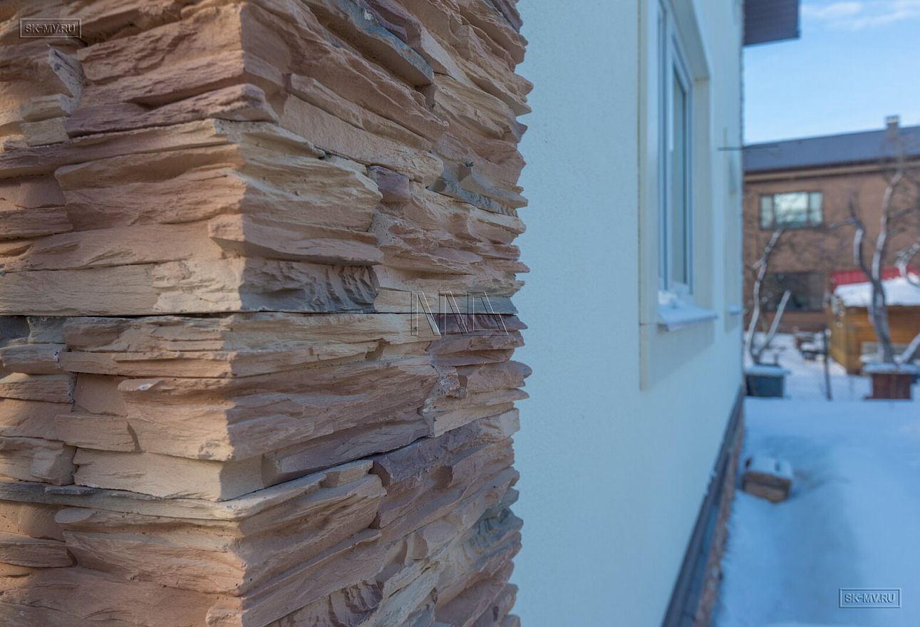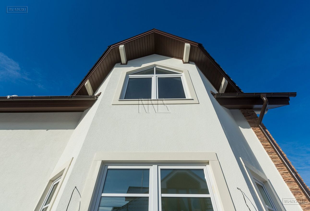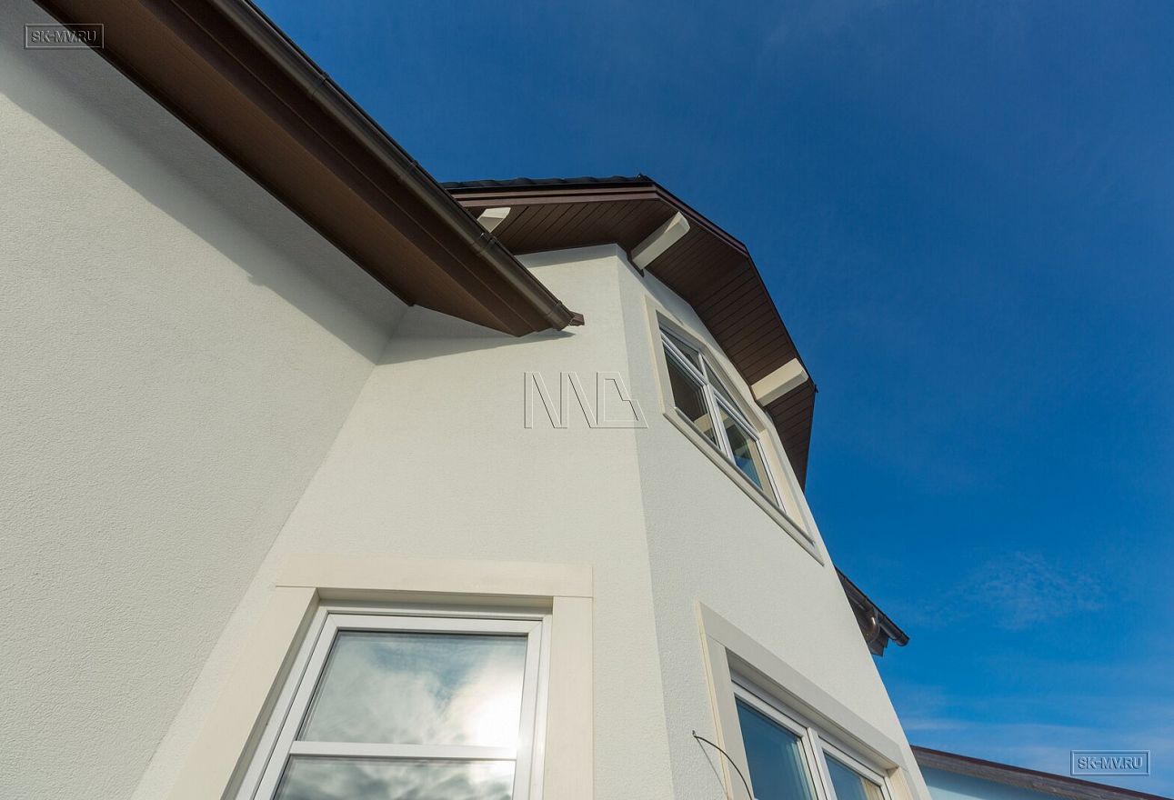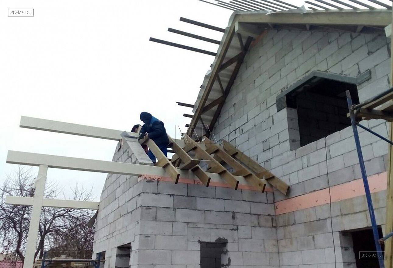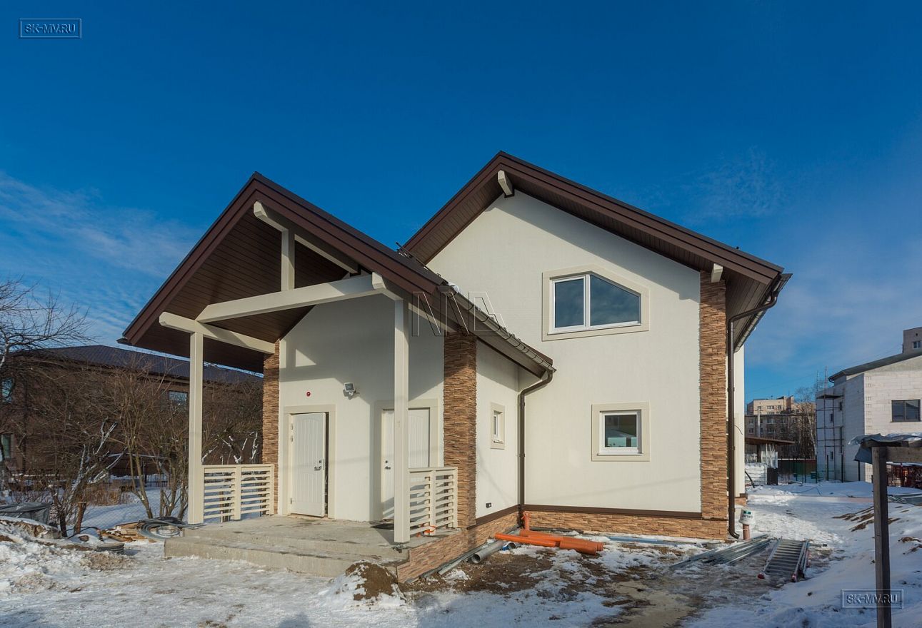 Дом площадью почти 200 кв.м строится в Санкт-Петербурге в г. Пушкин из газобетонных блоков 300 мм, D500 для наружных ограждающих конструкций и блоков 250 мм, D500 для внутренних стен. Межэтажное перекрытие — монолитная ж/б плита. Фундамент — утепленная экструдированным пенополистиролом ж/б плита с прифундаментным дренажом и защитой грунта вокруг фундамента от промерзания.
