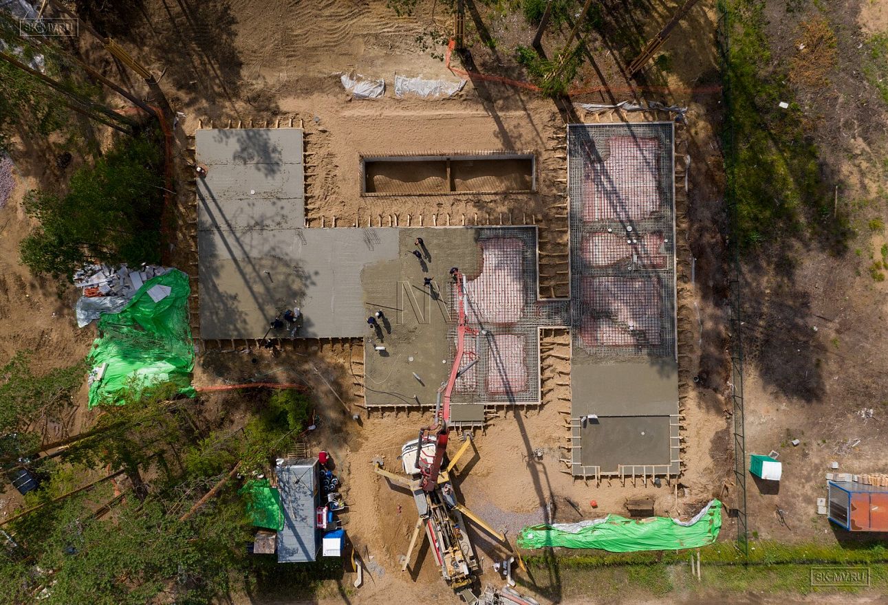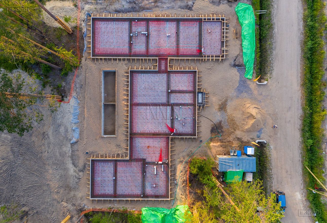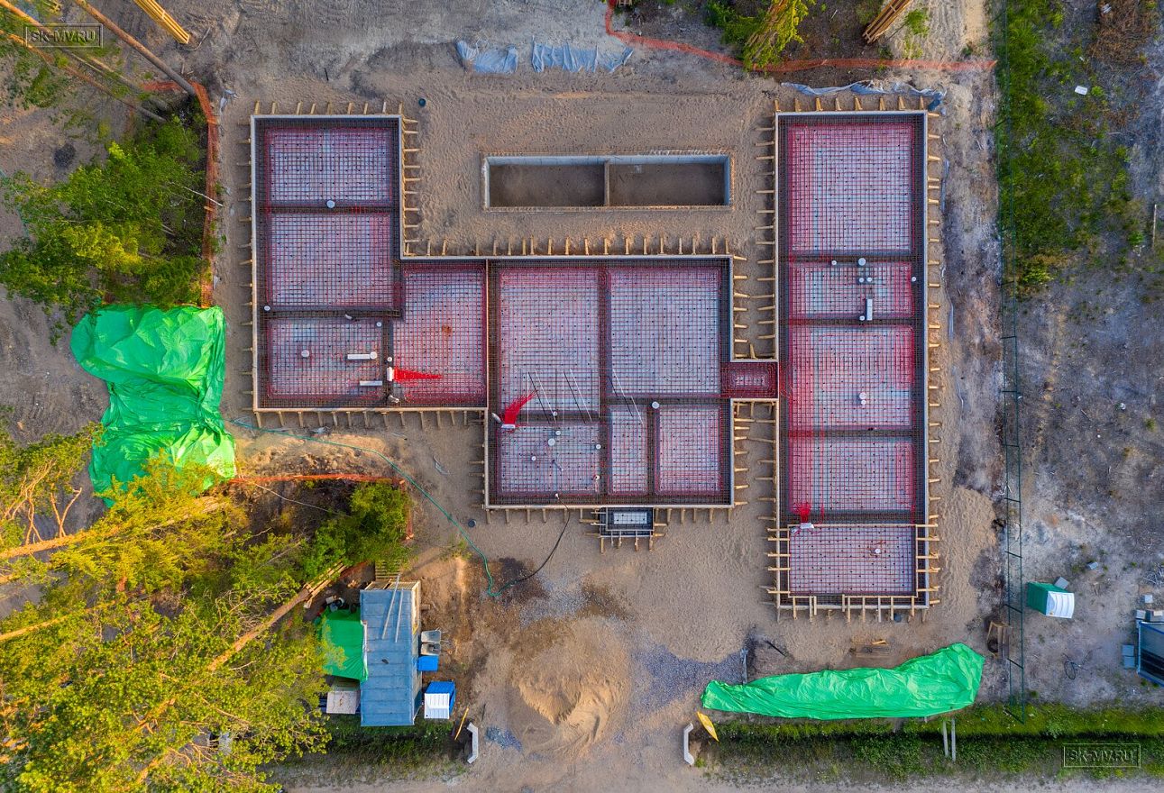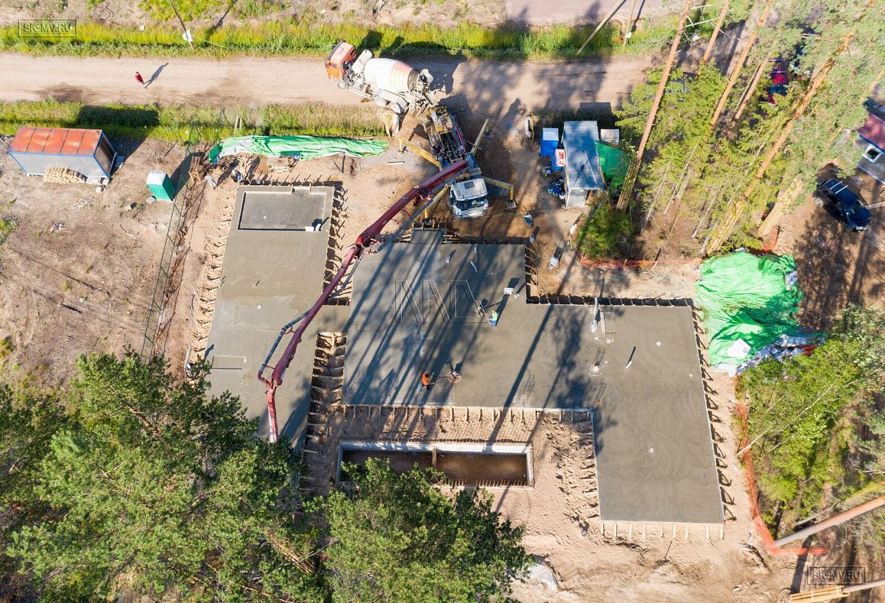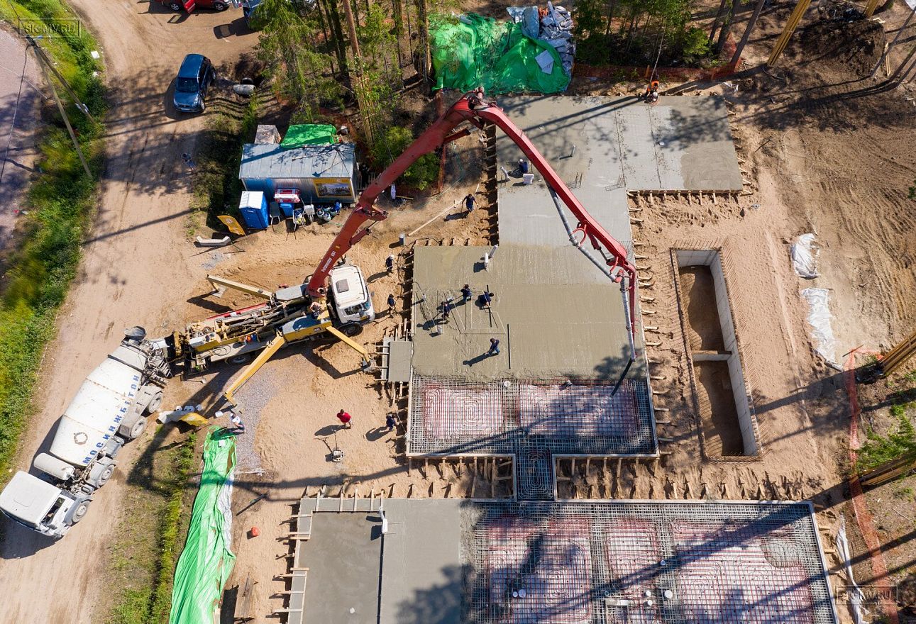 В июле 2021 выполнили заливку фундаментной плиты УШП PRO площадью 530 кв.м. Фундамент проектировался под строительство кирпичного дома в Рощино 2 в Ленинградской области. Монтаж выполнялся в две захватки: основая часть, потом оранжерея и крыльцо.