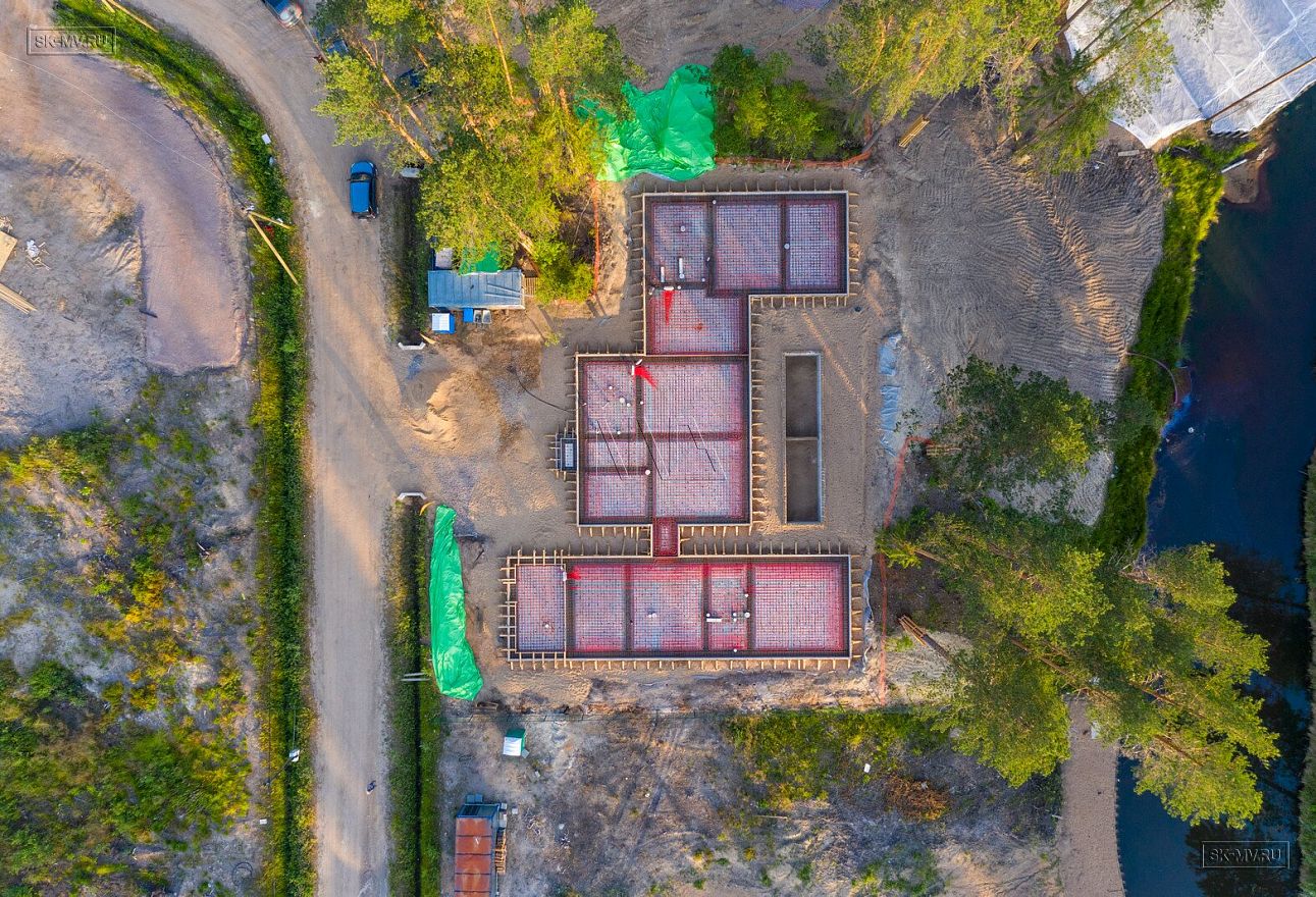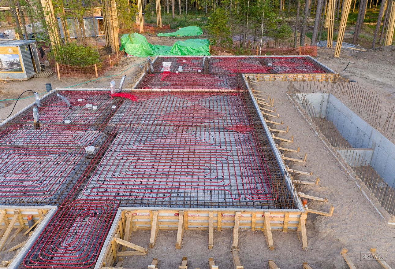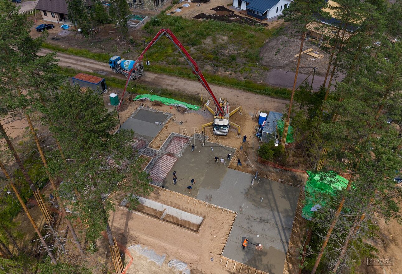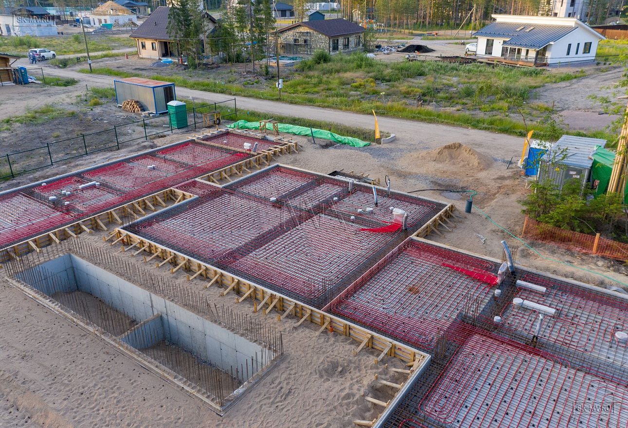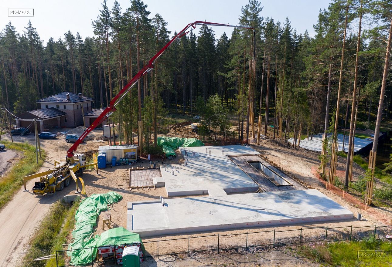 В июле 2021 выполнили заливку фундаментной плиты УШП PRO площадью 530 кв.м. Фундамент проектировался под строительство кирпичного дома в Рощино 2 в Ленинградской области. Монтаж выполнялся в две захватки: основая часть, потом оранжерея и крыльцо.