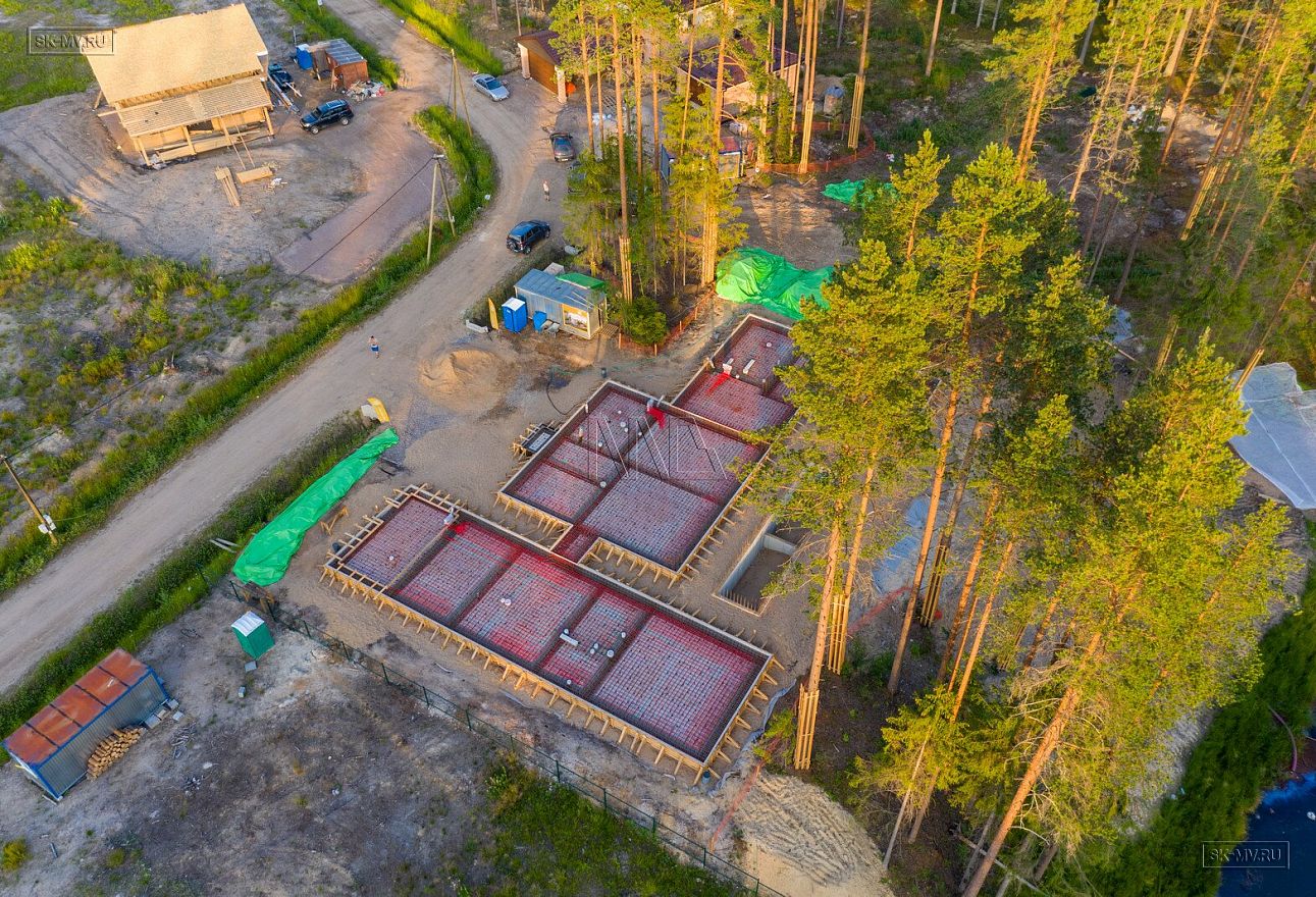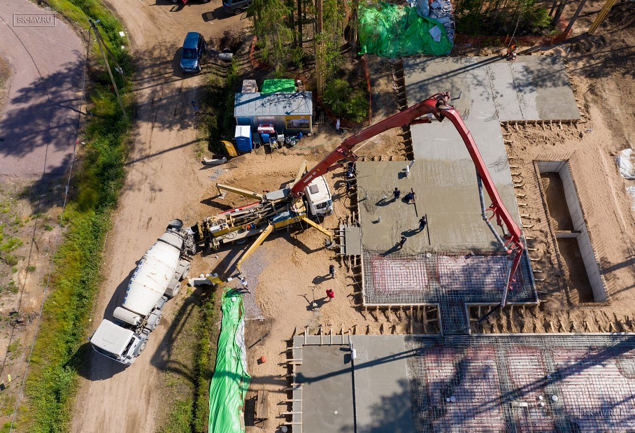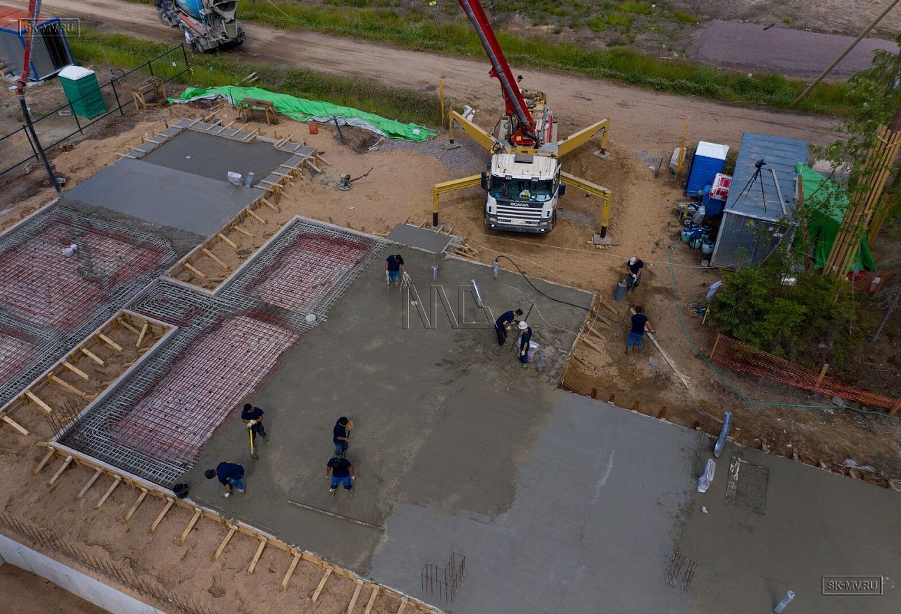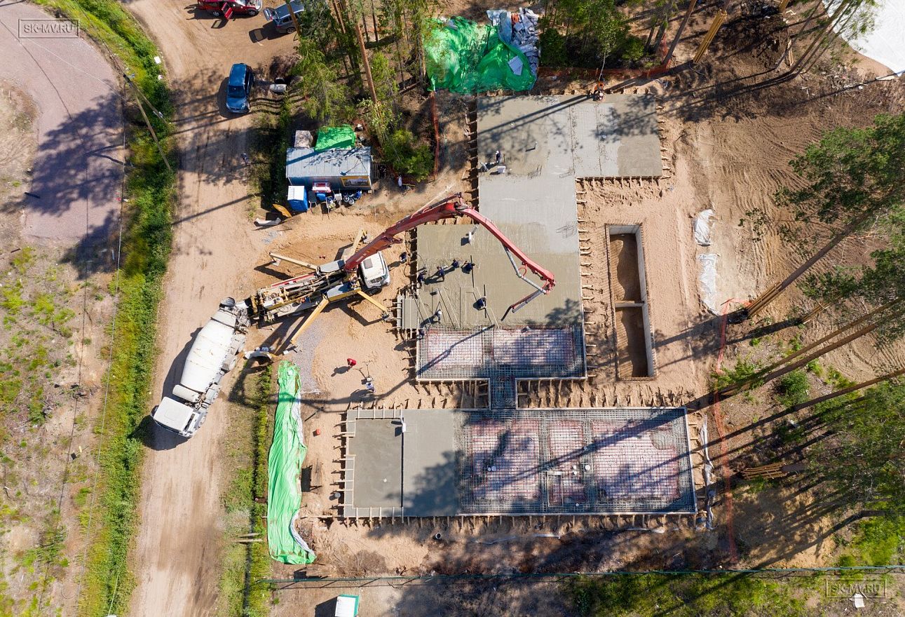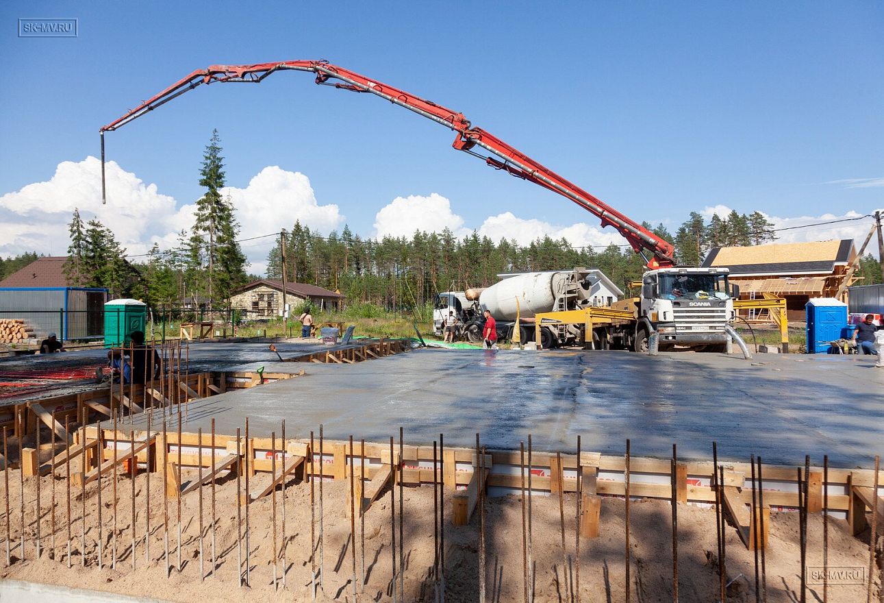 В июле 2021 выполнили заливку фундаментной плиты УШП PRO площадью 530 кв.м. Фундамент проектировался под строительство кирпичного дома в Рощино 2 в Ленинградской области. Монтаж выполнялся в две захватки: основая часть, потом оранжерея и крыльцо.