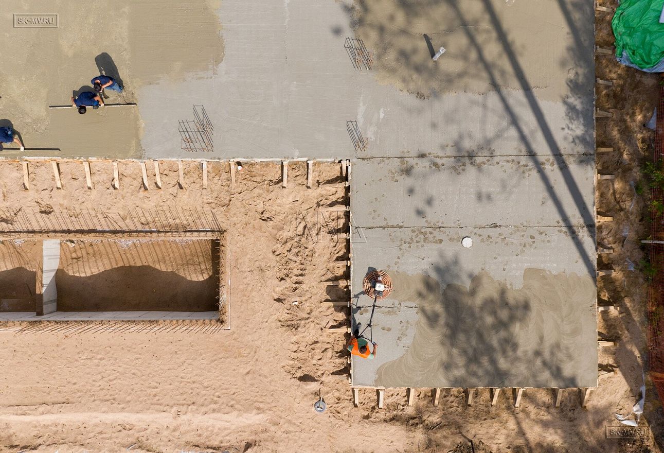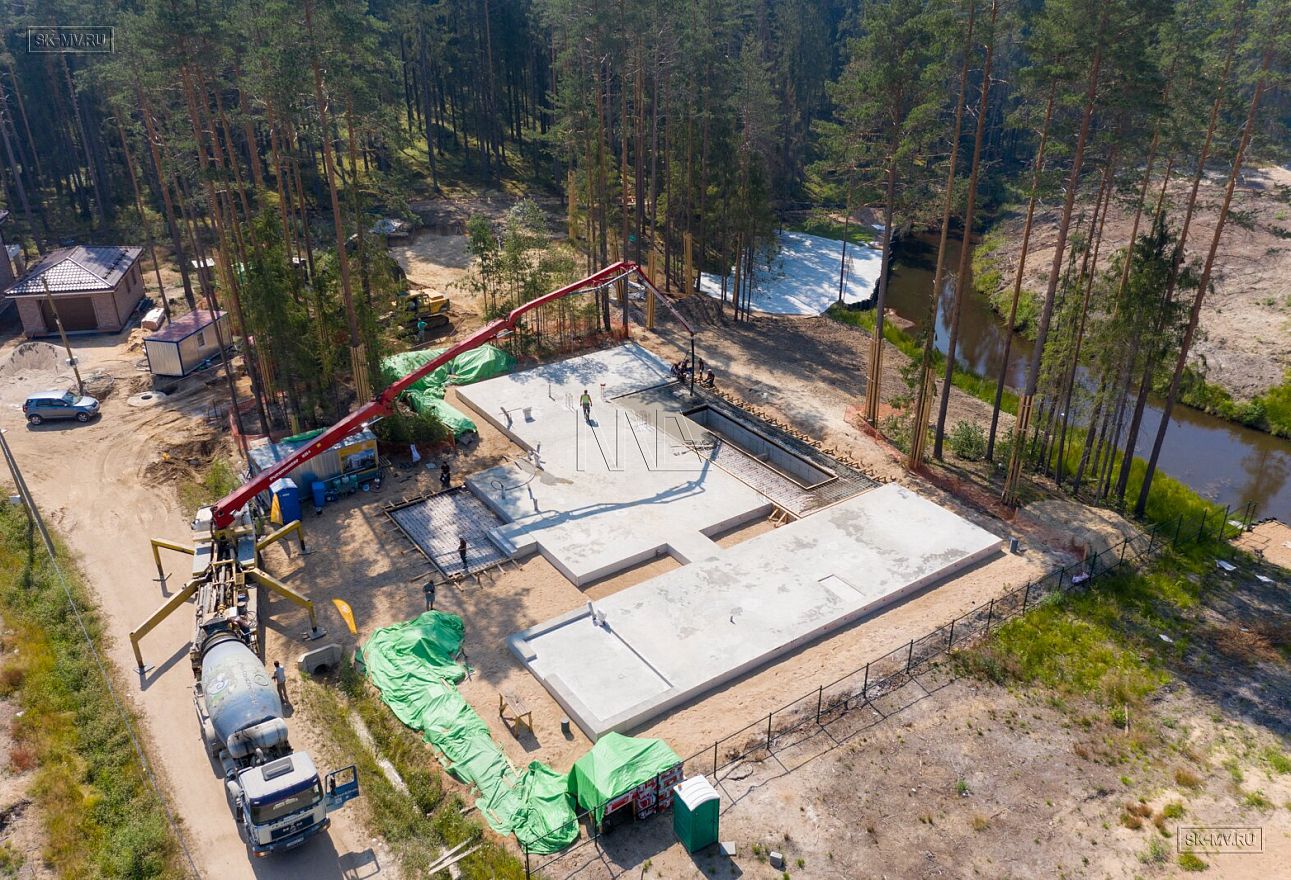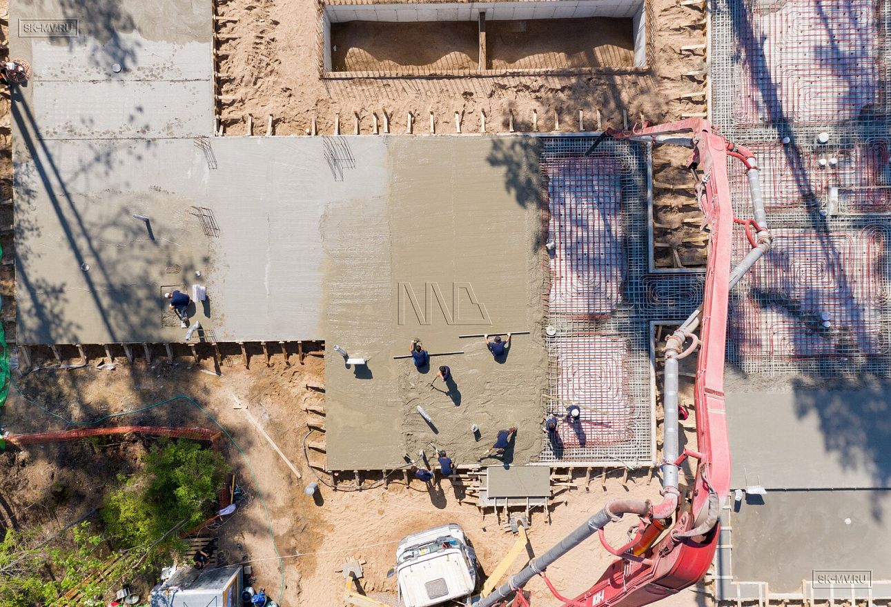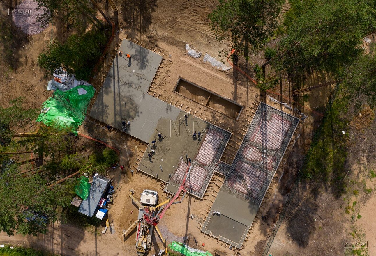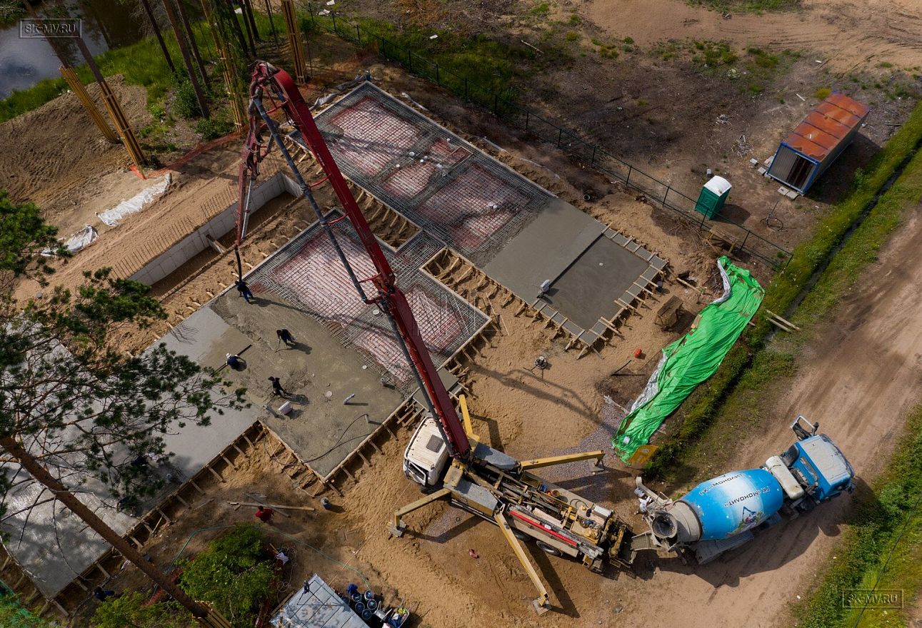 В июле 2021 выполнили заливку фундаментной плиты УШП PRO площадью 530 кв.м. Фундамент проектировался под строительство кирпичного дома в Рощино 2 в Ленинградской области. Монтаж выполнялся в две захватки: основая часть, потом оранжерея и крыльцо.