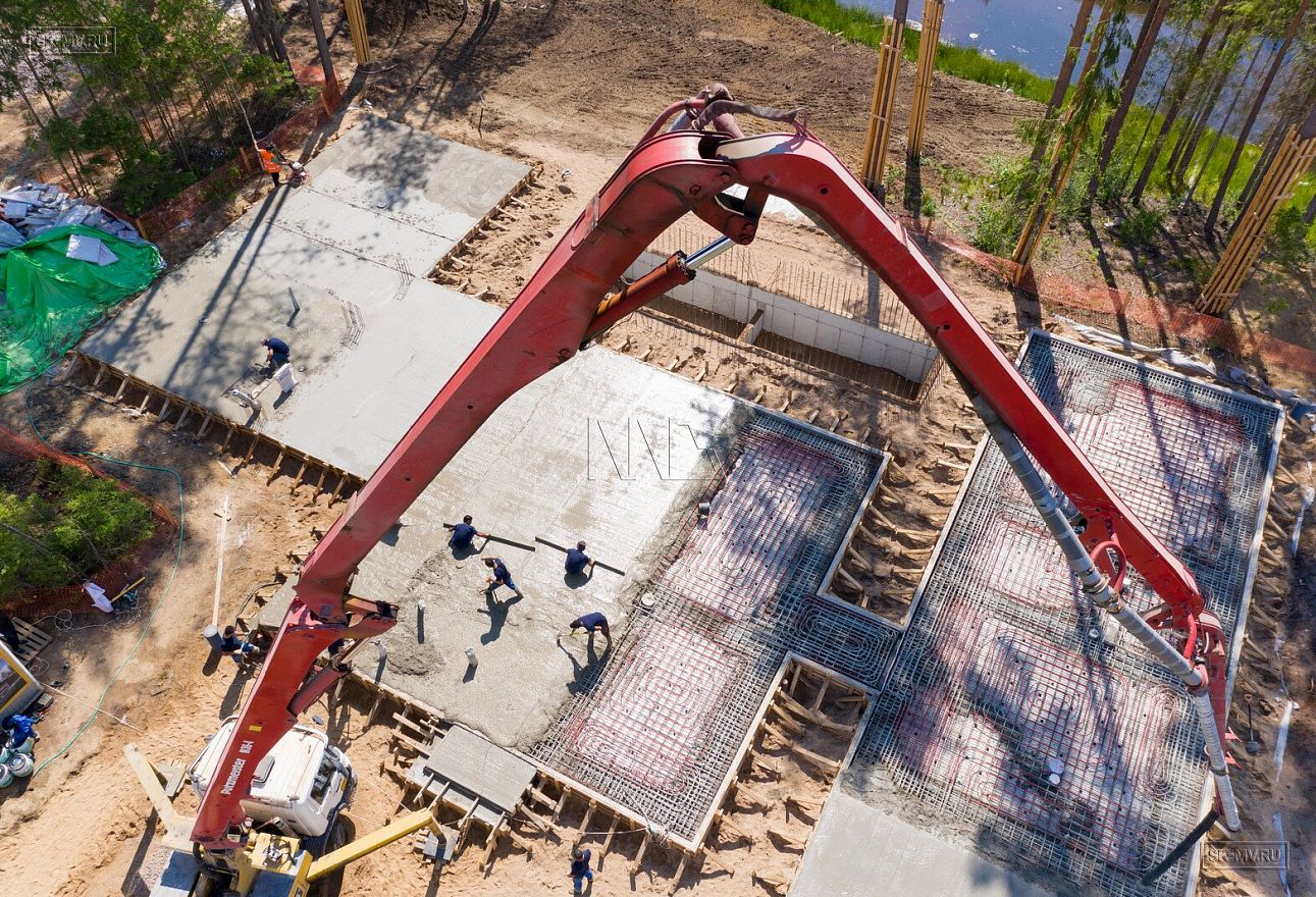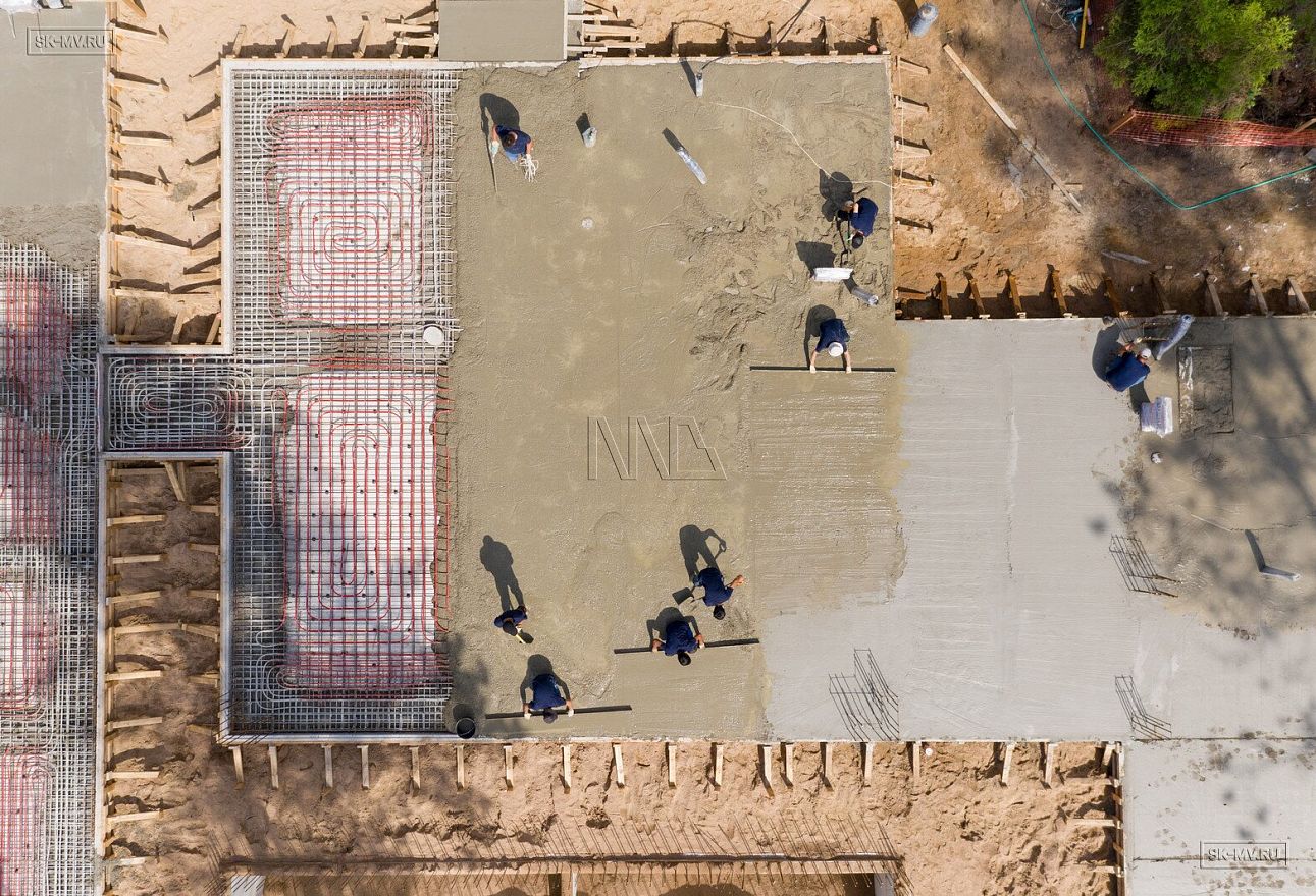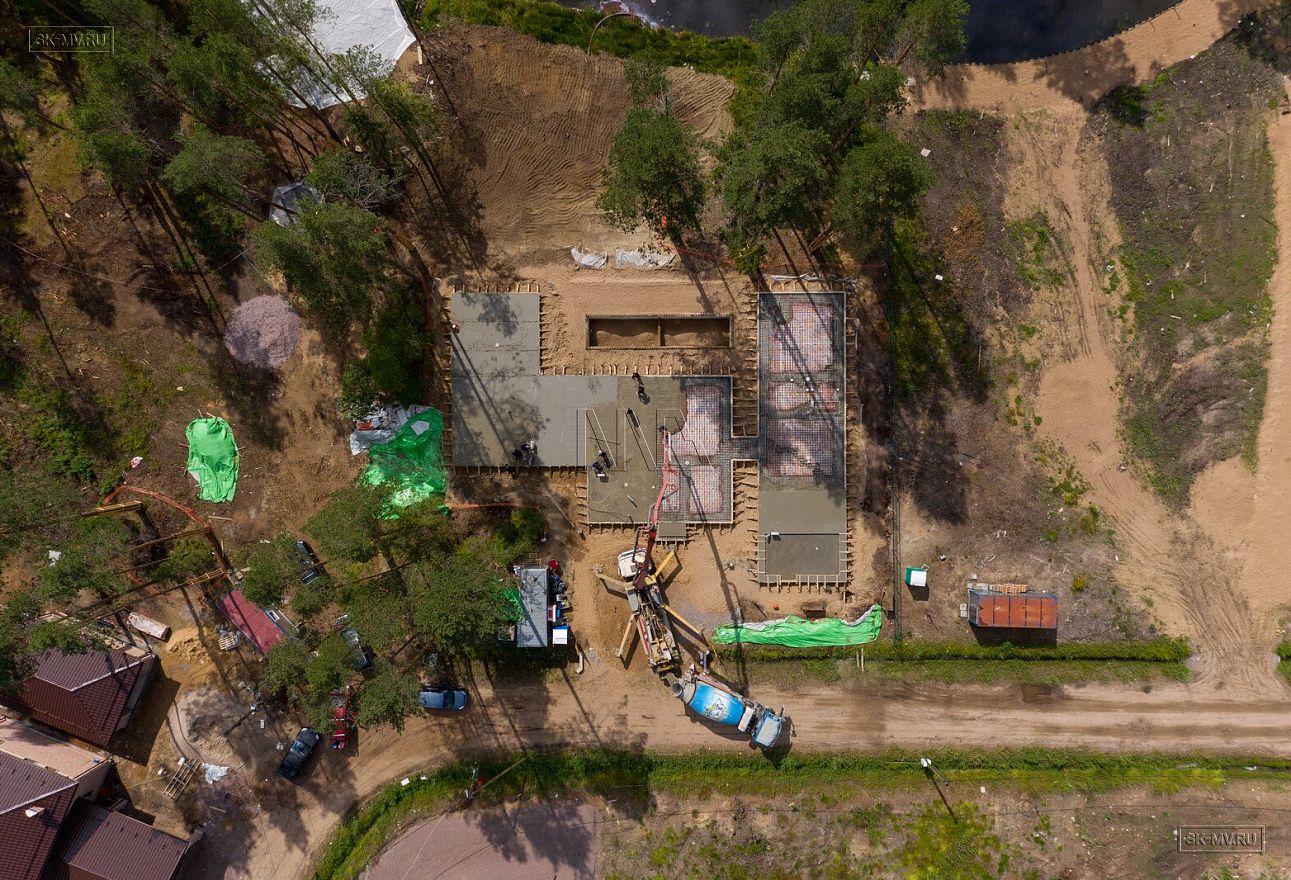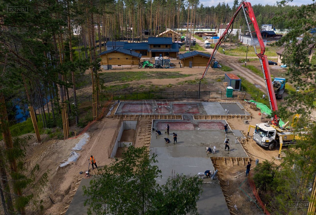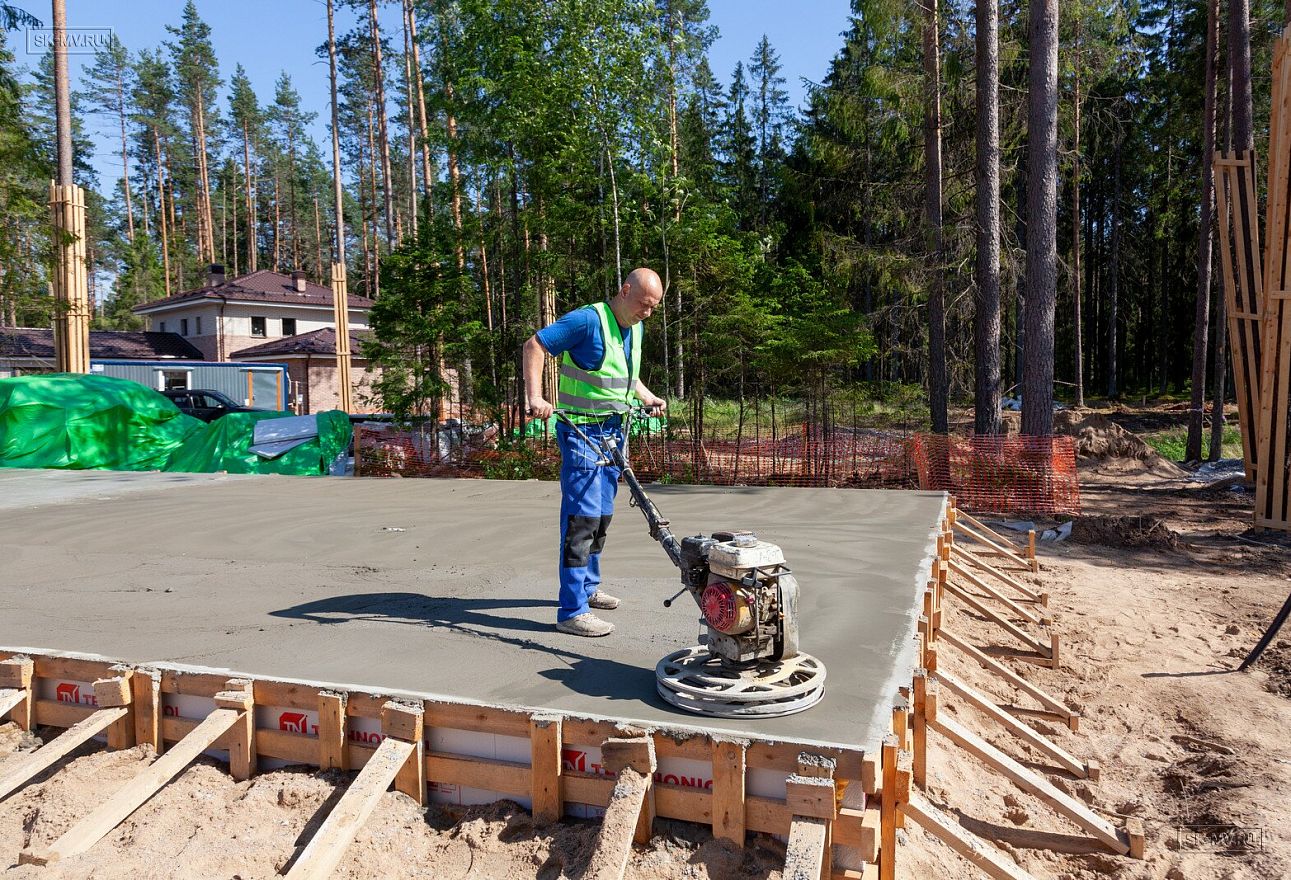 В июле 2021 выполнили заливку фундаментной плиты УШП PRO площадью 530 кв.м. Фундамент проектировался под строительство кирпичного дома в Рощино 2 в Ленинградской области. Монтаж выполнялся в две захватки: основая часть, потом оранжерея и крыльцо.