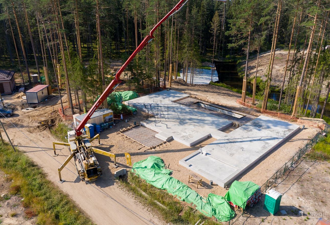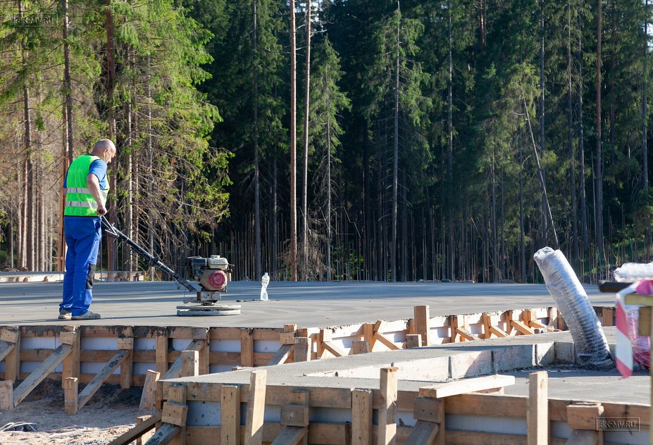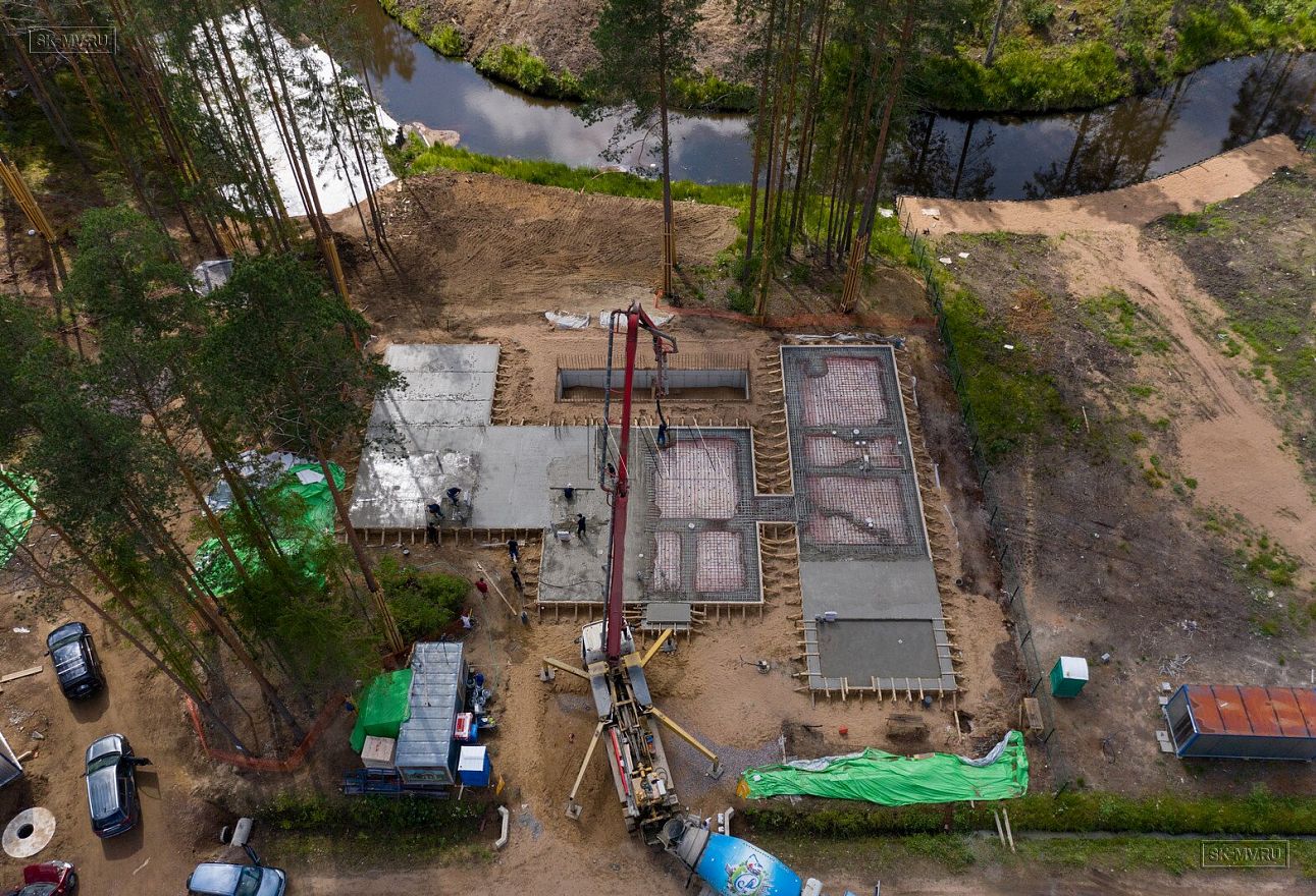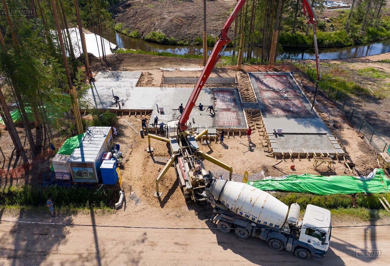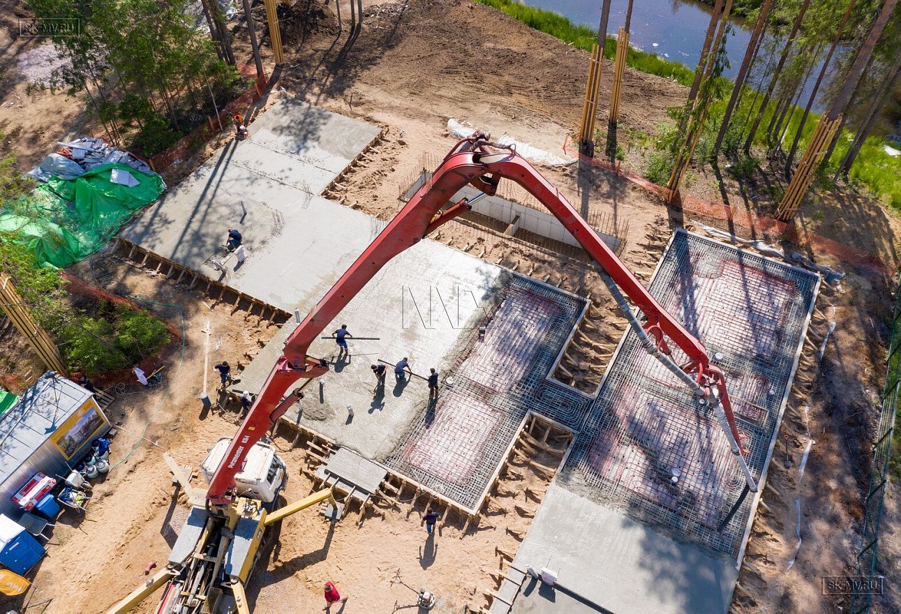 В июле 2021 выполнили заливку фундаментной плиты УШП PRO площадью 530 кв.м. Фундамент проектировался под строительство кирпичного дома в Рощино 2 в Ленинградской области. Монтаж выполнялся в две захватки: основая часть, потом оранжерея и крыльцо.