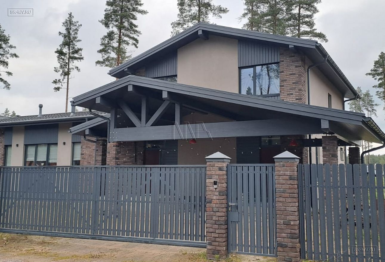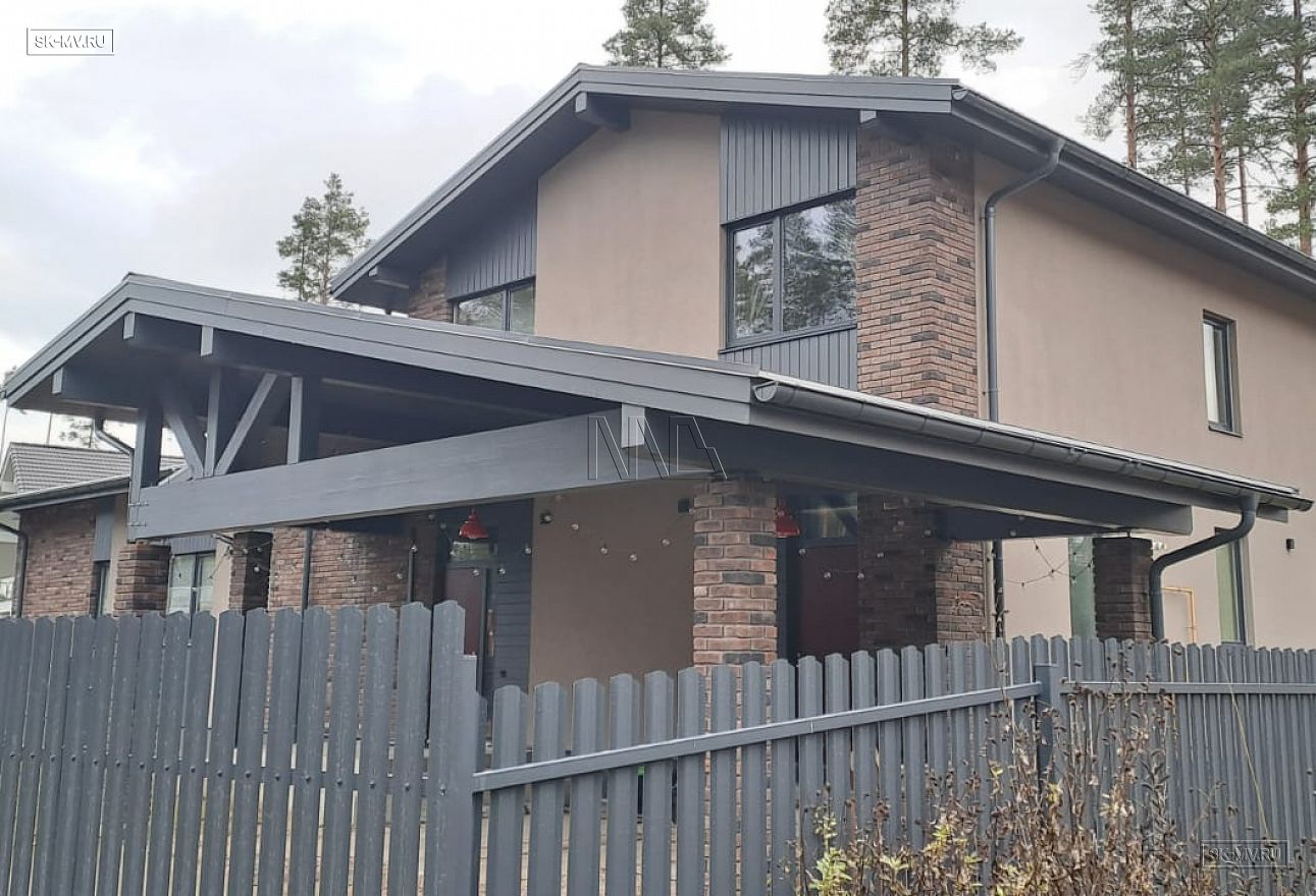 Завершающий этап строительства двухэтажного загородного дома по проекту «Рощино 35». Ключевые особенности проекта: