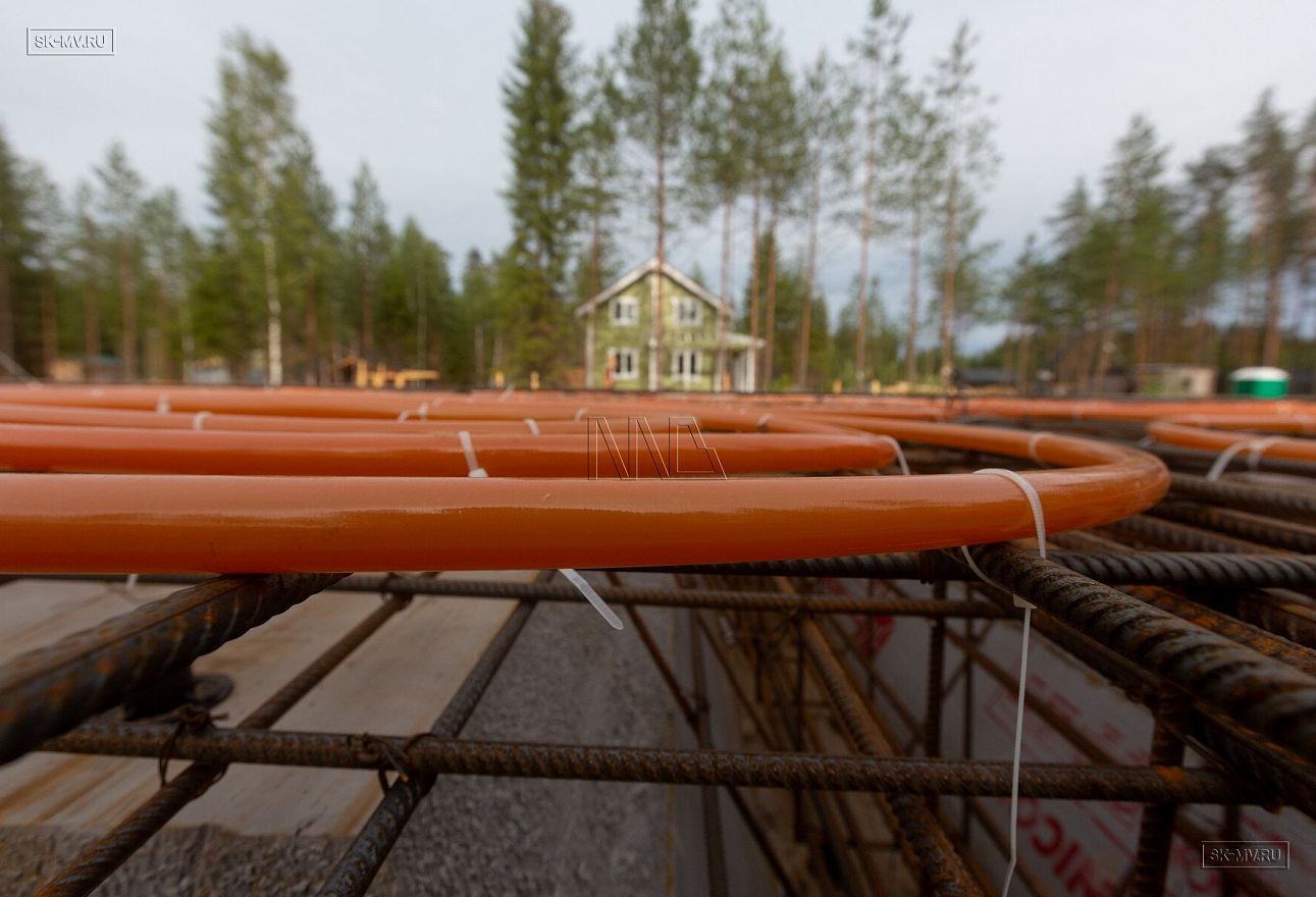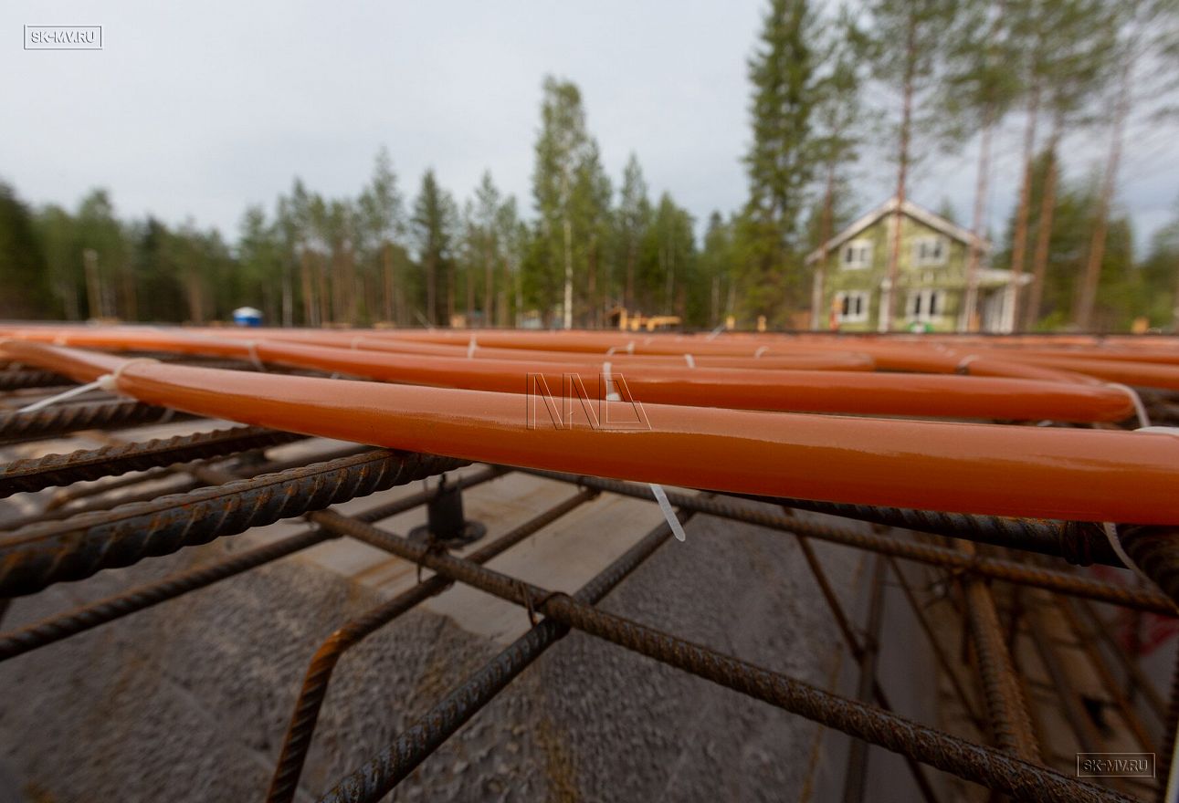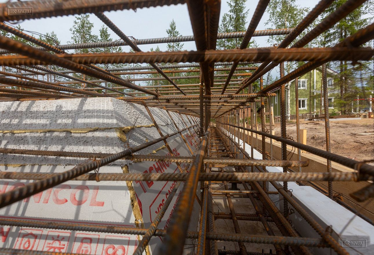 Летом 2020 завершен монтаж фундамента УШП PRO в коттеджном поселке Рощино в Ленинградской области под строительство двухэтажного кирпичного дома с монолитными межэтажными перекрытиями и вальмовой четырехскатной кровлей.