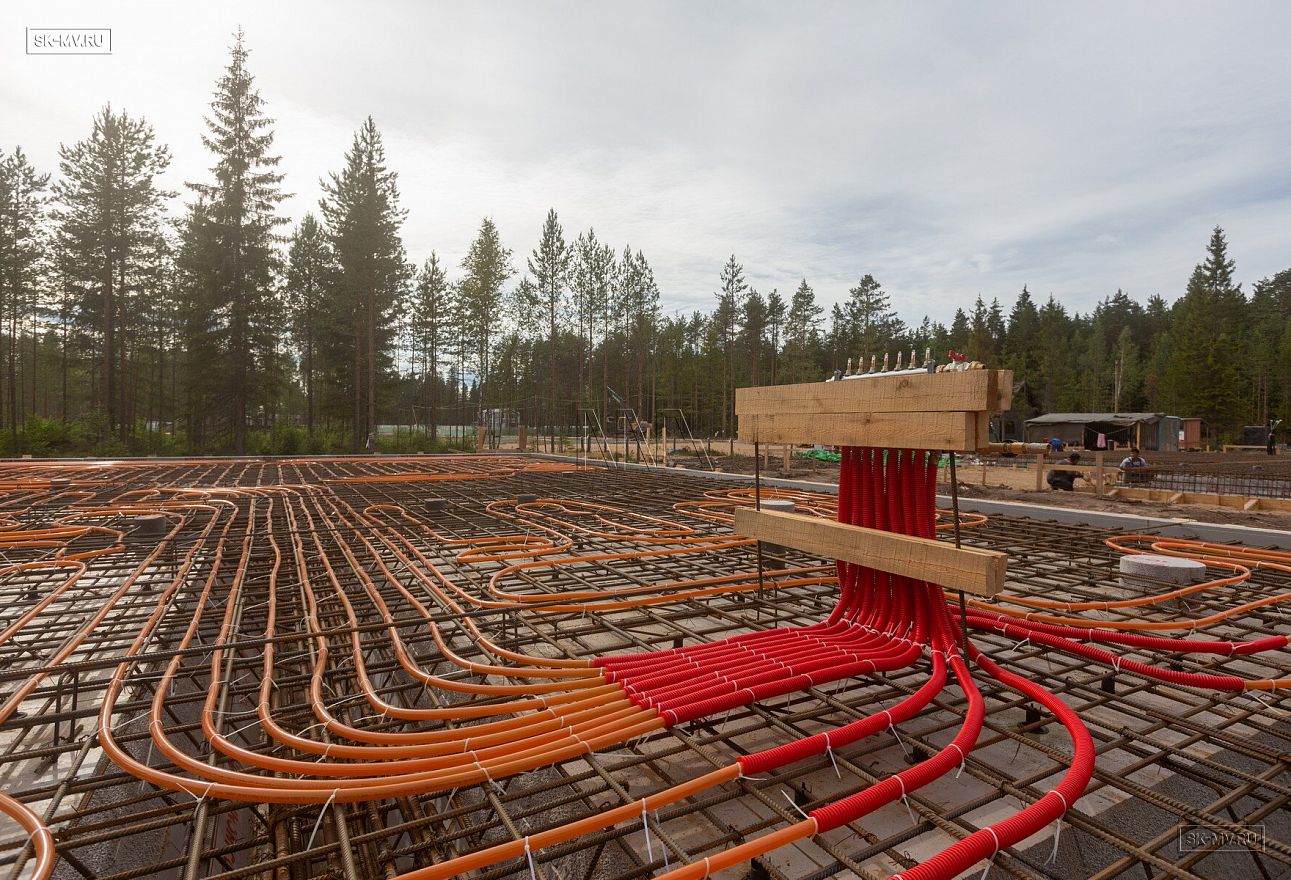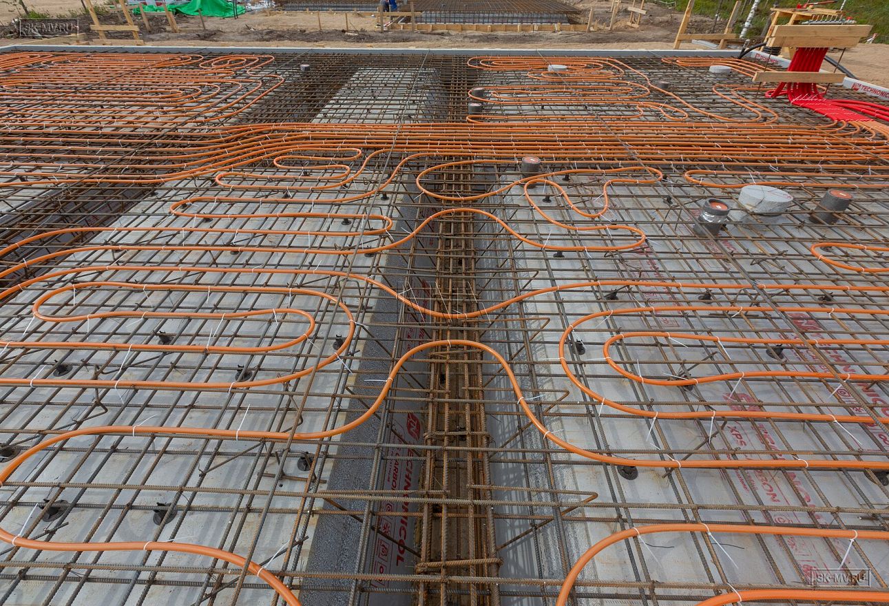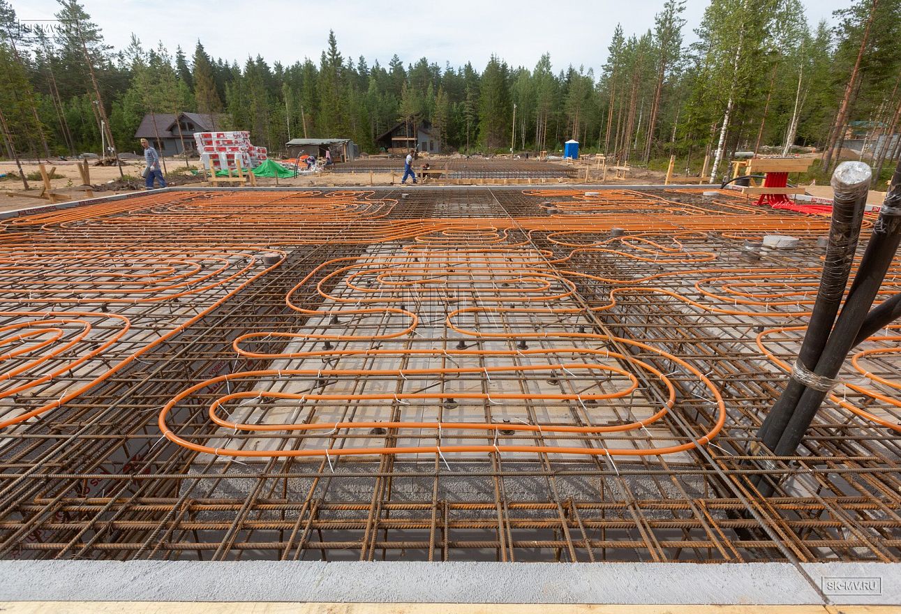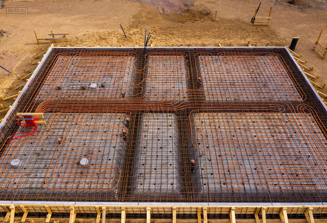 Летом 2020 завершен монтаж фундамента УШП PRO в коттеджном поселке Рощино в Ленинградской области под строительство двухэтажного кирпичного дома с монолитными межэтажными перекрытиями и вальмовой четырехскатной кровлей.