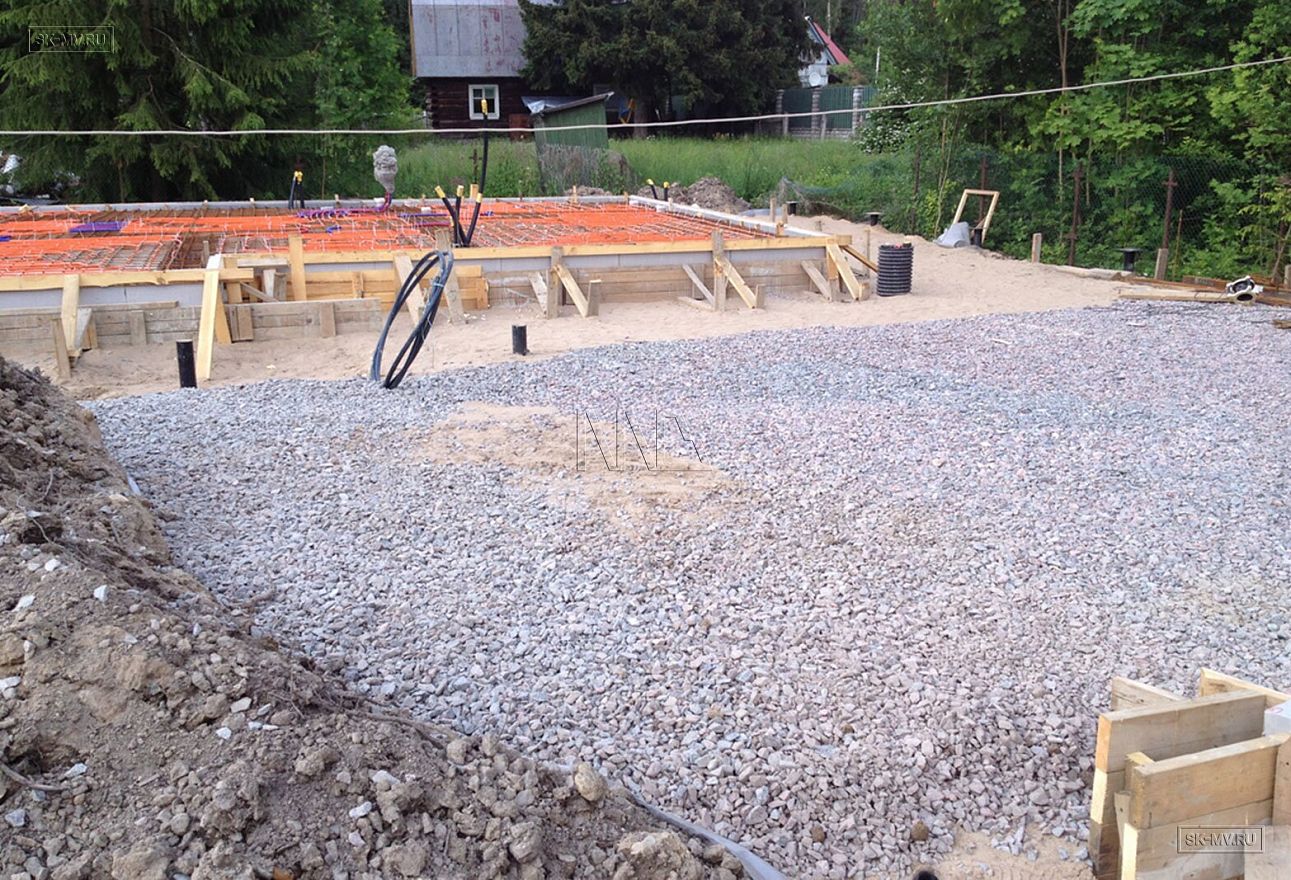 Строительная компания «Медный всадник» выполнила полный комплекс строительно-монтажных работ на этом объекте, начиная от земляных работ, организации въезда на участок, раскладке коммуникаций до монтажа фундамента УШП для возведения дома по каркасной технологии.