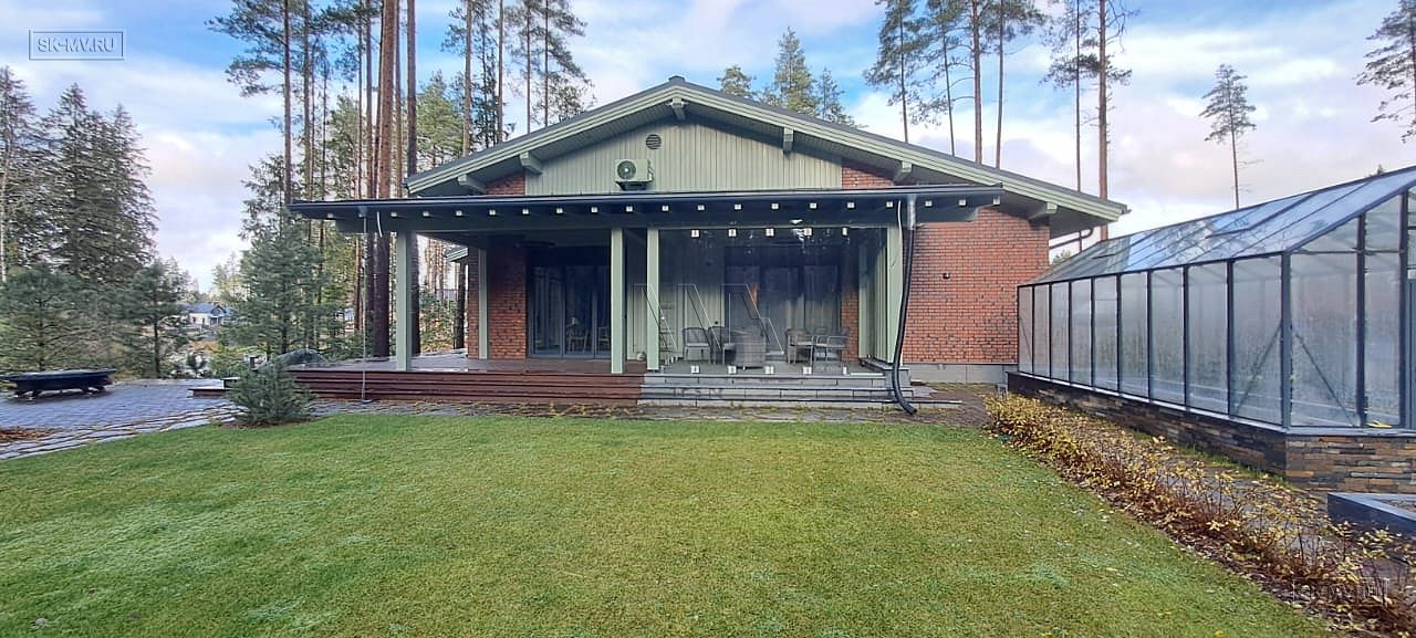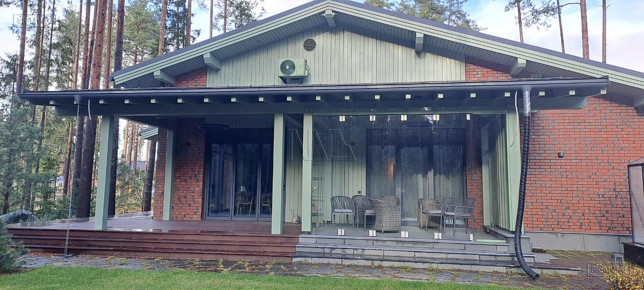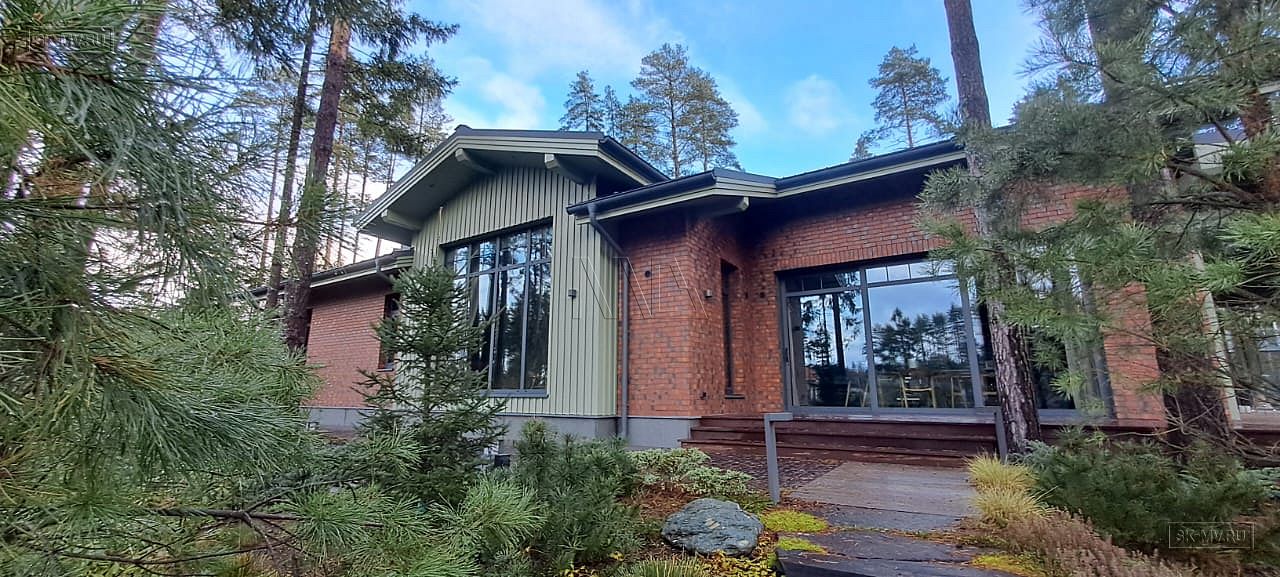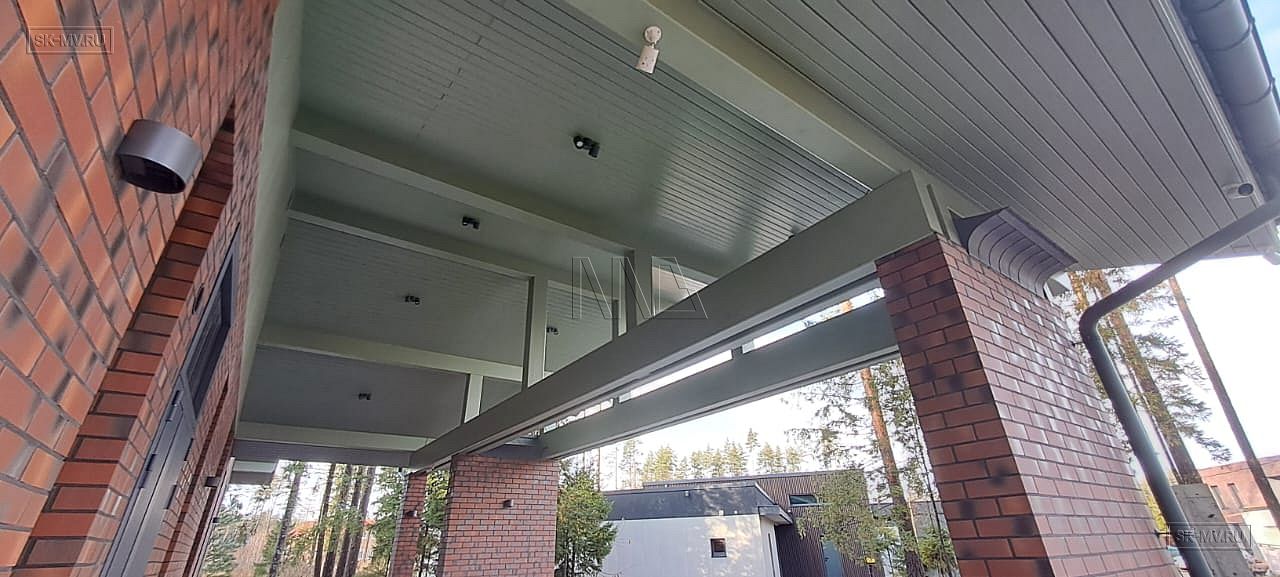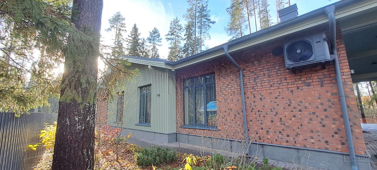 Завершающий этап строительства одноэтажного загородного дома по проекту «Сосновая аллея». Это дом в современном скандинавском стиле с мастер-спальней, двумя детскими, теплой террасой-барбекю и навесом на два автомобиля. Особенность проекта — комфортная СПА зона с хамамом, просторной комнатой отдыха и выходом на остекленную закрытую веранду с прозрачной кровлей.