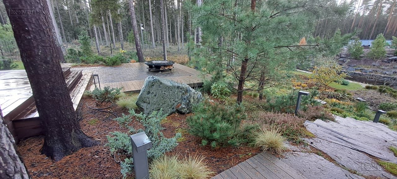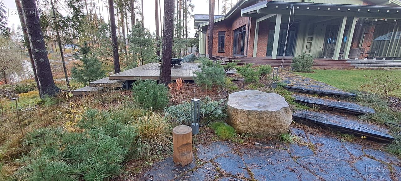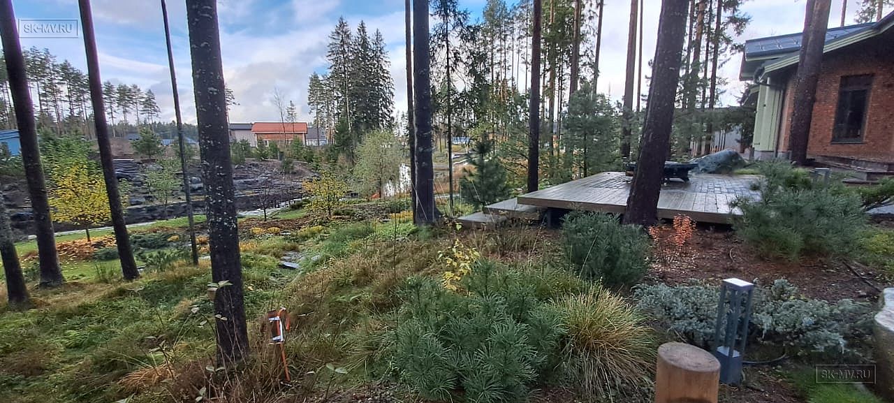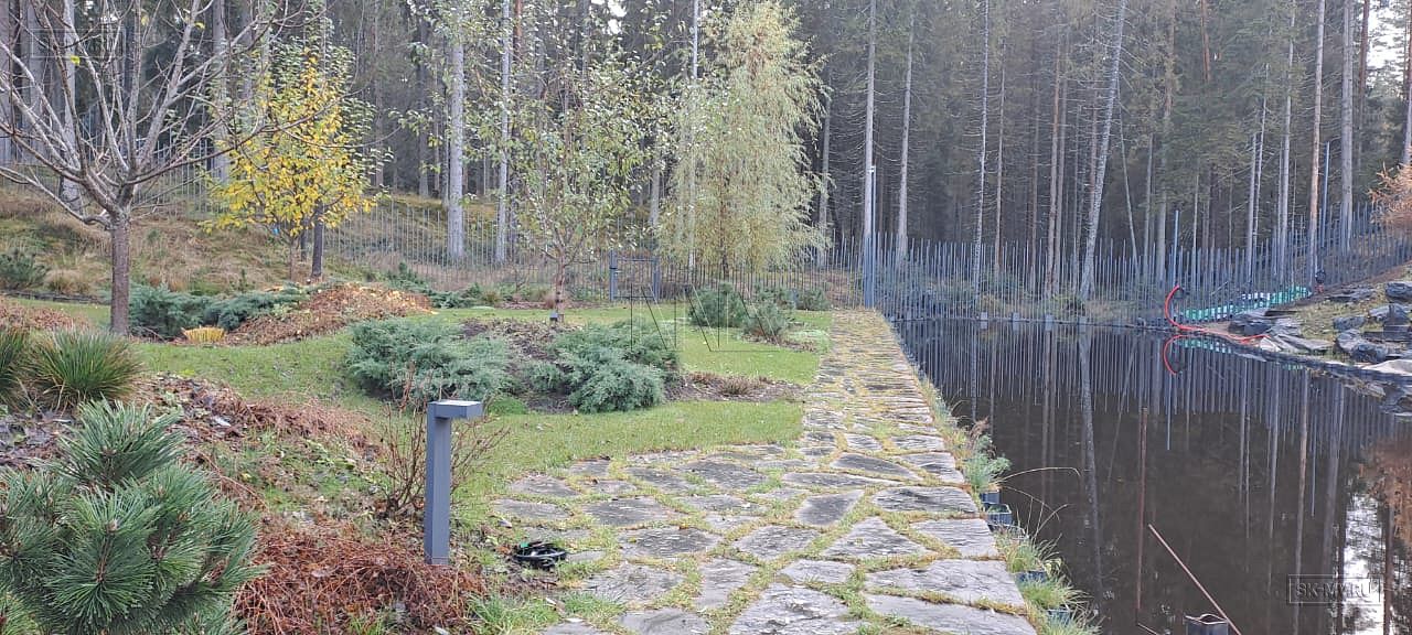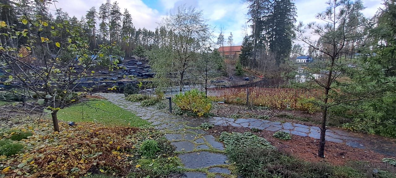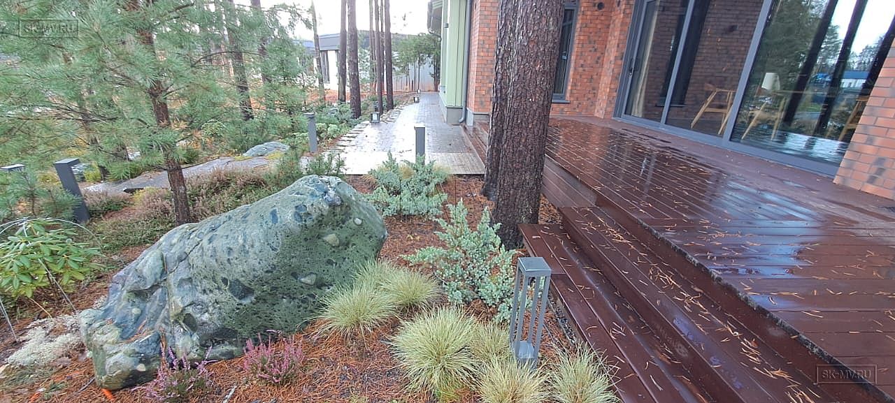 Завершающий этап строительства одноэтажного загородного дома по проекту «Сосновая аллея». Это дом в современном скандинавском стиле с мастер-спальней, двумя детскими, теплой террасой-барбекю и навесом на два автомобиля. Особенность проекта — комфортная СПА зона с хамамом, просторной комнатой отдыха и выходом на остекленную закрытую веранду с прозрачной кровлей.