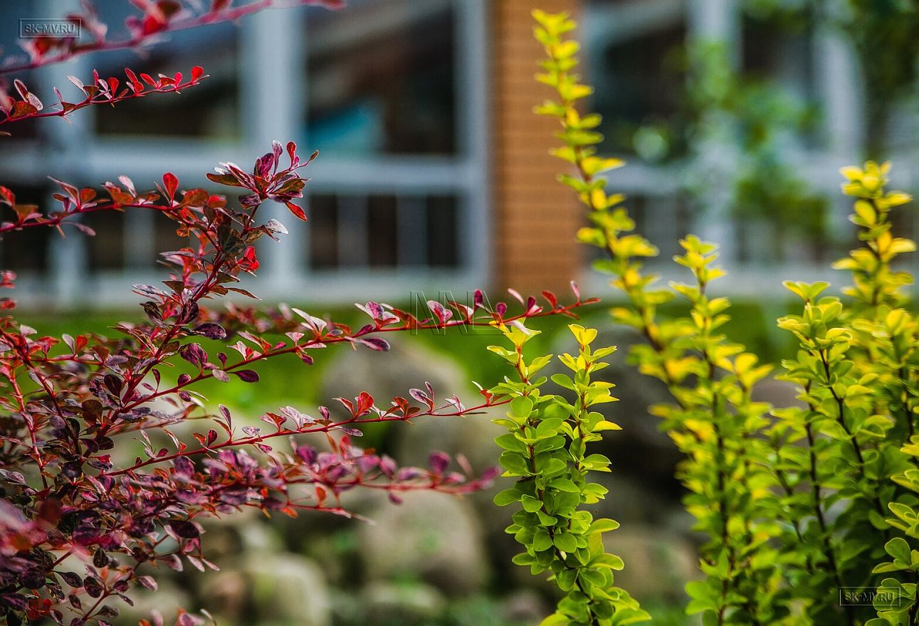 Хозяева живут в этом доме круглый год, поэтому обязательным было наличие закрытой отапливаемой веранды с панорамным остеклением, чтобы и летом, и зимой пить чай и радоваться новому дню в единении с природой. В таком же стиле, как дом на участке построена летняя кухня — барбекю также с панорамным остеклением.