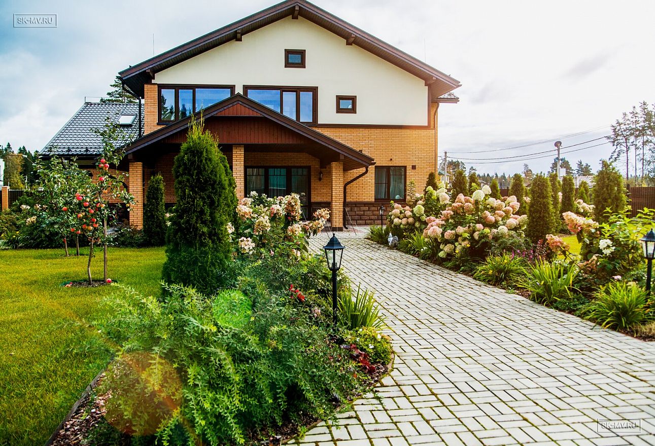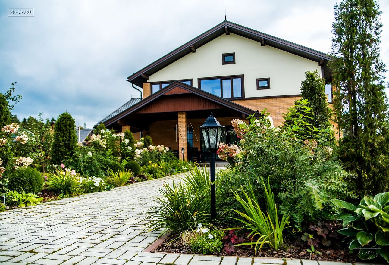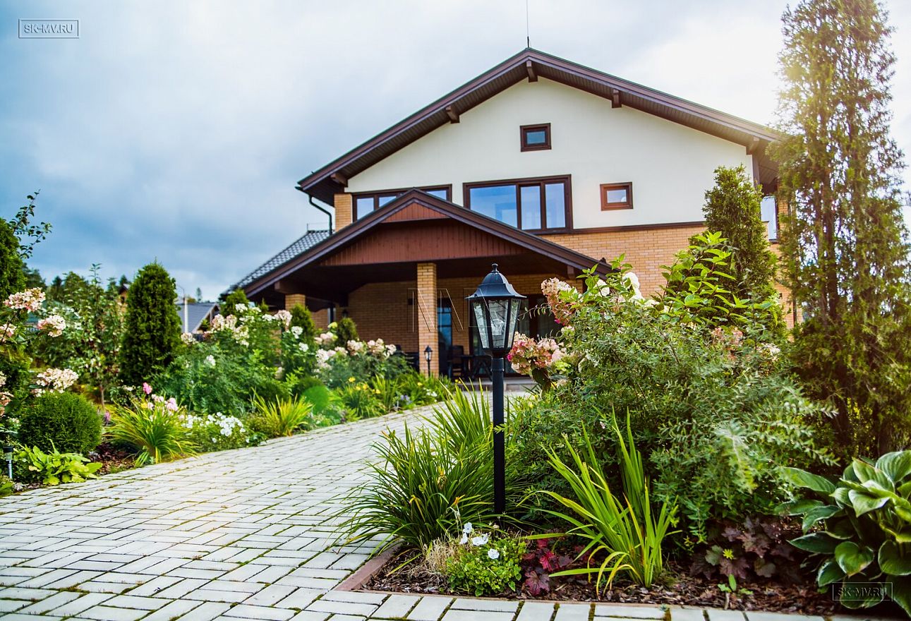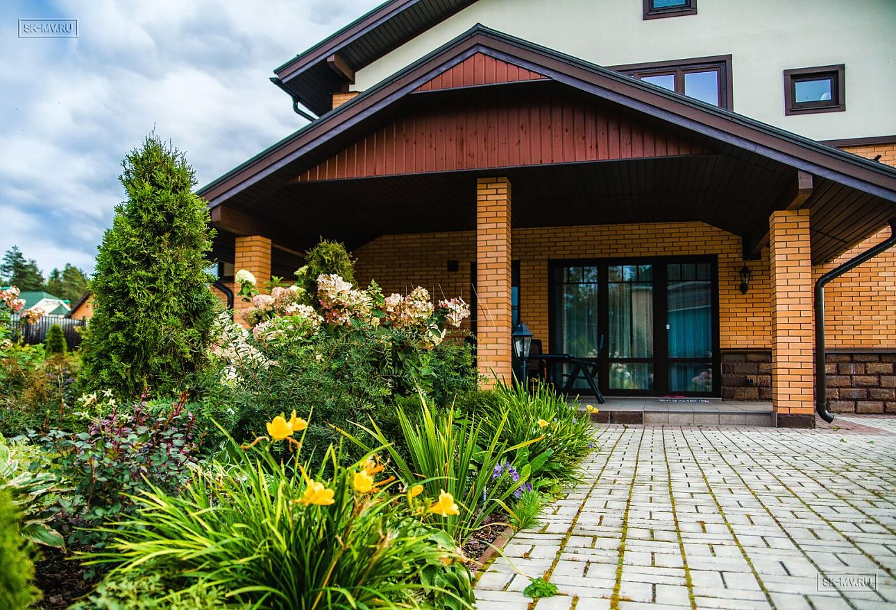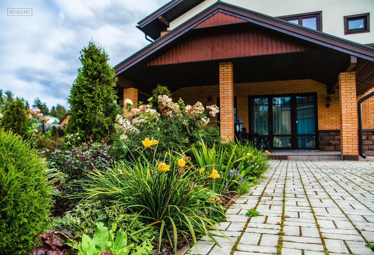 Ландшафтный дизайн, мощение, красивая аккуратная въездная группа создают законченный опрятный вид благоустроенного домовладения.