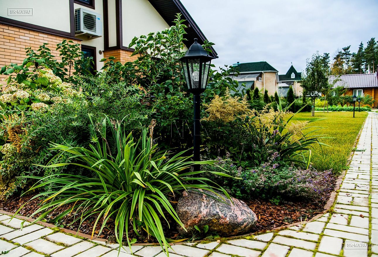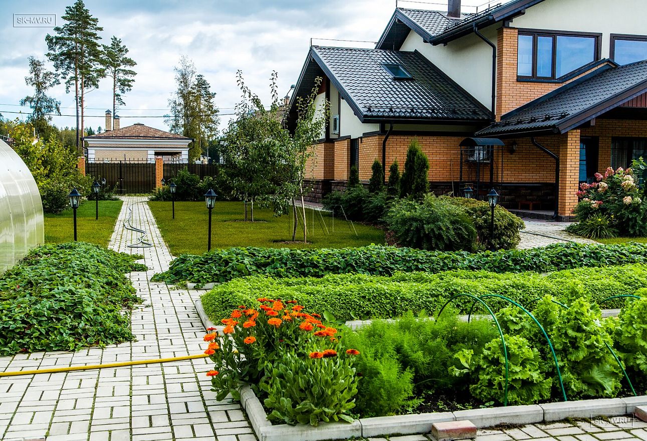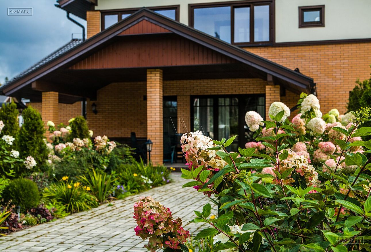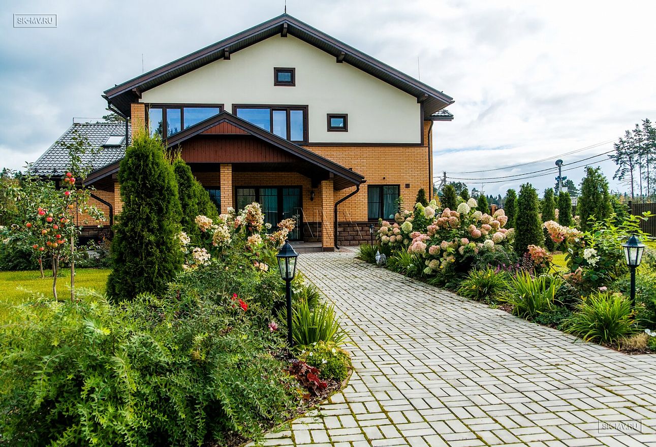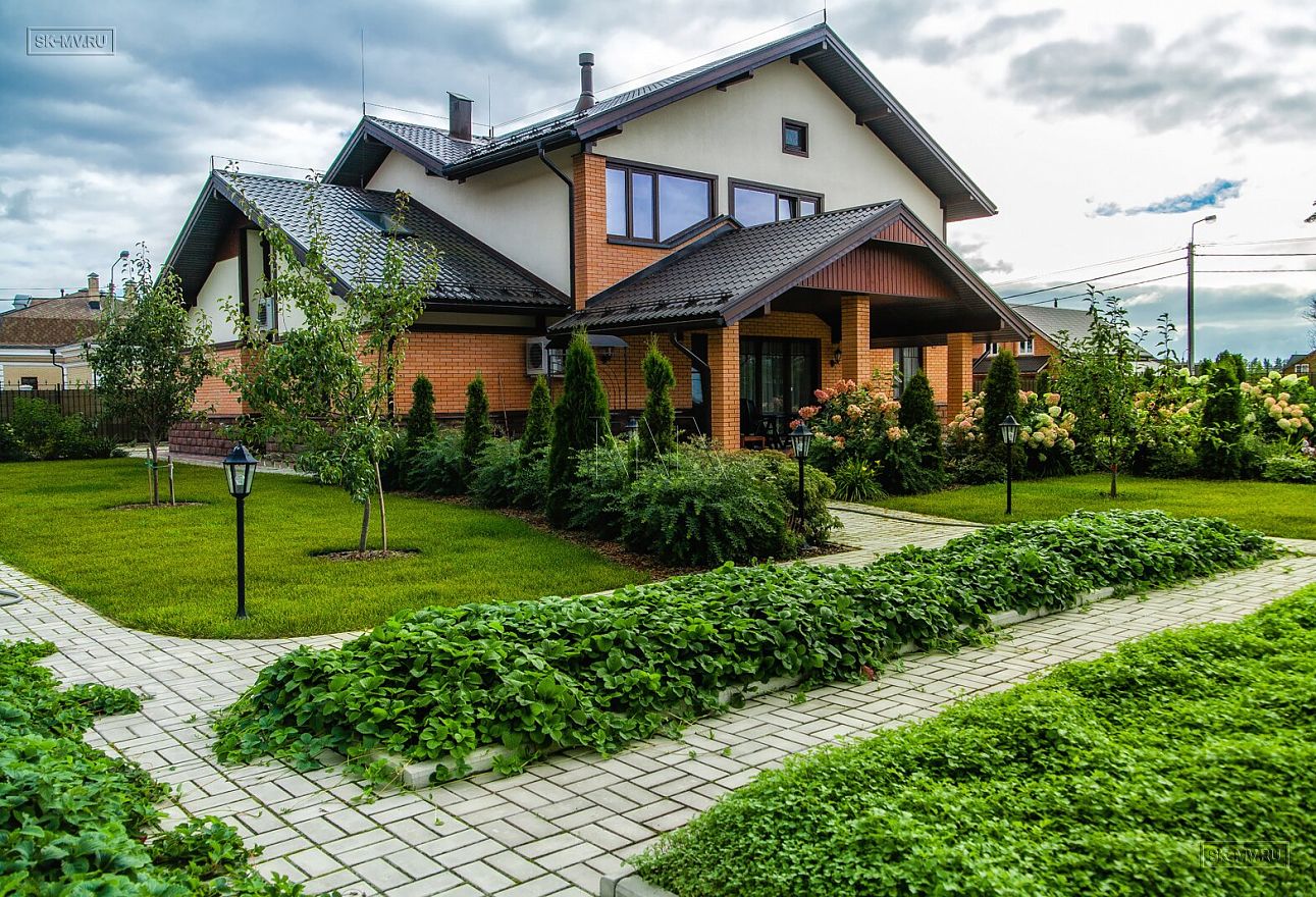 Ландшафтный дизайн, мощение, красивая аккуратная въездная группа создают законченный опрятный вид благоустроенного домовладения.