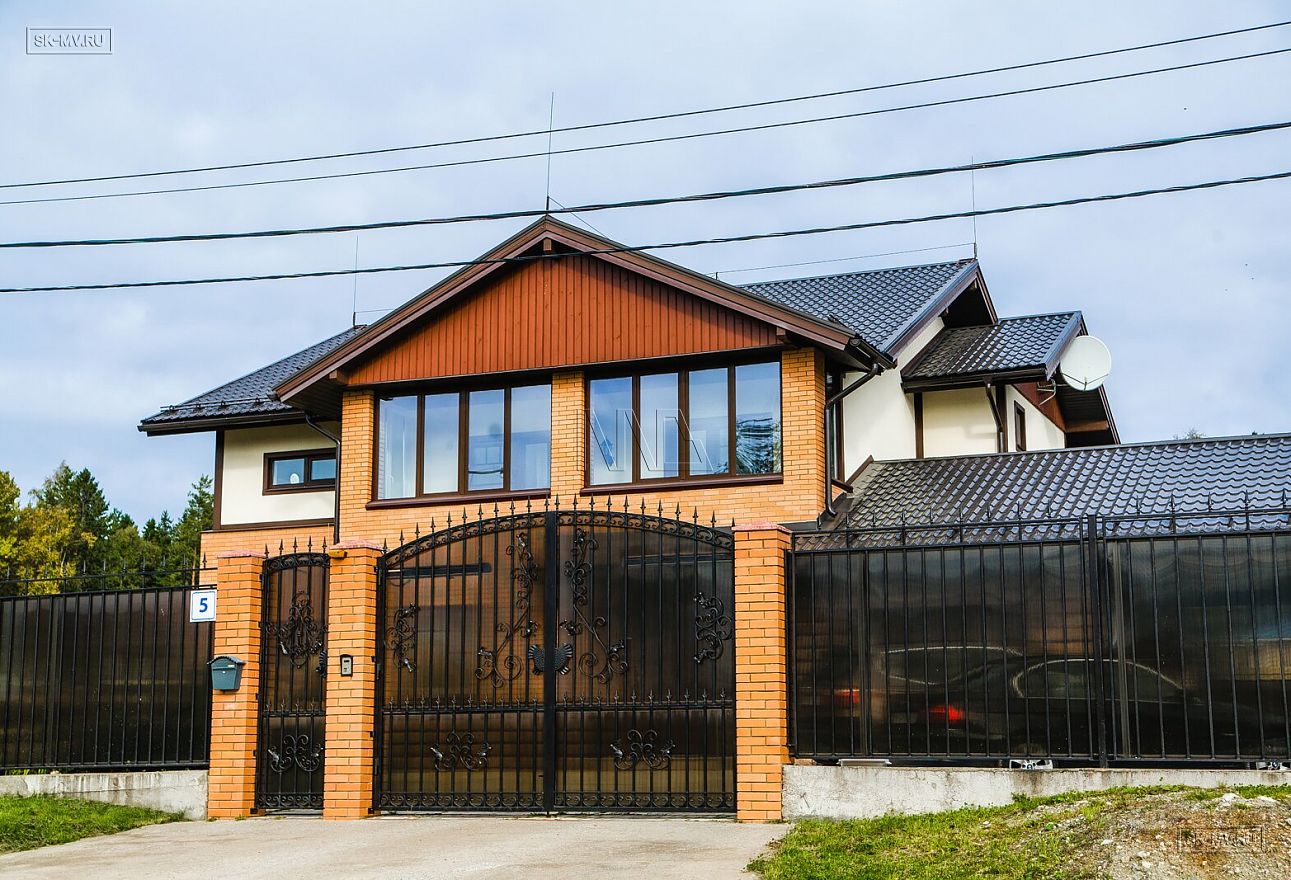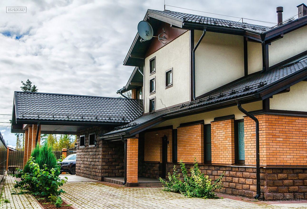 Яркий красивый дом из газобетона «Сосновый бор 4» площадью 455 кв.м построен нами по индивидуальному проекту в коттеджном поселке «Сосновое» Ленинградской области.