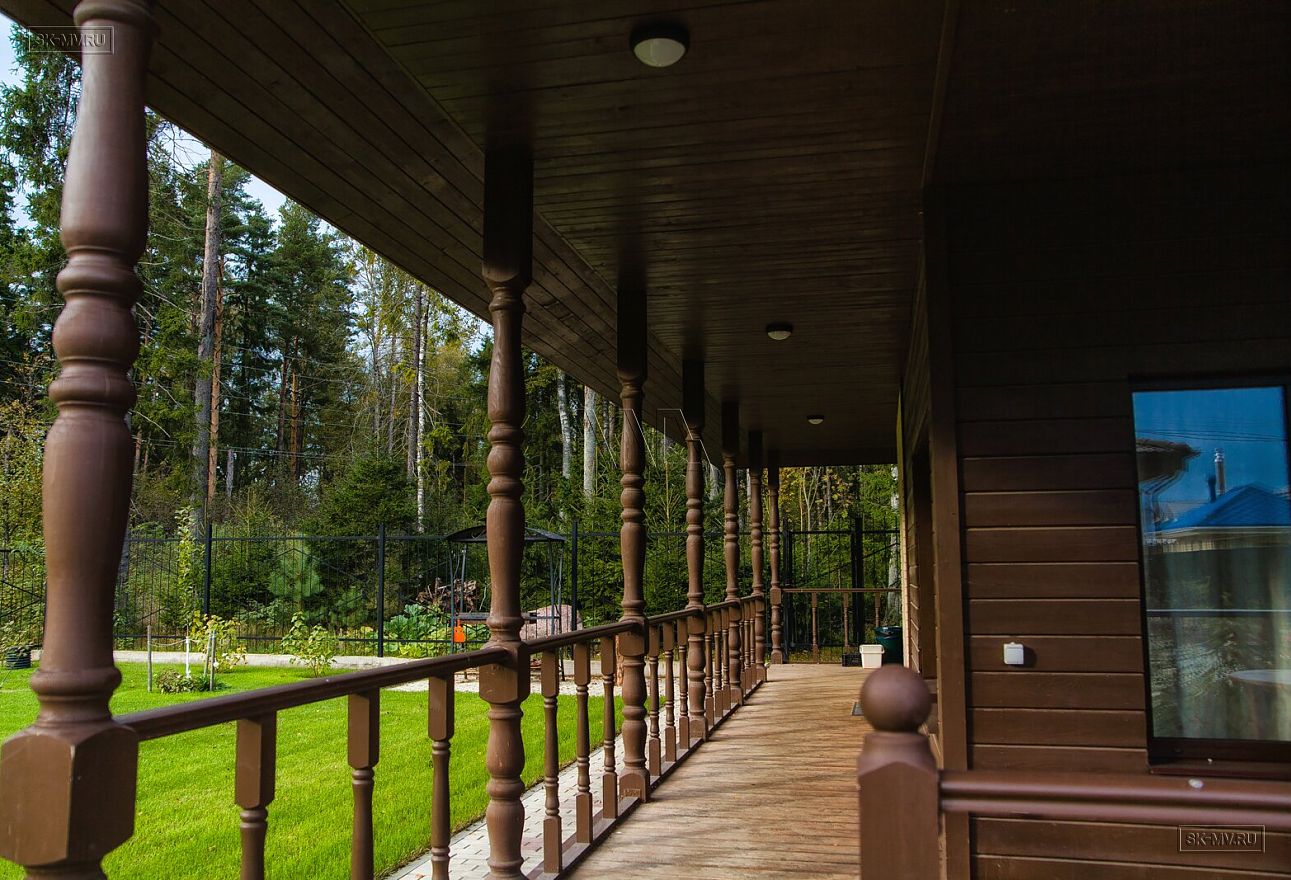 Закрытая веранда — частая тенденция в домах для постоянного проживания, построенных в северных широтах. Уставшие от ритма большого мегаполиса хозяева хотели, чтобы загородная жизнь протекала в гармонии с природой и летом, и зимой.