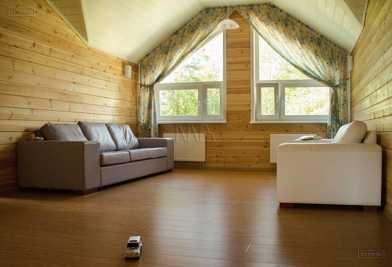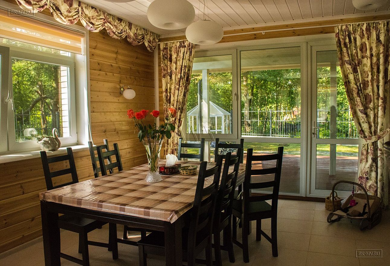 Задумка дизайнера состояла в том, чтобы сделать максимально удобное пространство для семьи с четырьмя детьми. Элементы интерьера - максимально просты и функциональны. Кроме этого пожеланием хозяев было максимально сохранить натуральное дерево в интерьере, поэтому стены были обшиты вагонкой, а мебель подбиралась или натурального цвета или окрашенного дерева, чтобы расставить некоторые цветовые акценты.