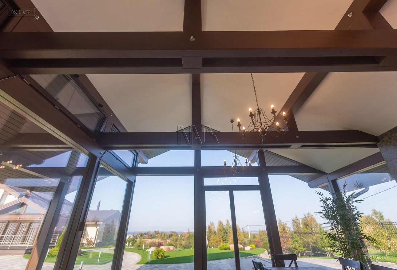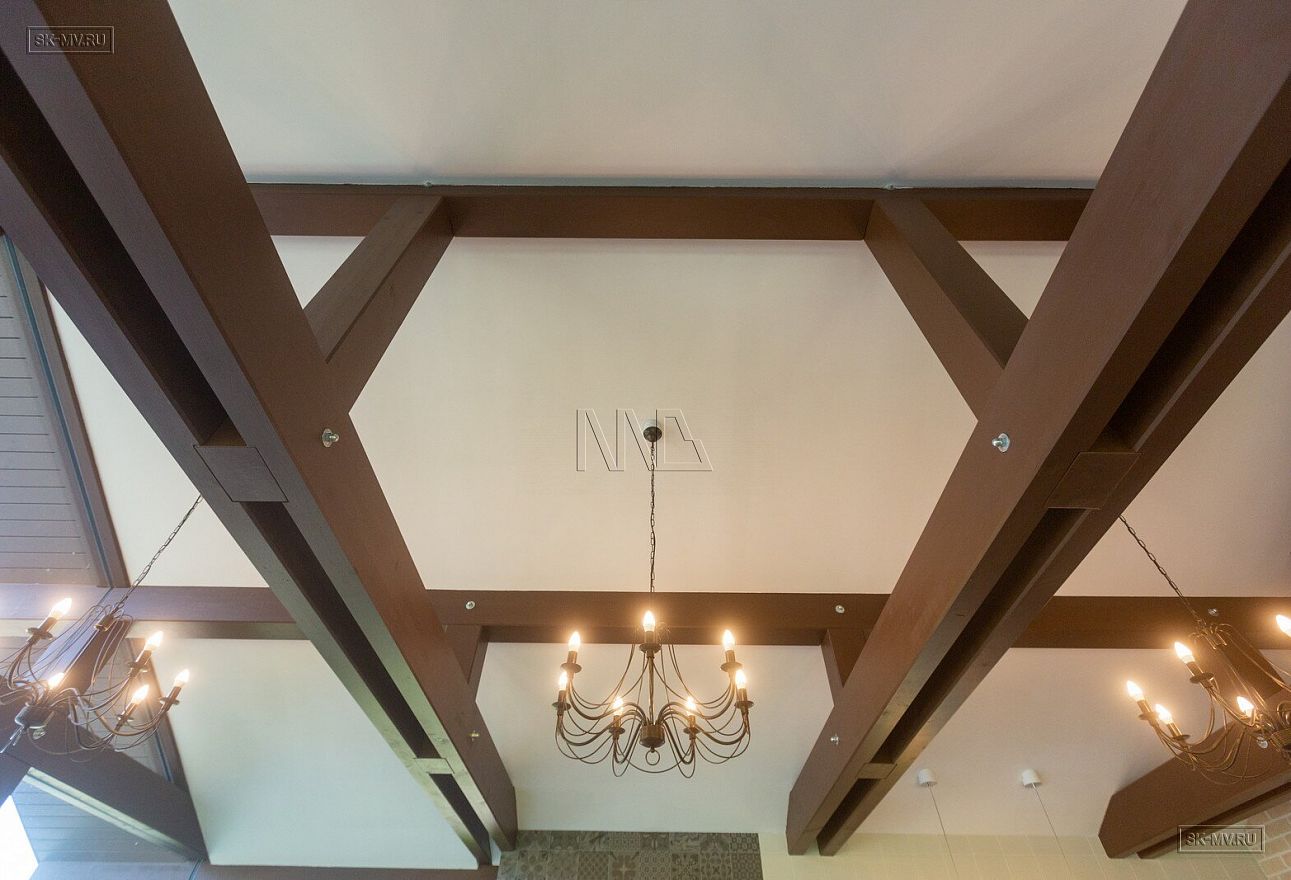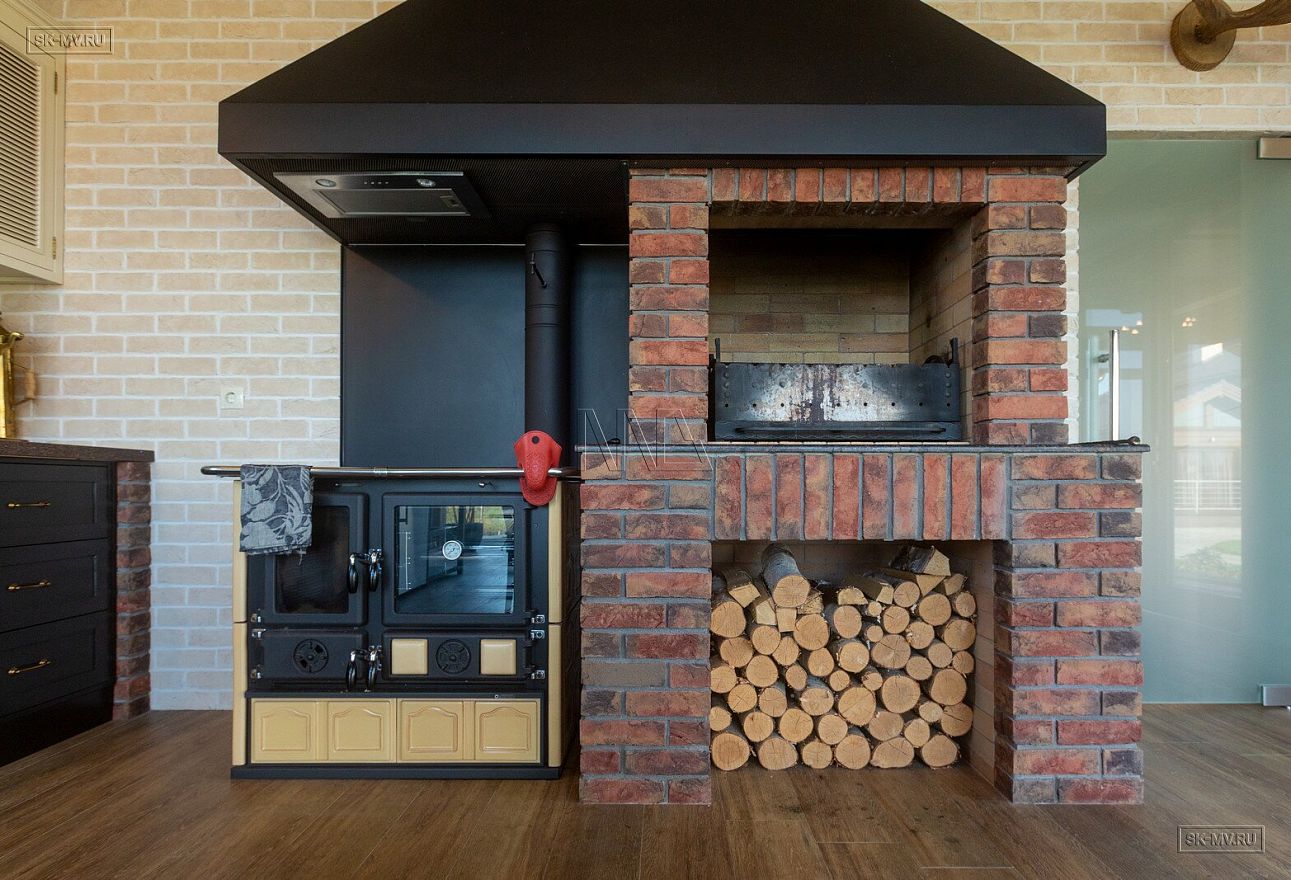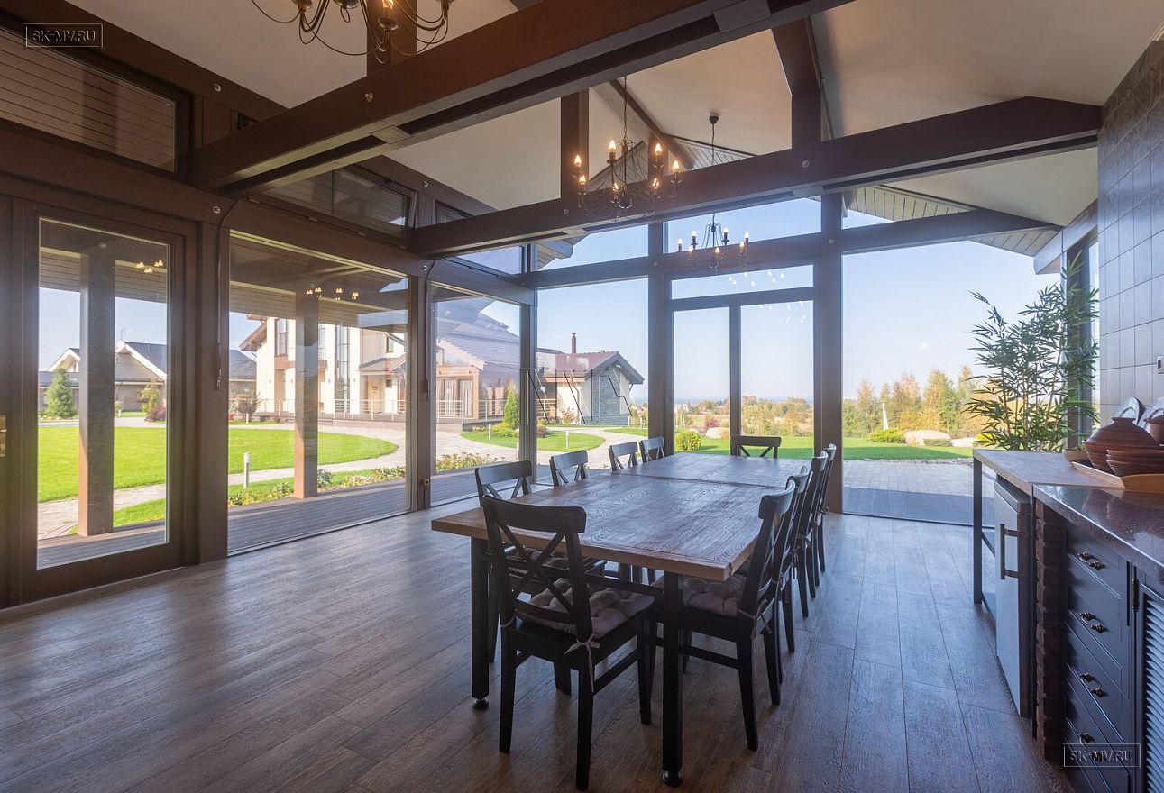 Интерьер летней кухни площадью 120 кв.м в Пениках Ломоносовского района Санкт-Петербурга. Летняя кухня построена по технологии фахверк в едином ансамбле с основным домом.