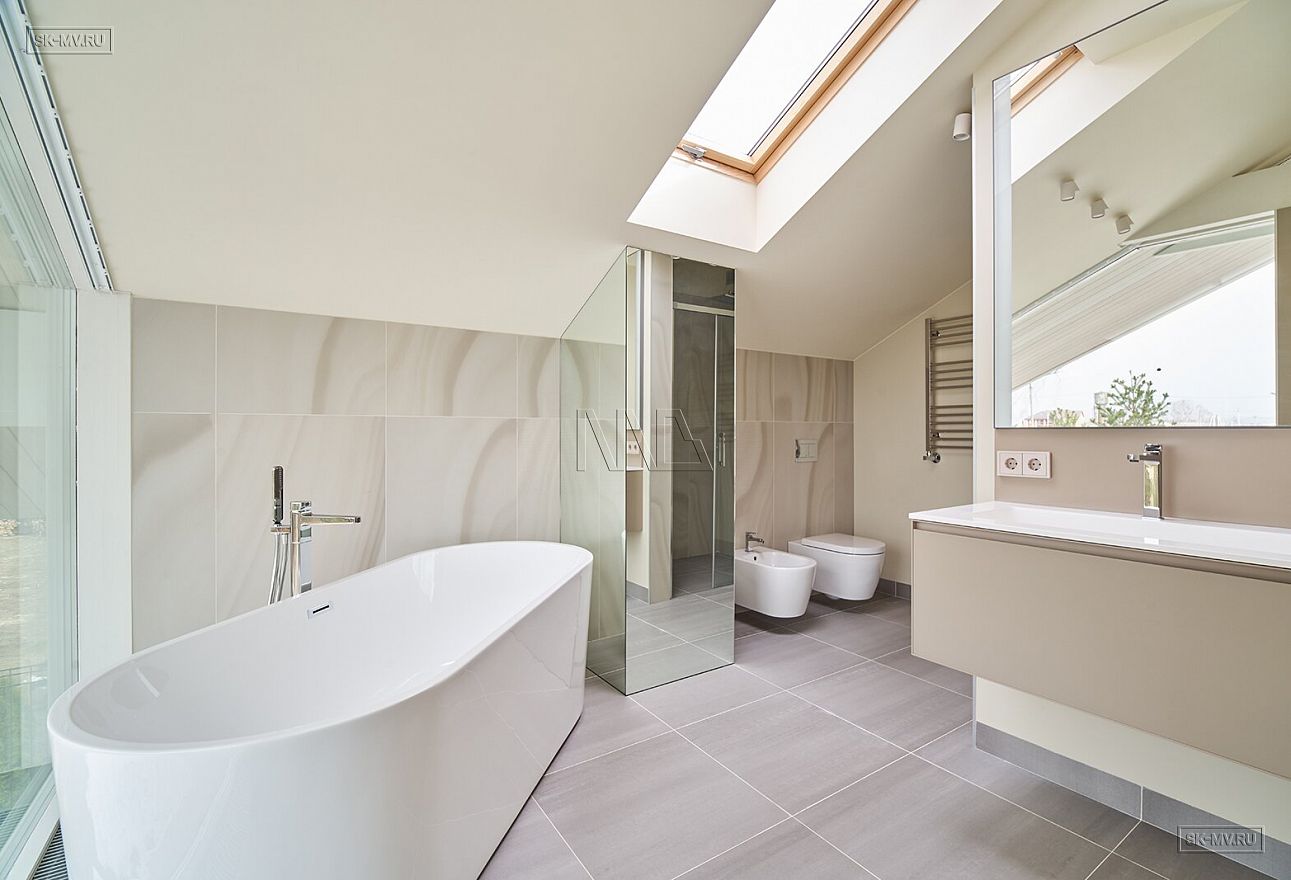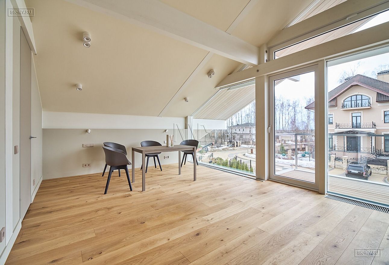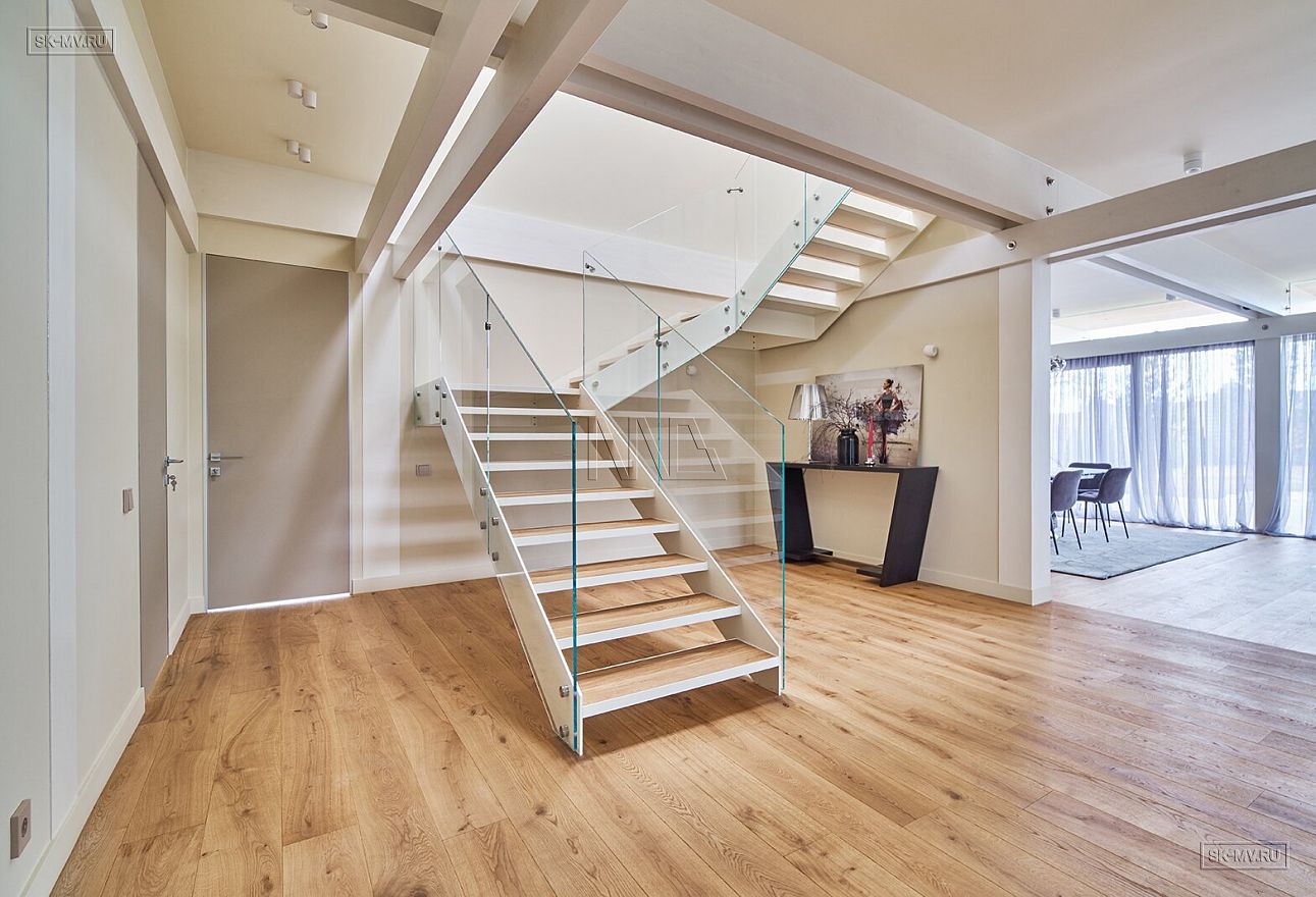 На фотографиях представлен интерьер загородного дома, построенного по технологии фахверк в КП Монтевиль Московской области. Дом площадью 356 кв.м.