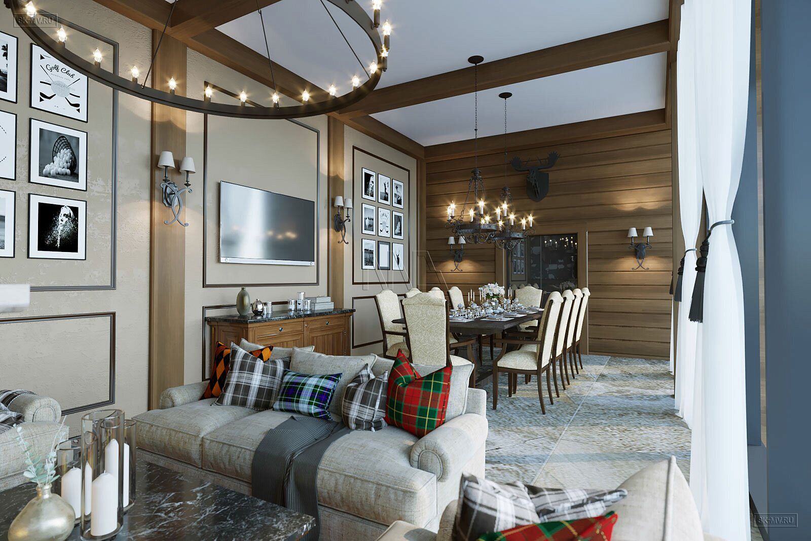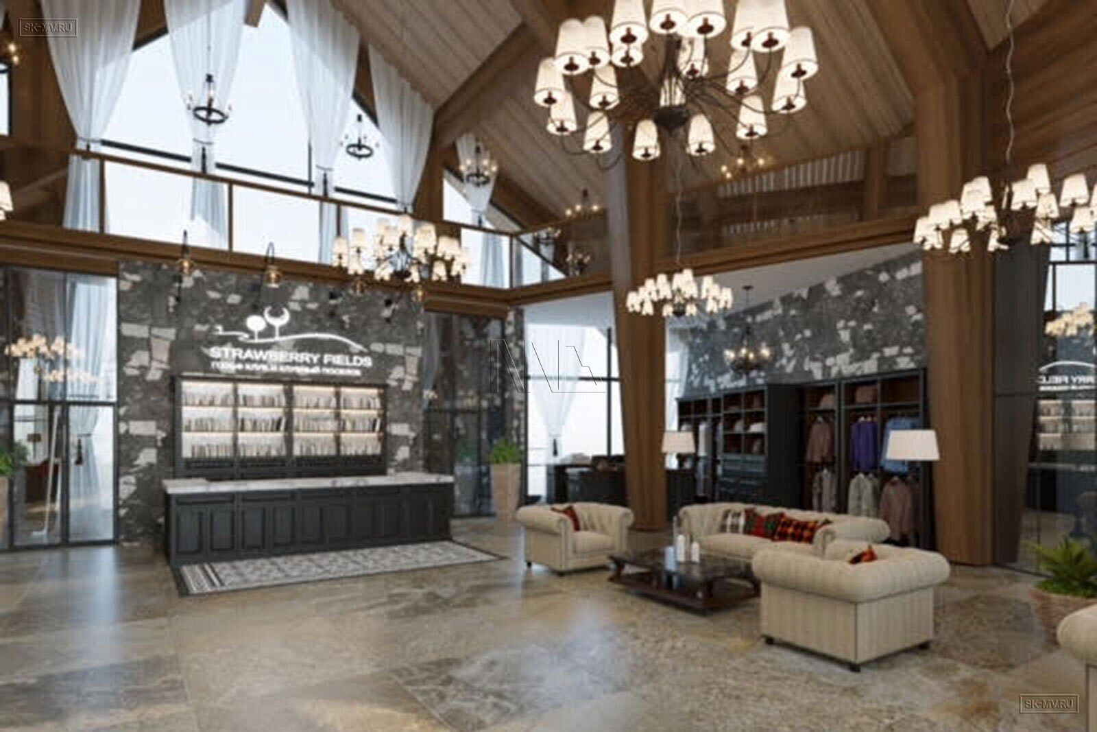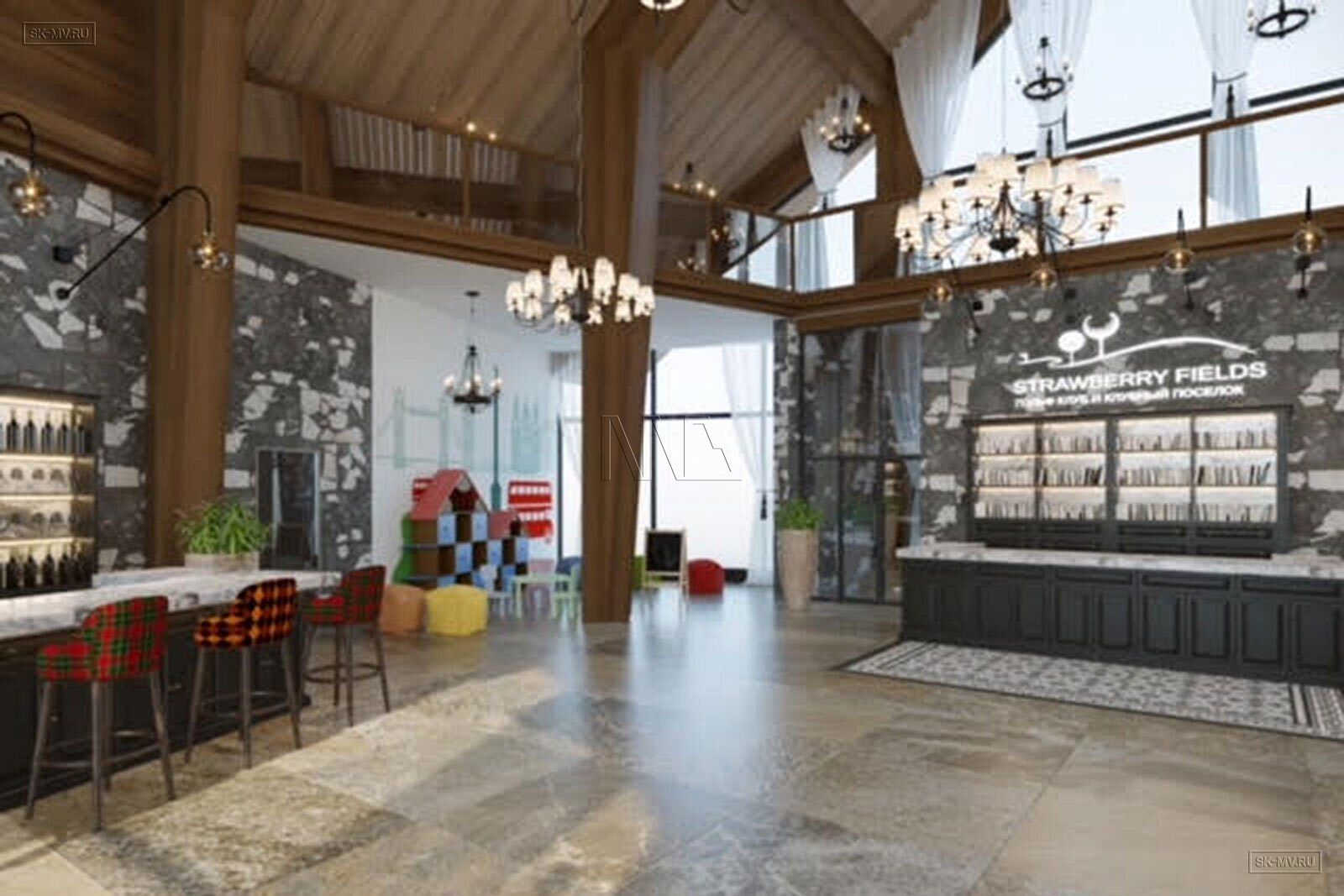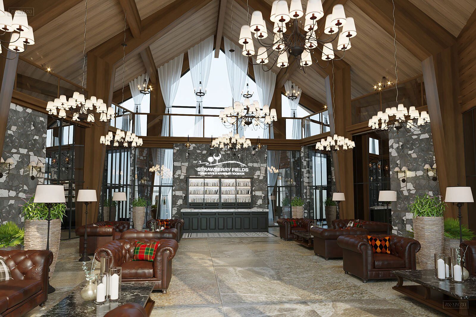 На фотография представлен интерьер клубного дома, которые был оформлен на территории гольф-клуба.