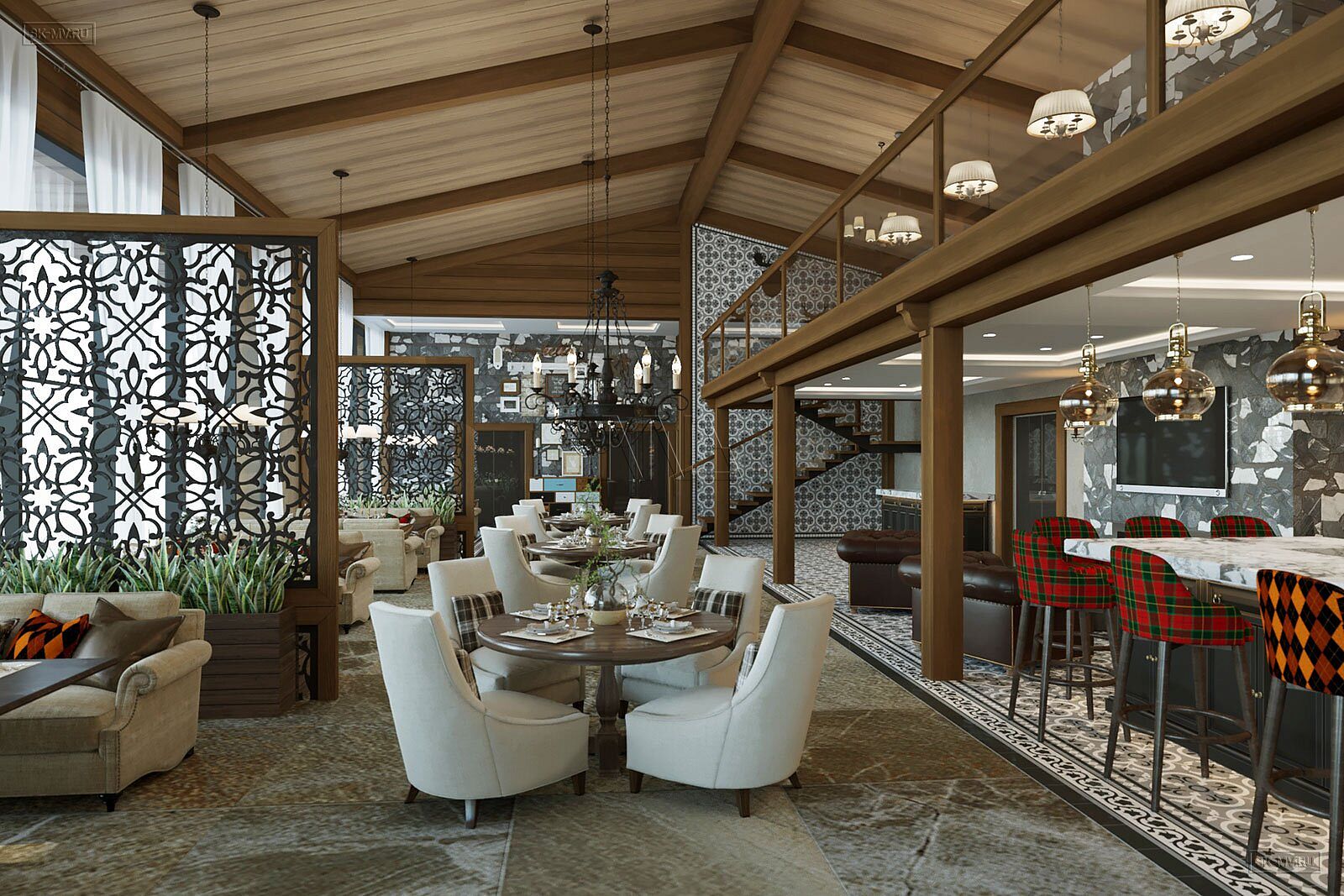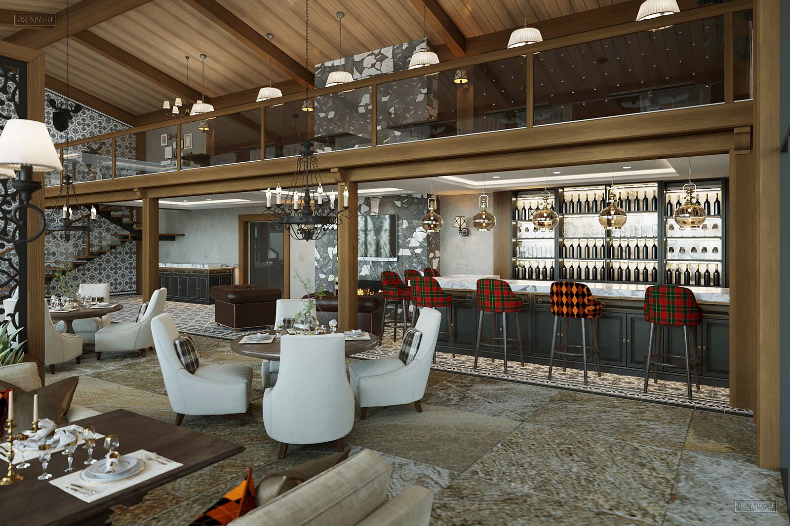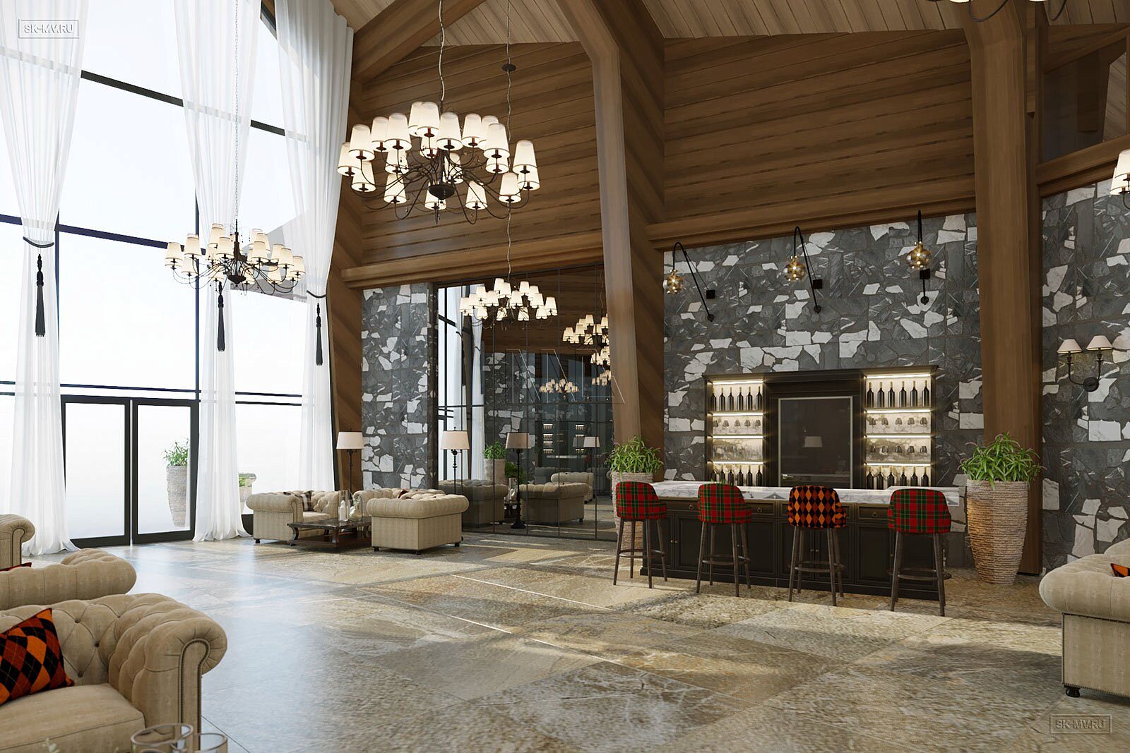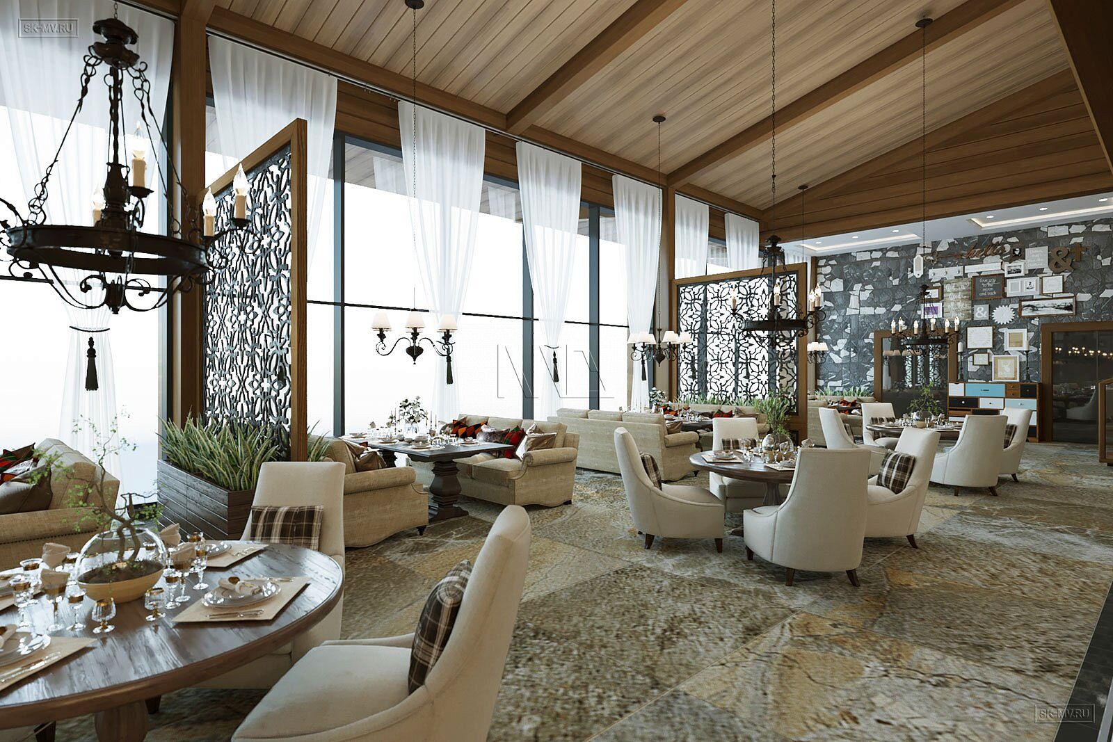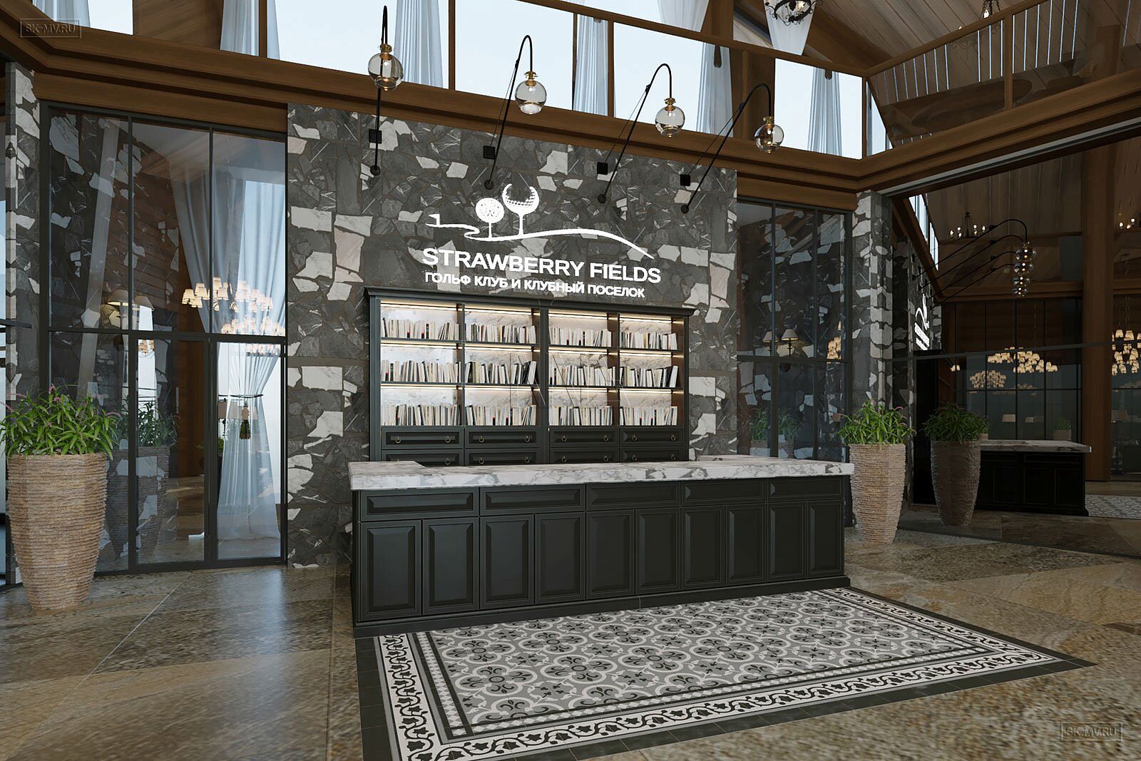 На фотография представлен интерьер клубного дома, которые был оформлен на территории гольф-клуба.