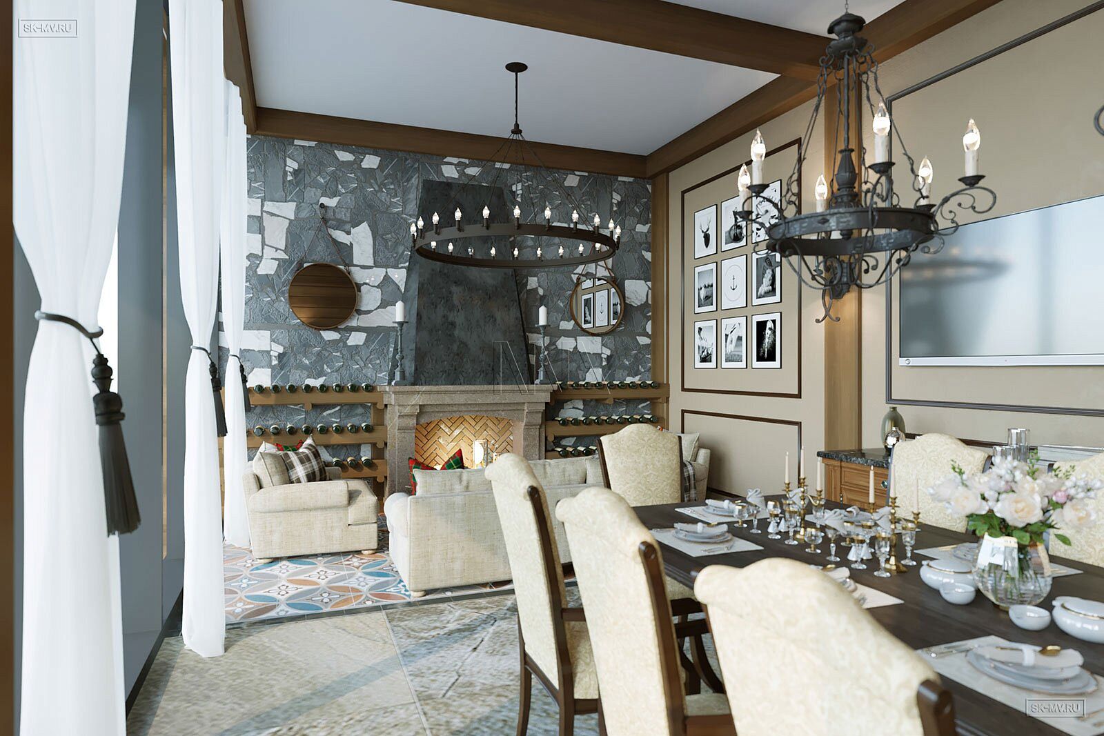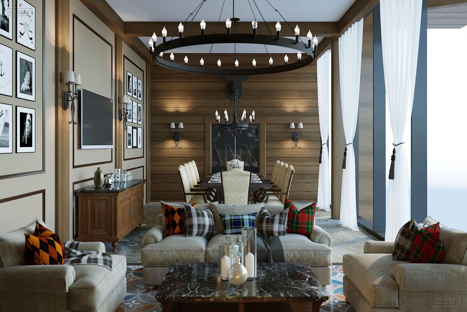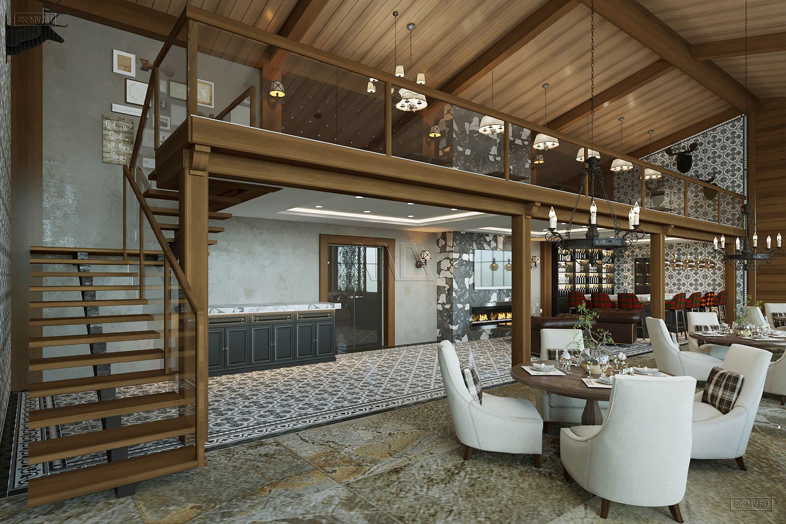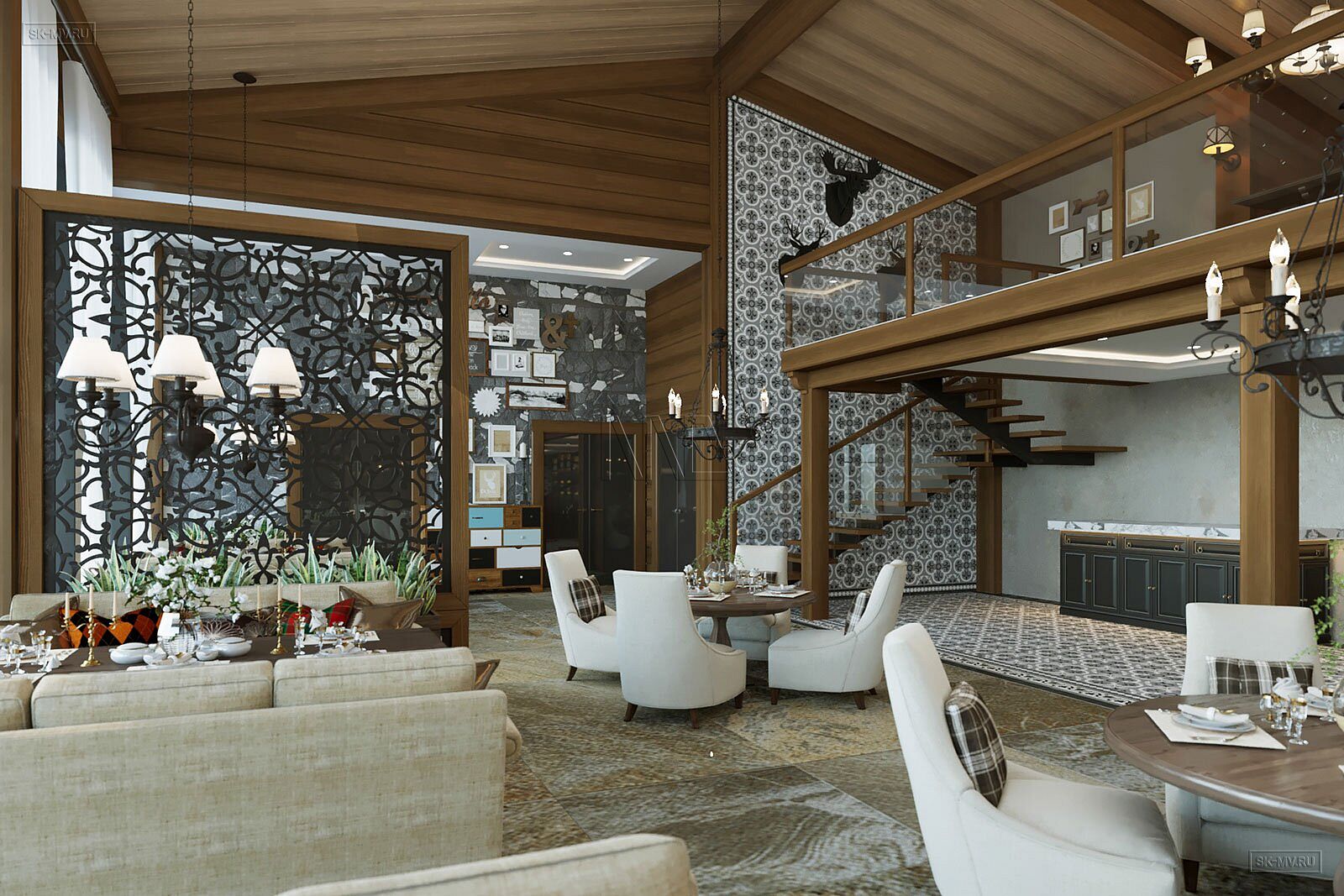 На фотография представлен интерьер клубного дома, которые был оформлен на территории гольф-клуба.