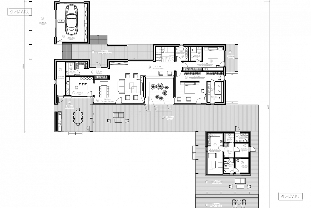 Проект адаптируется под запрос конкретной семьи и индивидуальные особенности участка. Подробнее по ссылке.