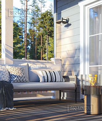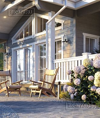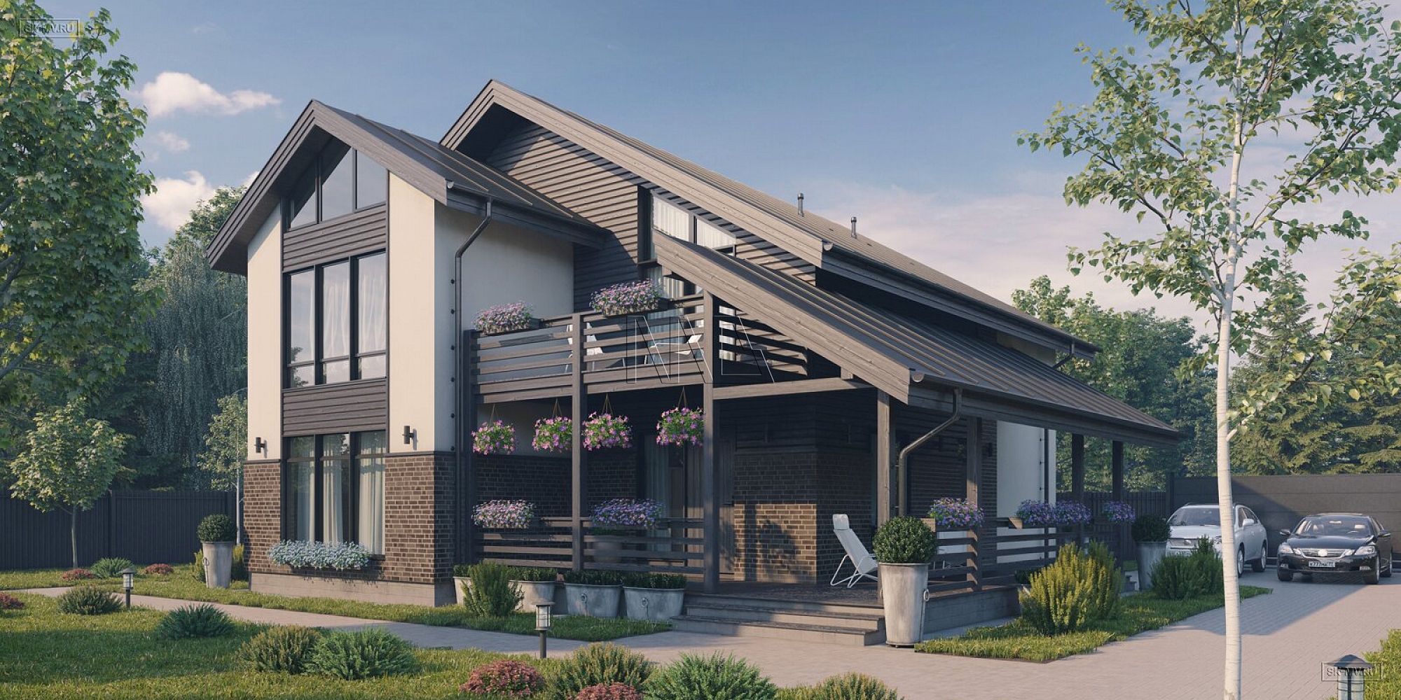 Проект двухэтажного загородного дома площадью чуть более 230 кв.м «Агалатово» представляет собой удачное сочетание пропорций дома с нестандартным сложным экстерьерным решением разноуровневой кровли с широкими свесами, скрывающими террасу и приватный балкон второго этажа на манер австрийских шале.Проект разработан при участии АКБ Малышева.