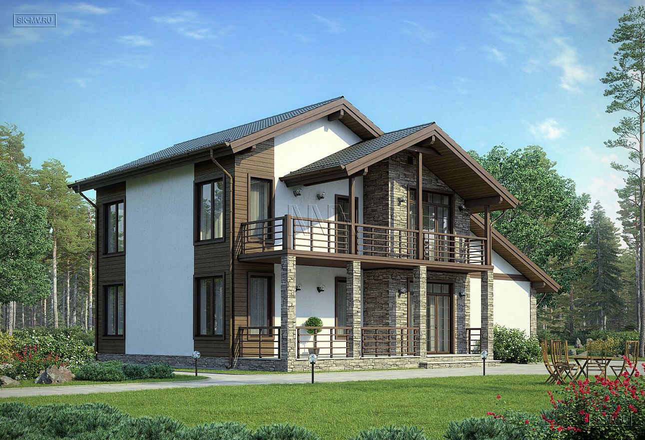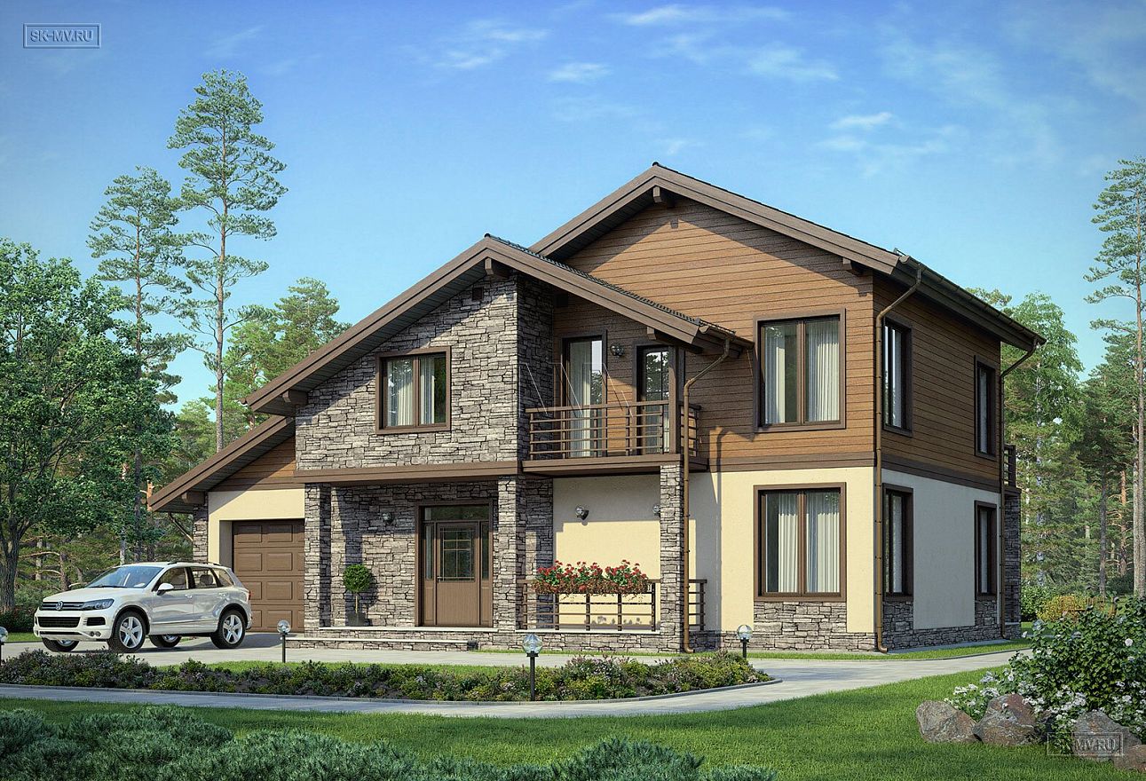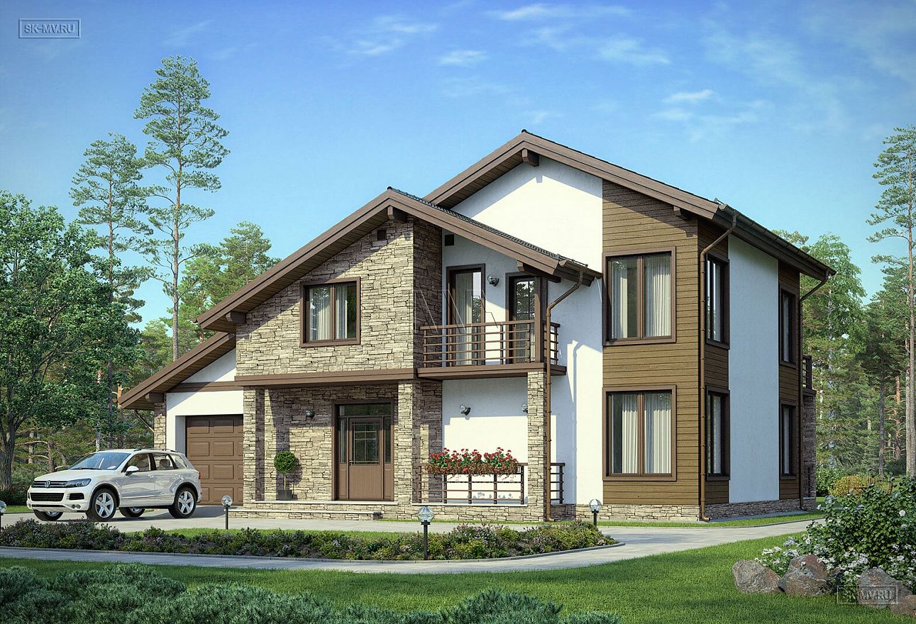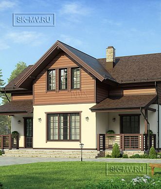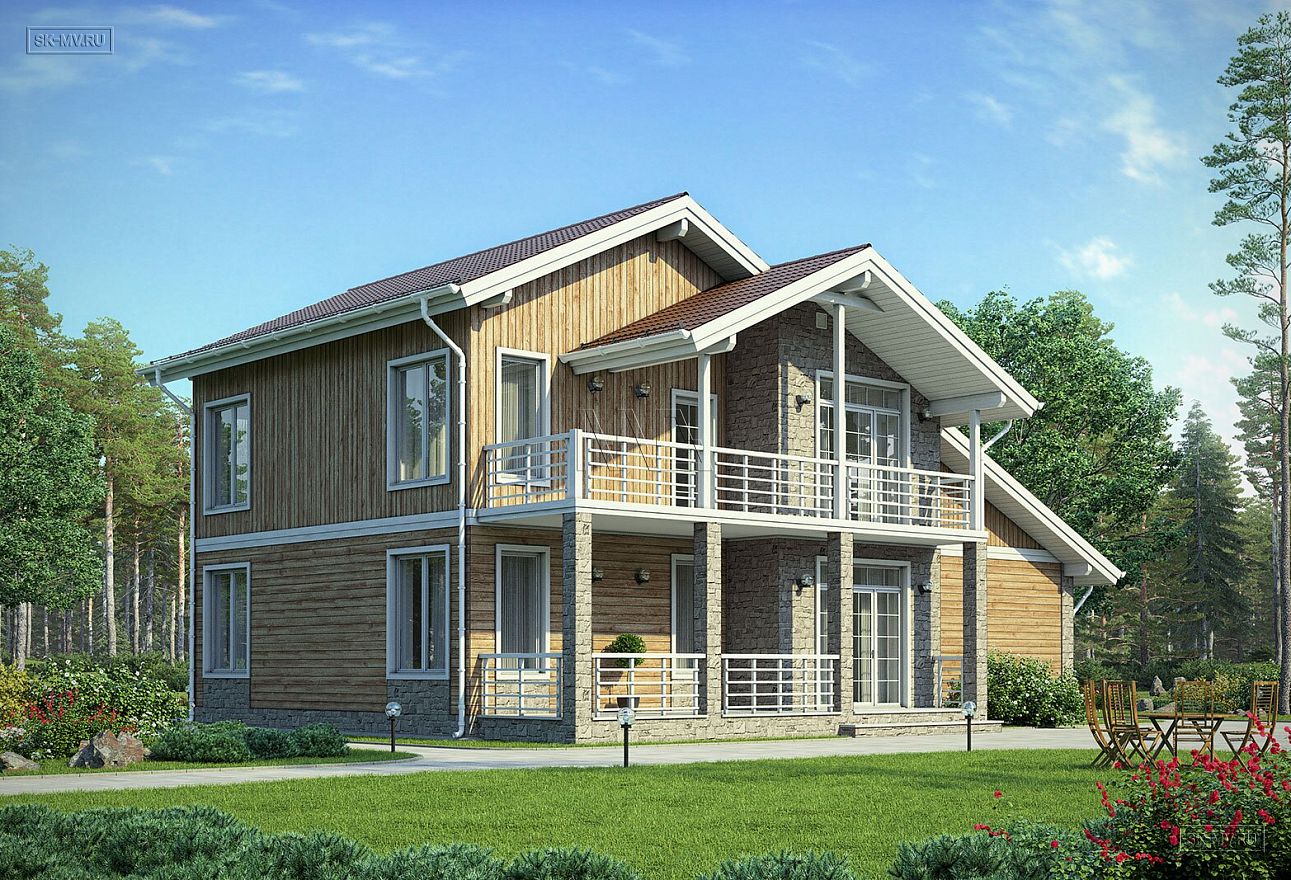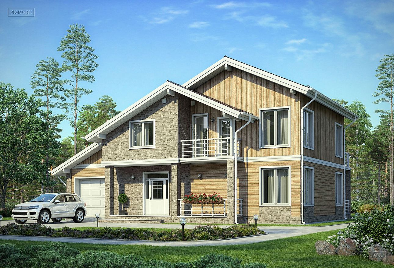 «Белоостров» — проект современного двухэтажного загородного дома в американском (канадском) стиле с встроенным гаражом и комбинированной фасадной отделкой из дерева и камня. Дом входит в серию проектов «Европейские фасады», основная задача которой показать заказчику варианты оформления фасада в разных комбинациях материалов, имитируя основные черты архитектуры некоторых европейских регионов: Скандинавии, Франции, Австрии и Англии.