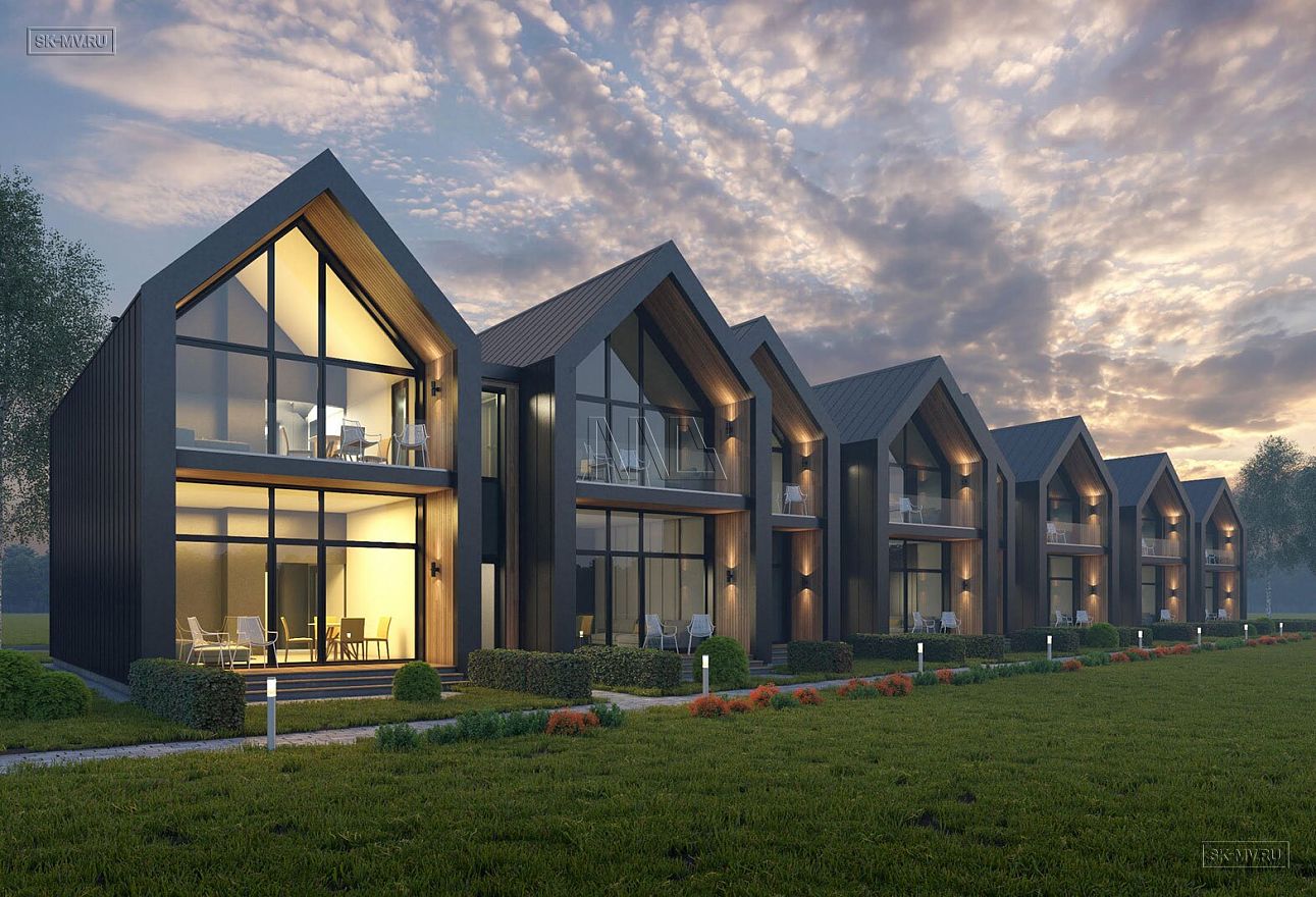«Блокированные дома» — один из вариантов готового проекта коммерческой недвижимости — отеля комфорт или бизнес класса для горнолыжных курортов, баз отдыха, клубных курортов, гольф-клубов.