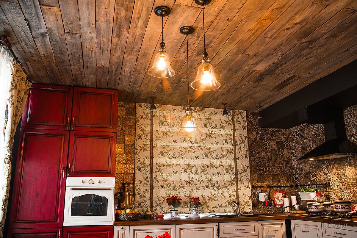 По деревянным балкам — доска 45 × 195 мм, сухая, строганная.
