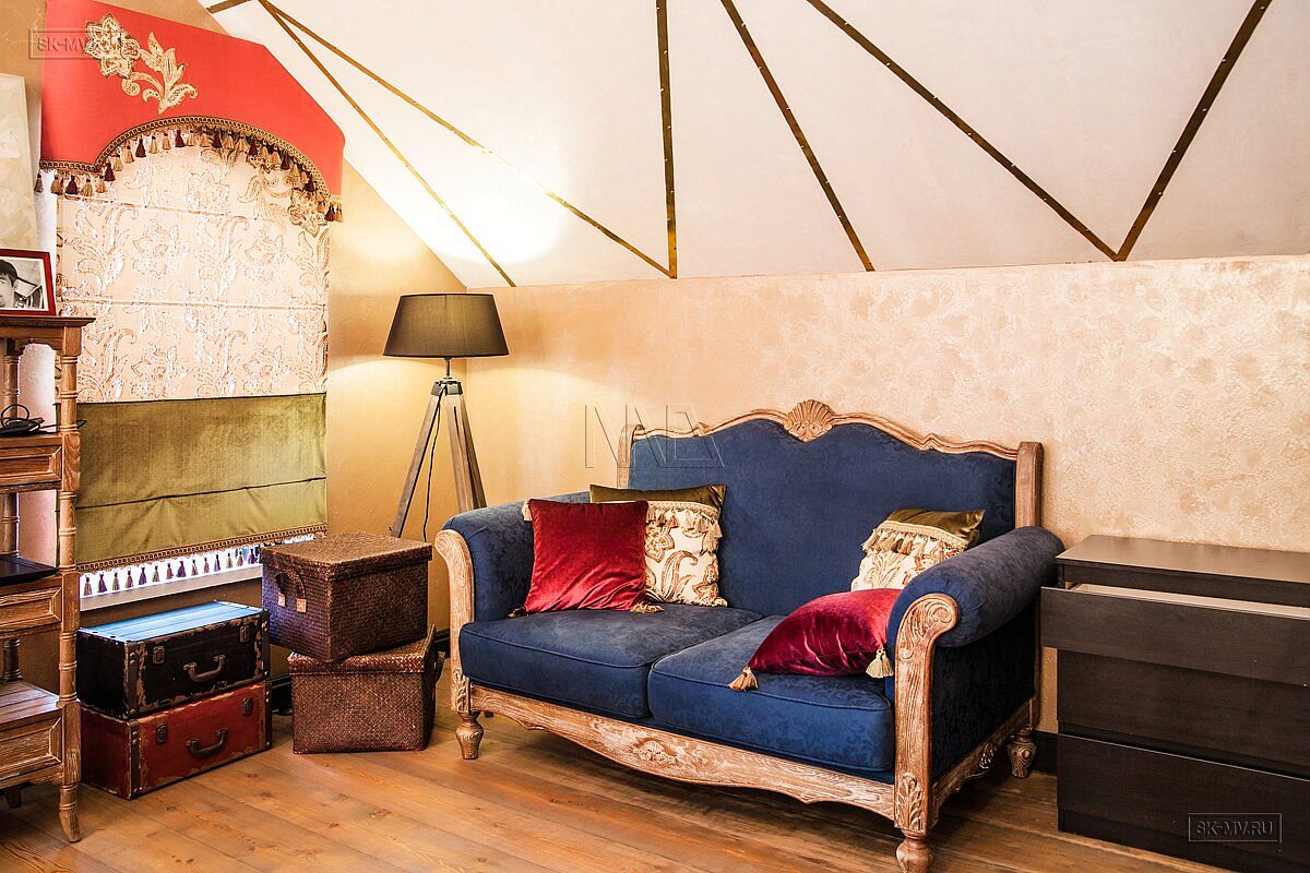 Звукоизоляция межэтажных перекрытий и межкомнатных перегородок — базальтовый утеплитель 150 мм, настил чернового пола из OSB-3 18 мм по пошаговой обрешетке 20 × 90 мм.