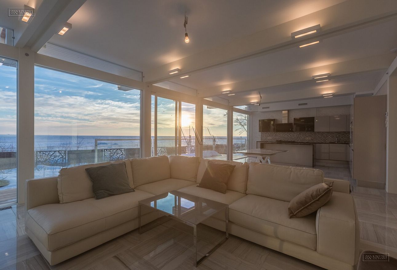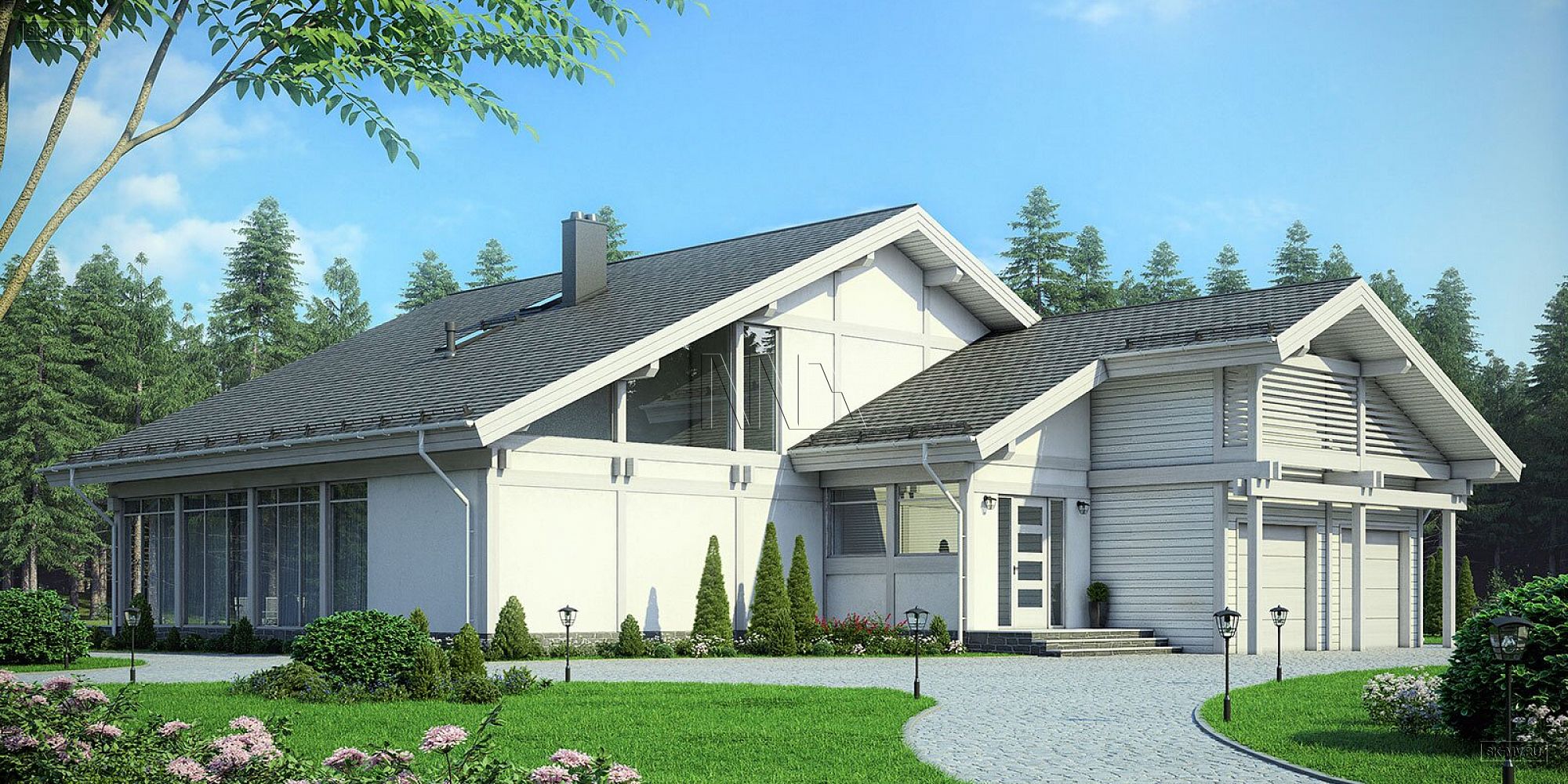Проект современного дома «Фахверк» с гаражом на два автомобиля реализован нами в коттеджном поселке Балтийская Ривьера. Большие панорамные окна этого дома из дерева и стекла смотрят на Финский залив. Вокруг шикарный сосновый лес, тишина и морской прибой.