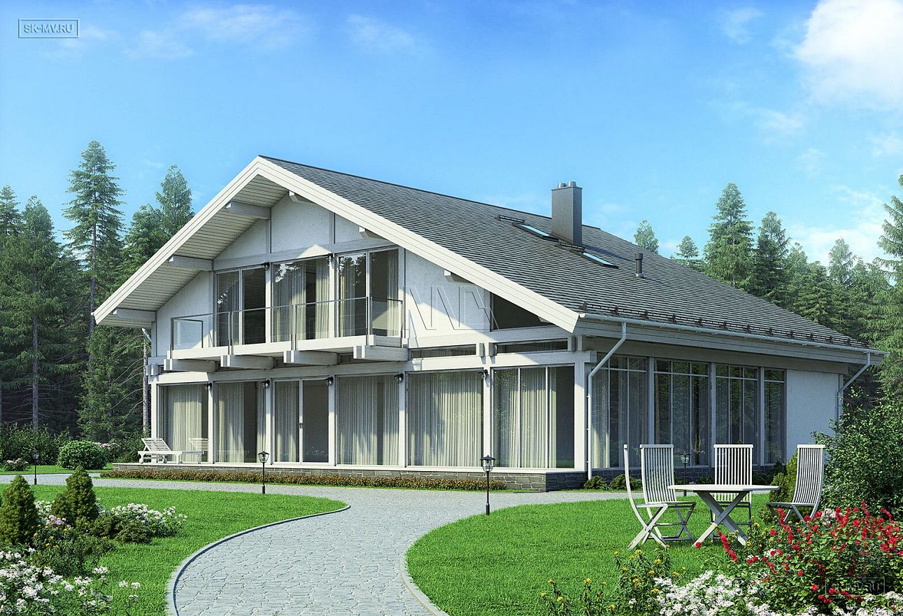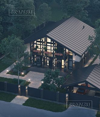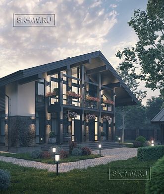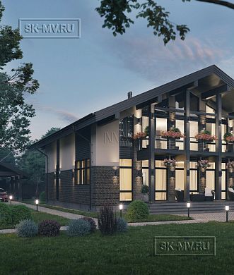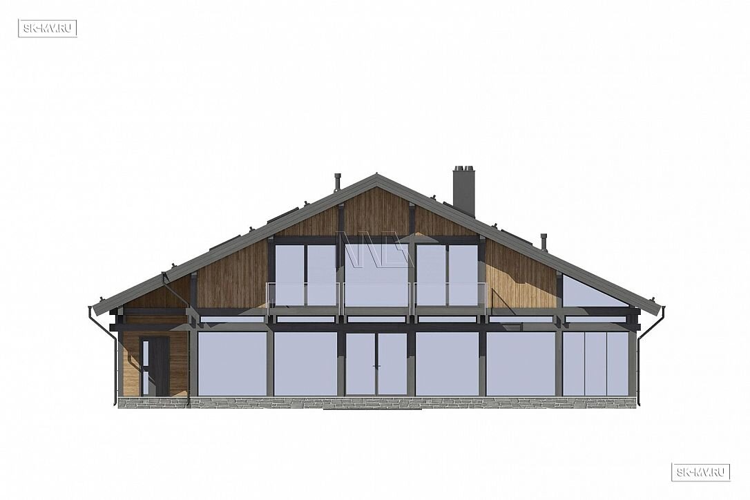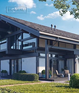 Проект предусматривает строительство этого коттеджа по технологии фахверк, которая описана нами в разделе «Технологии. Современный фахверк». Подробнее о постройке дома из дерева и стекла конкретно по проекту «Фахверк» можно прочитать на данной странице.