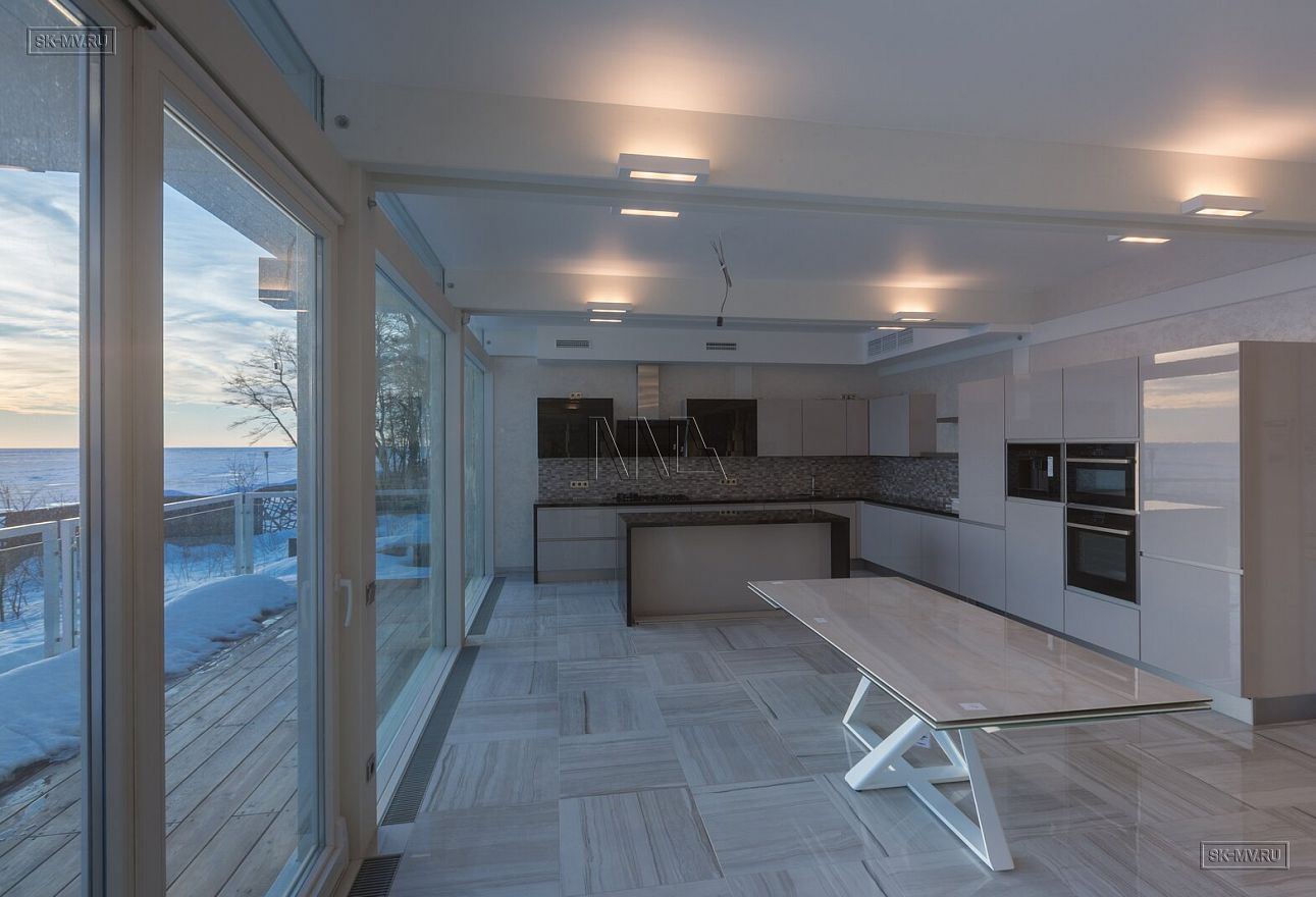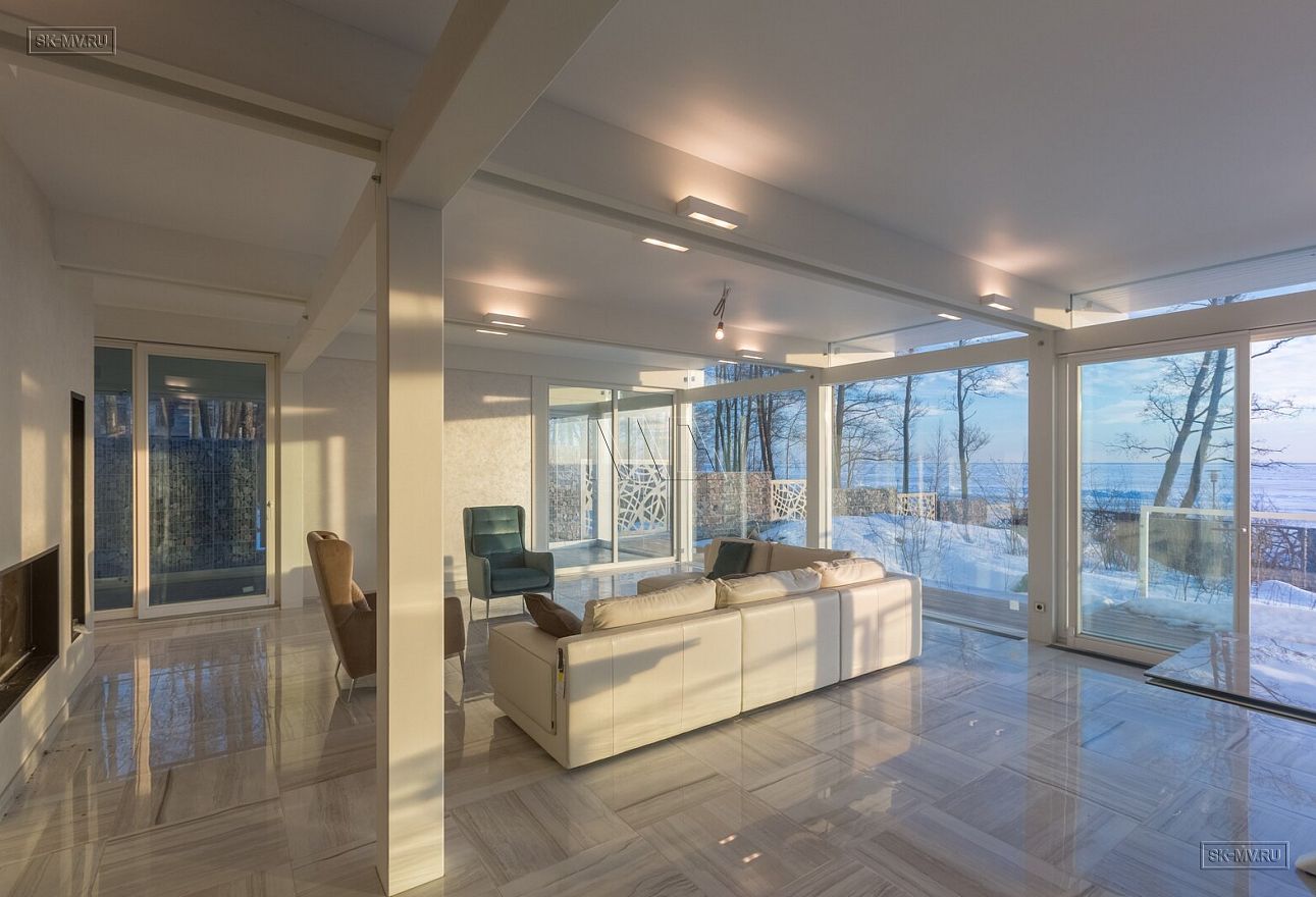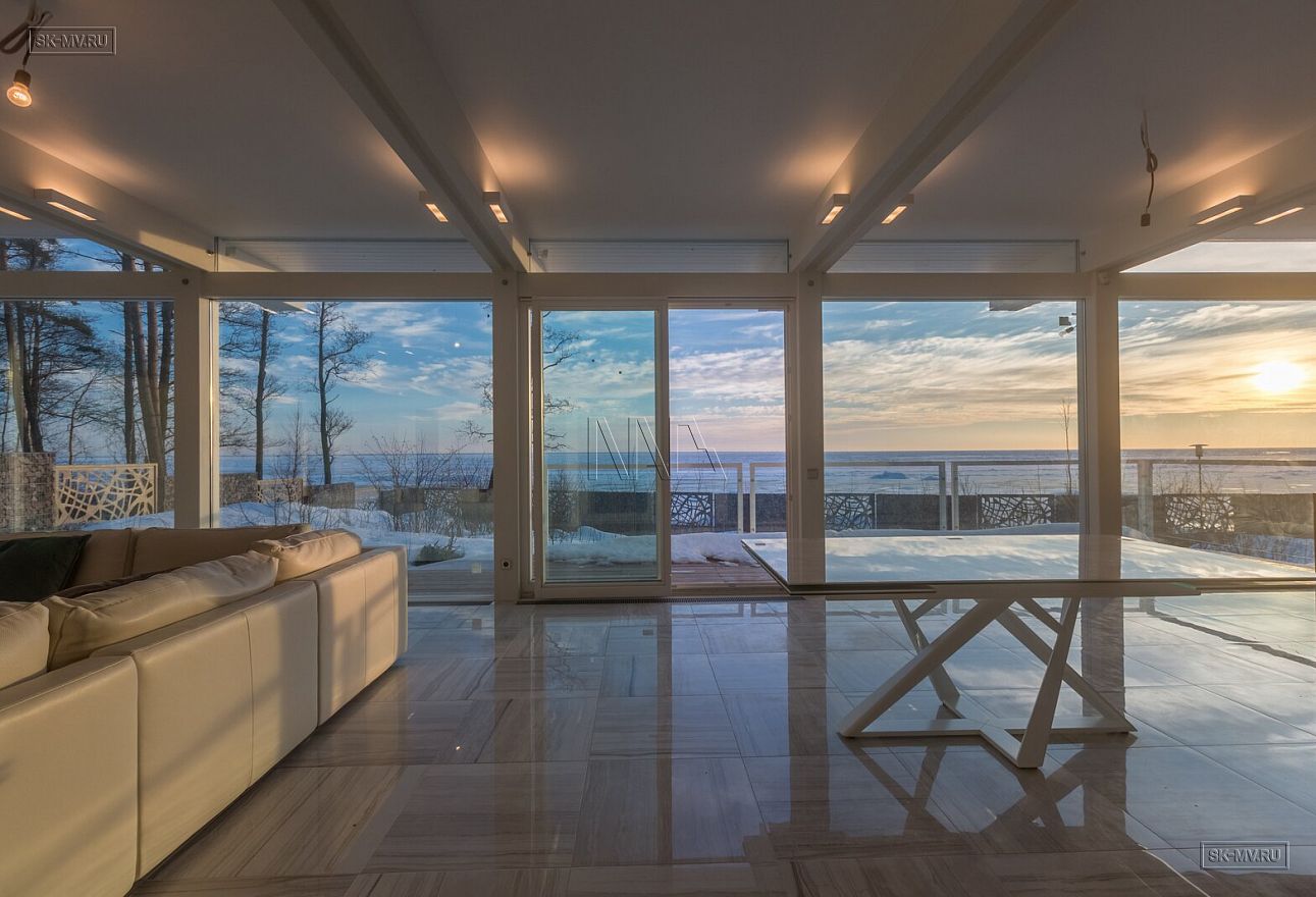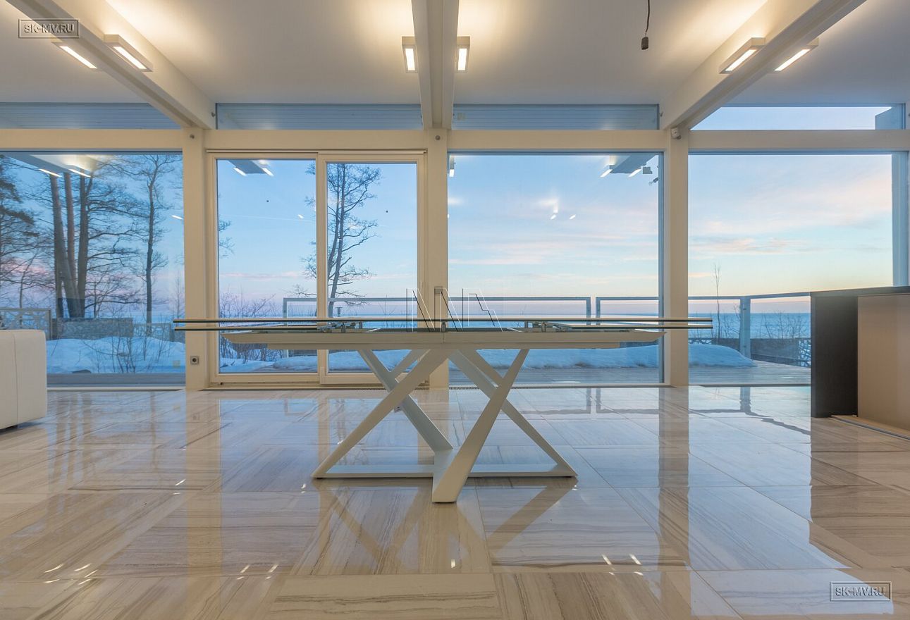 Особо стоит отметить остекленную веранду для зимних чаепитий, необходимость ее наличия продиктована близостью ветров с залива и влажным промозглым климатом Петербурга.