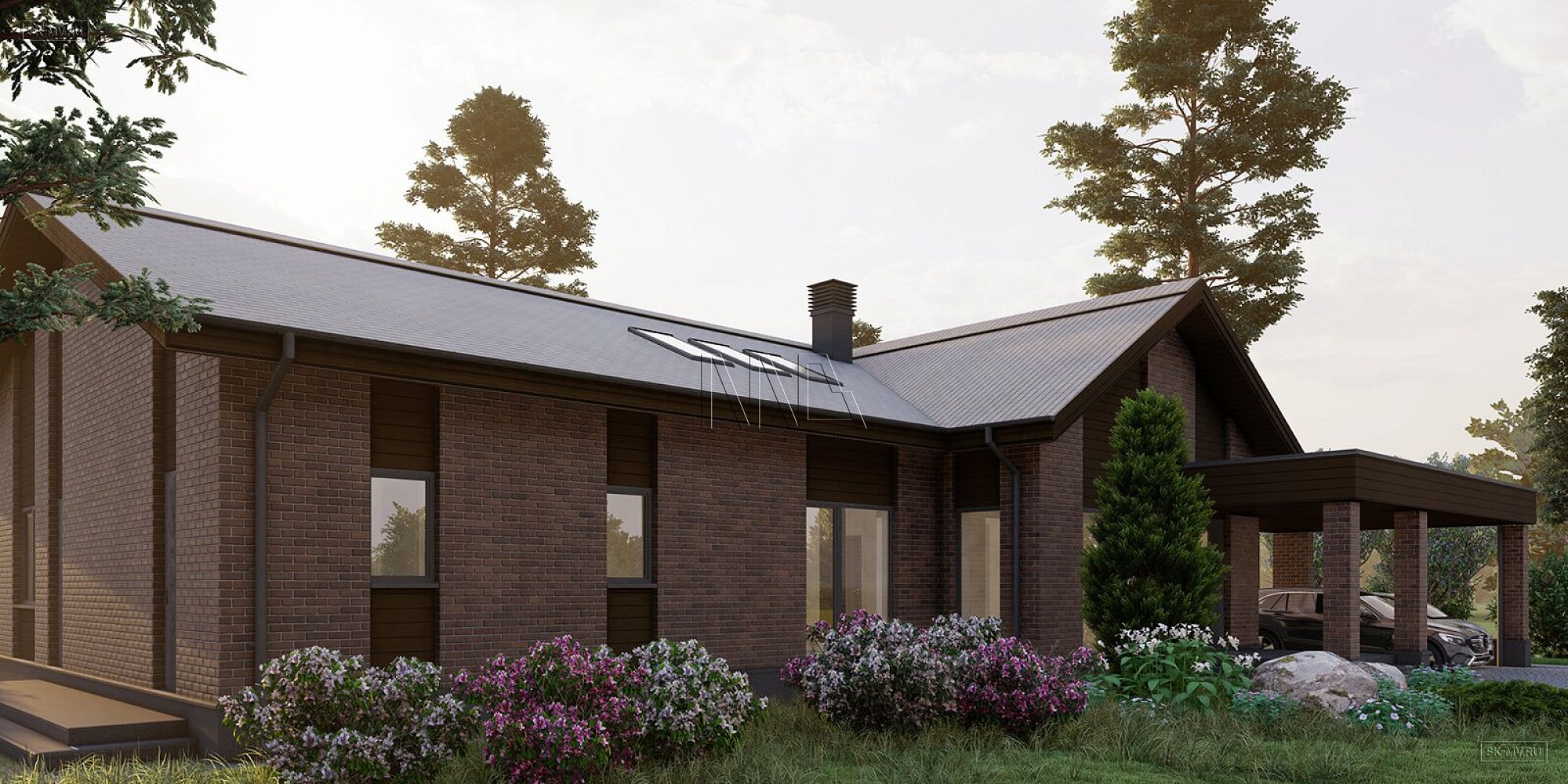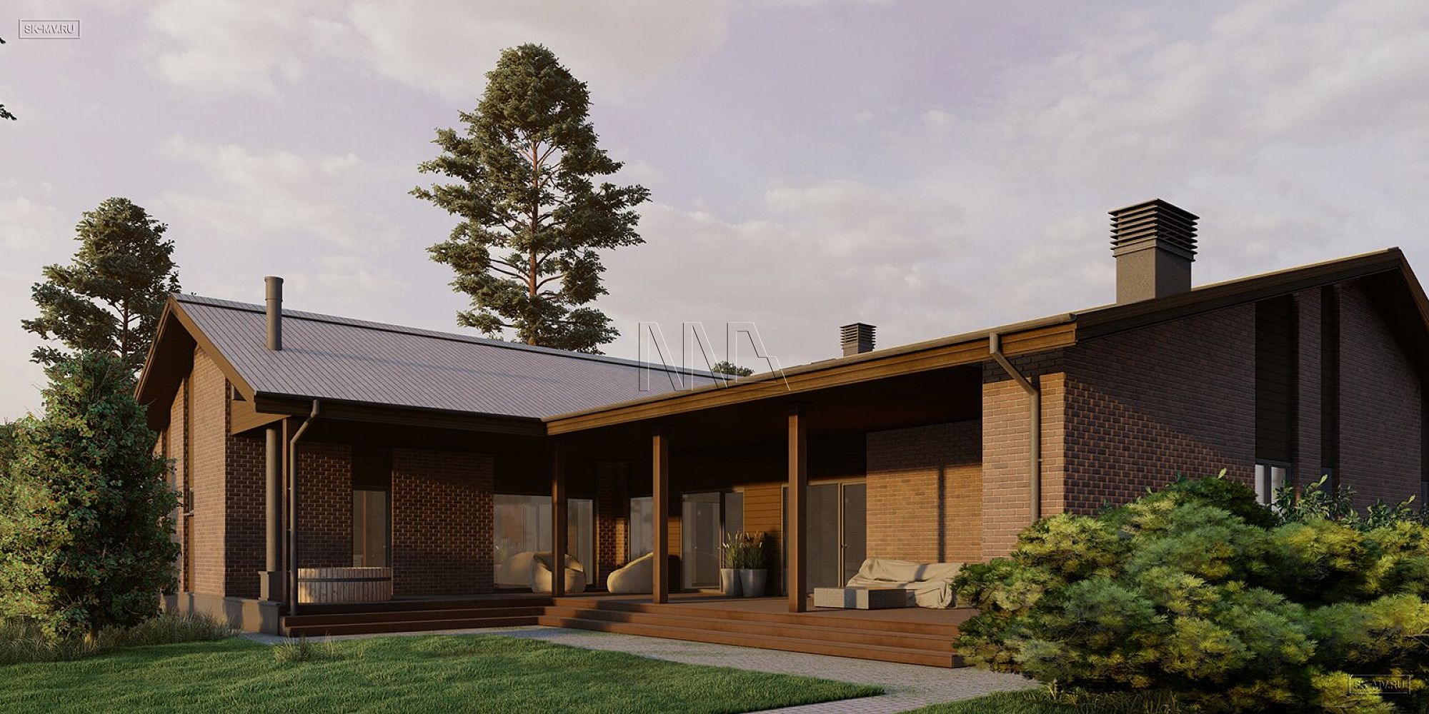 Современный скандинавский стиль — это лаконичность, сдержанность, строгая красота экстерьера, преобладание белых, серых тонов в интерьере с контрастными вставками, натуральные материалы (дерево и облицовочный клинкерный кирпич), приоритет энергосбережения при проектировании и выборе материалов строительства, простая двускатная кровля (лучший сход снега), широкие крытые террасы (защита от ветра и снега), большие панорамные окна (бесплатная энергия солнца, любовь к природе).