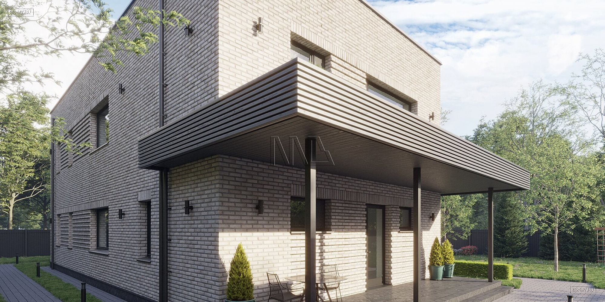 Коробка дома на фундаменте под кровлей