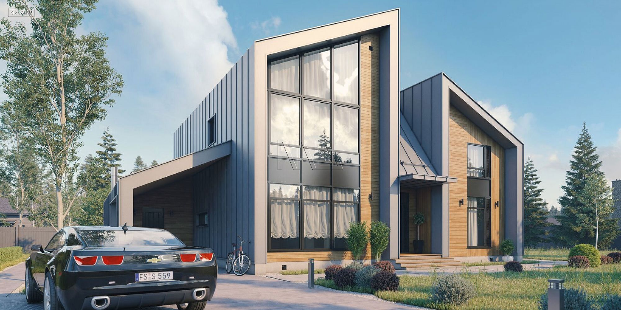 Современная архитектура требует грамотной работы проектно-конструкторской группы, высокого профессионализма строителей и навыков / опыта работы с современными дорогими отделочными материалами, такими как металлические пластины с фальцем и натуральный планкен из лиственницы.