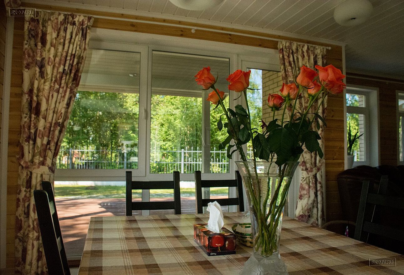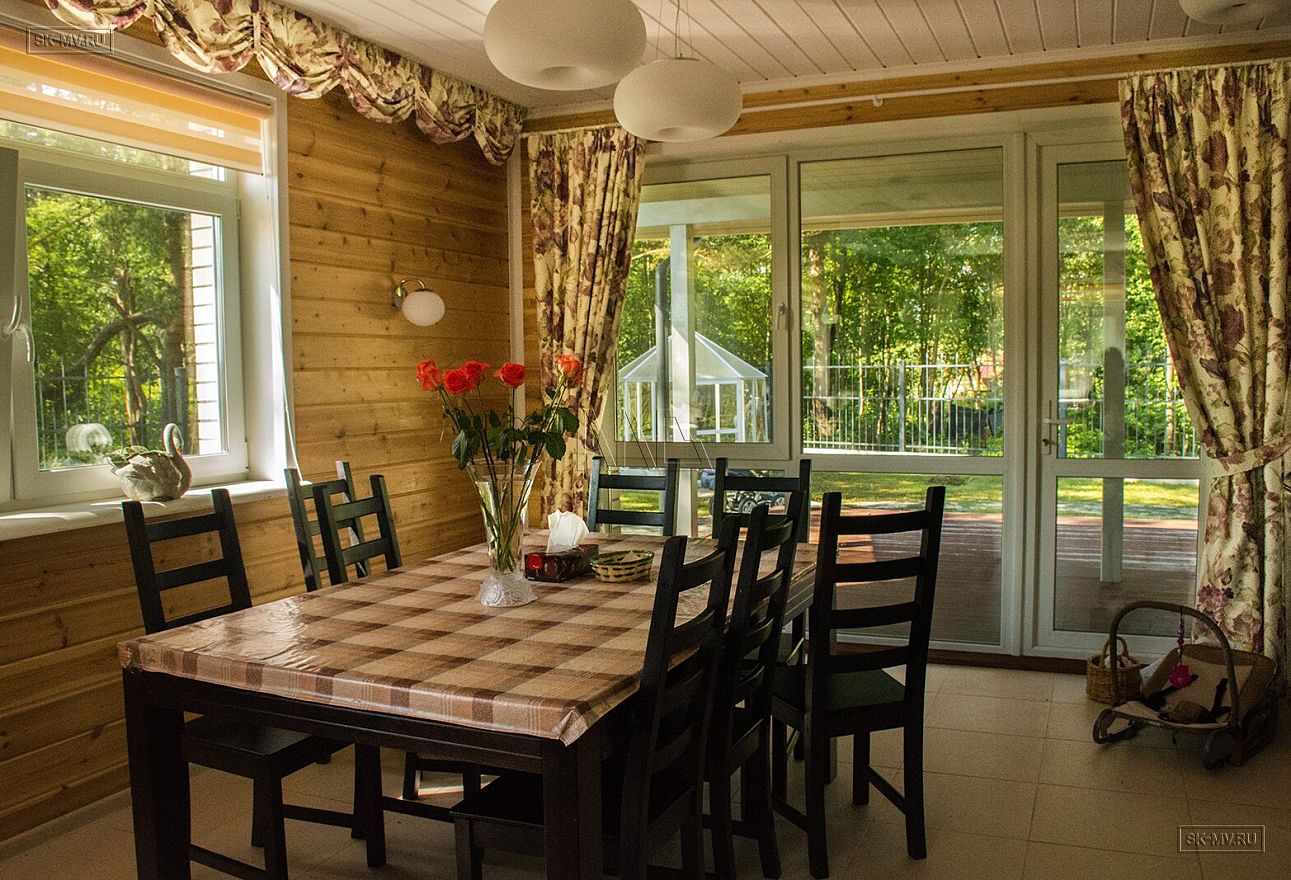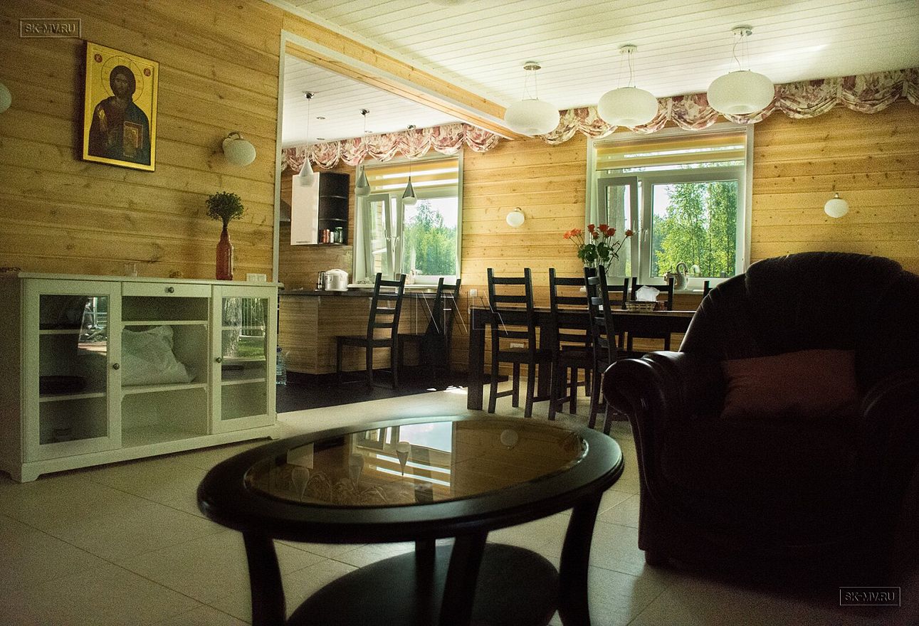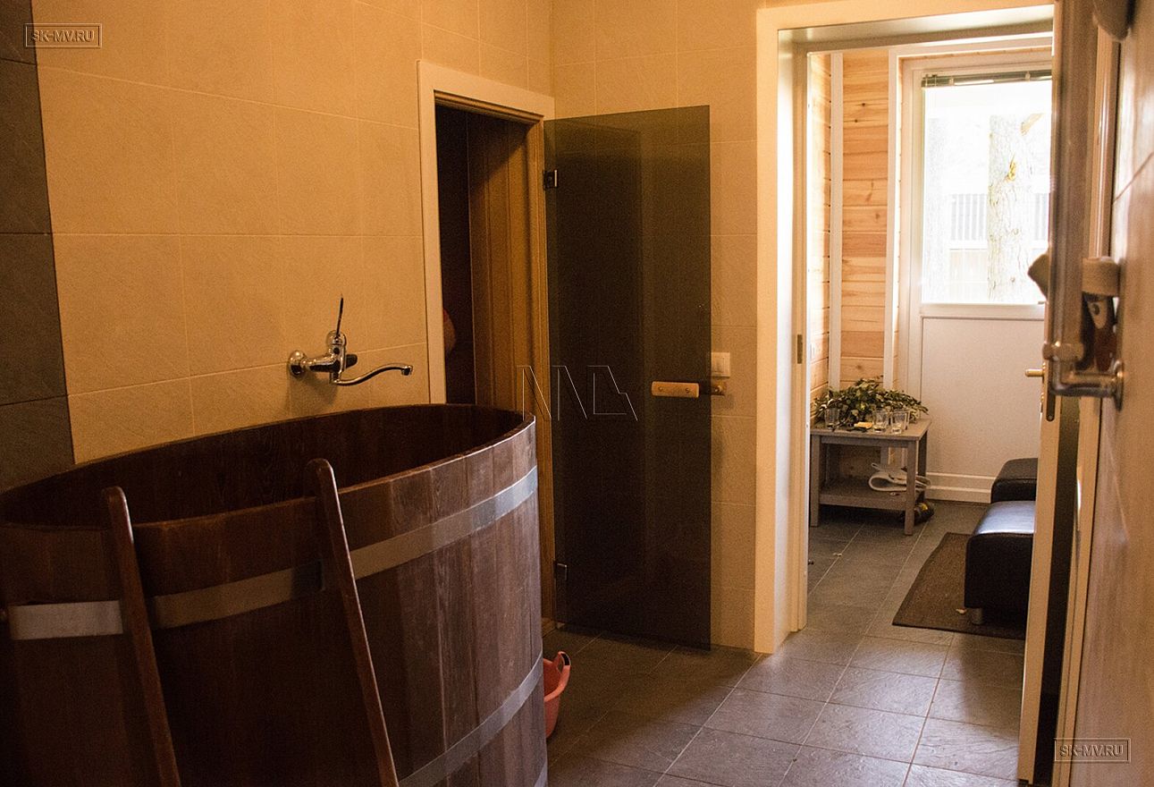Большая светлая гостиная с выходом на просторную террасу на солнечную сторону наполнена светом с утра до вечера. В доме организована финская сауна с отдельным выходом на небольшую террасу с внутренней недоступной чужом глазу стороны.