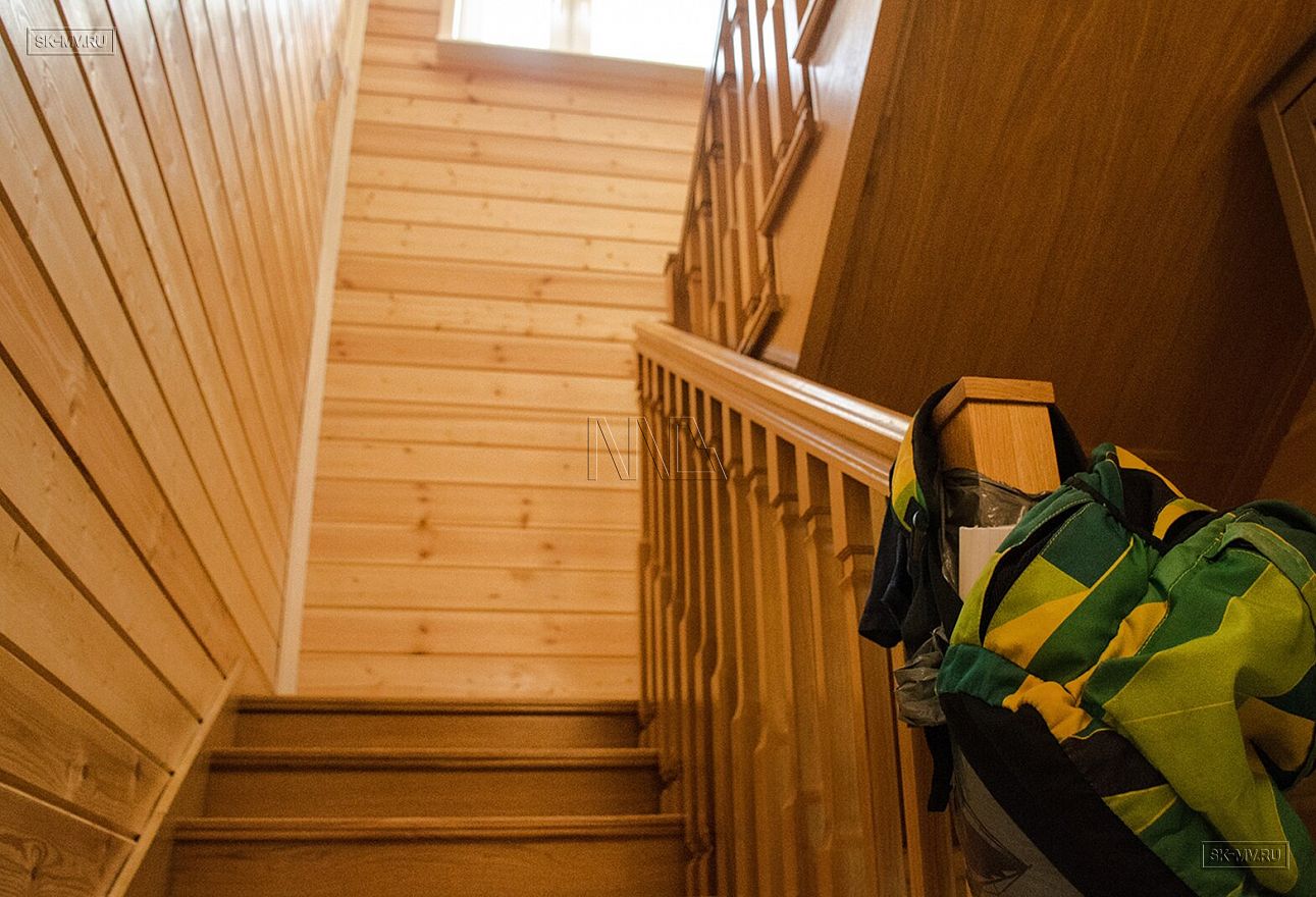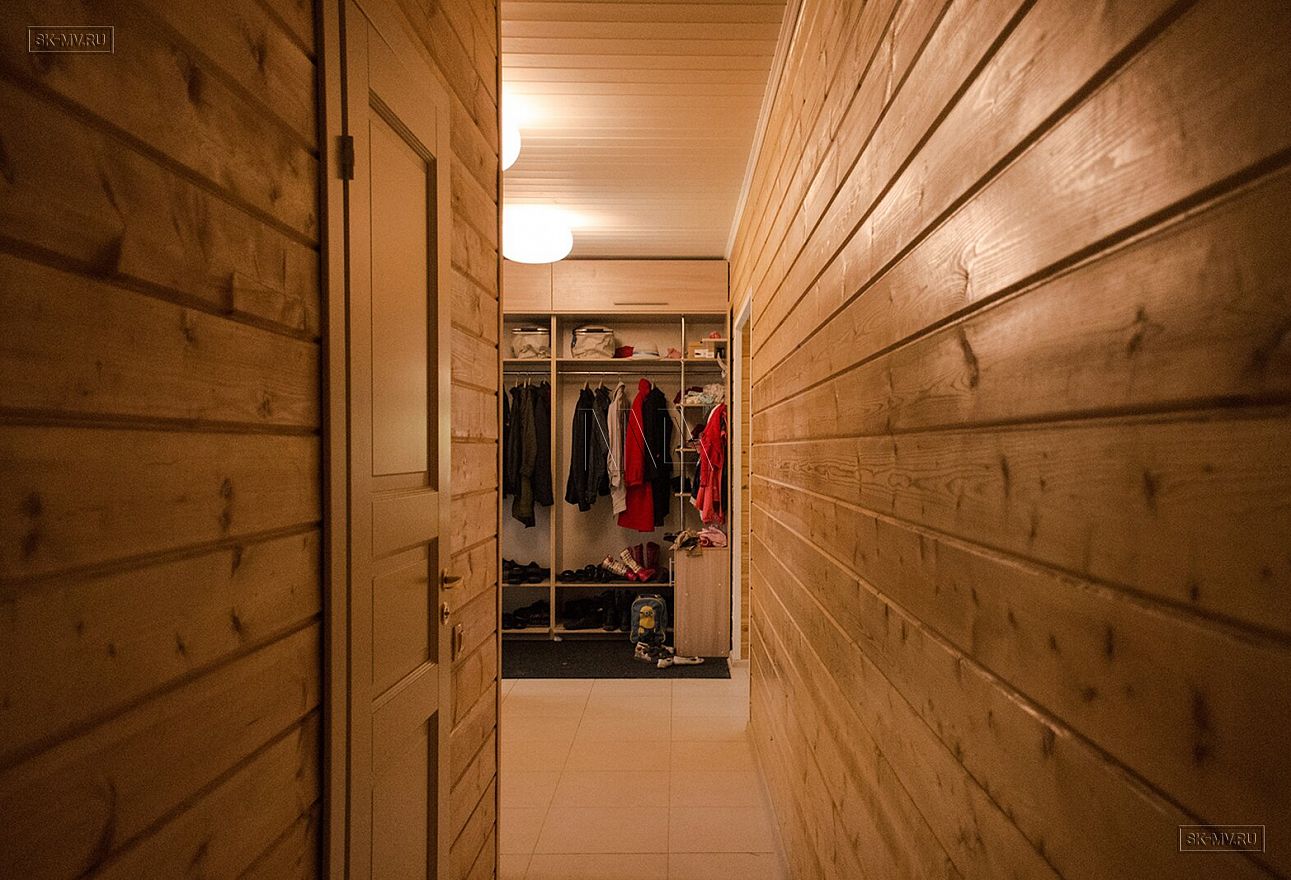 Наружные стены — каркас заводского изготовления из сухой строганной доски 45 × 145–195 мм.